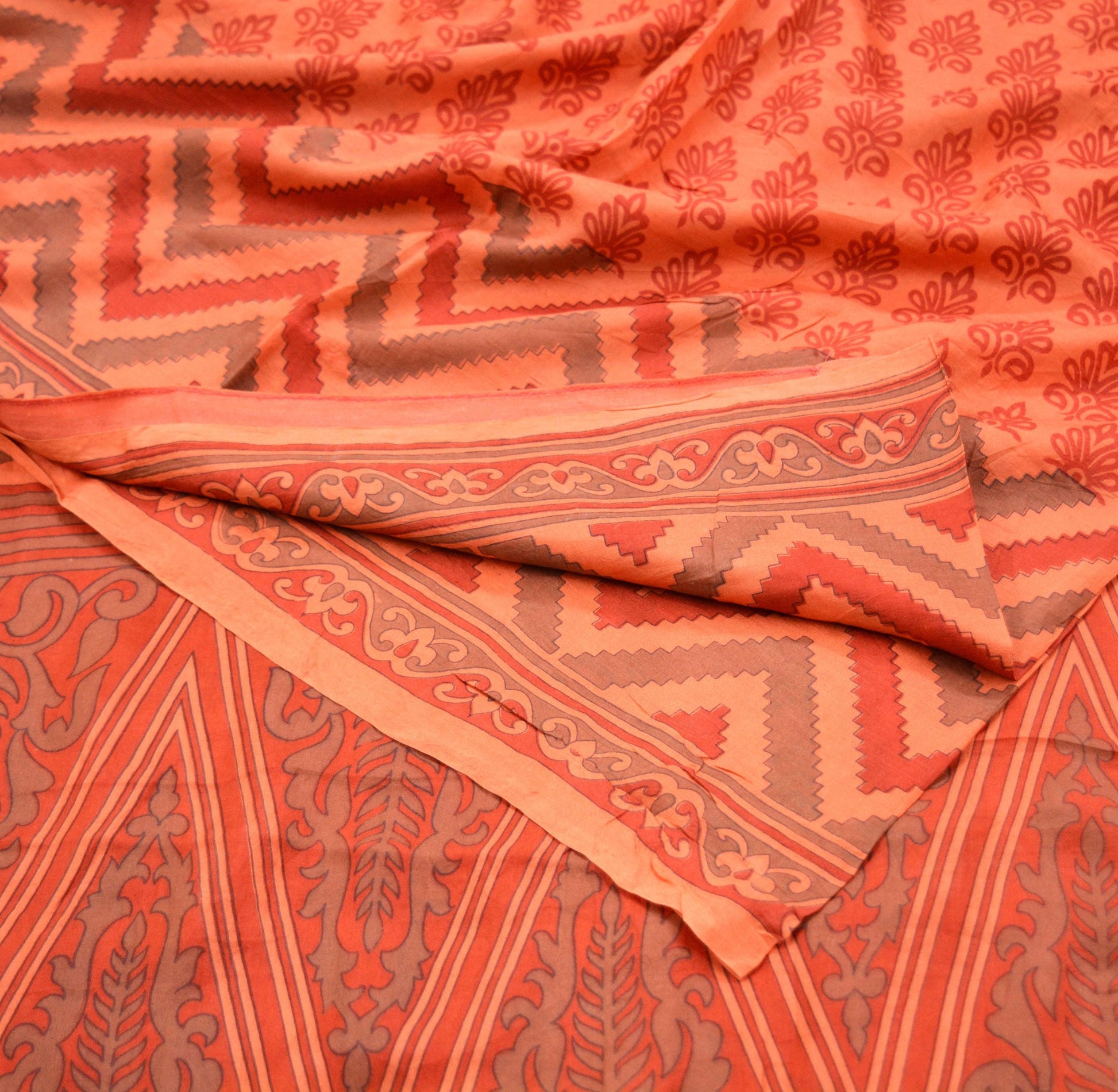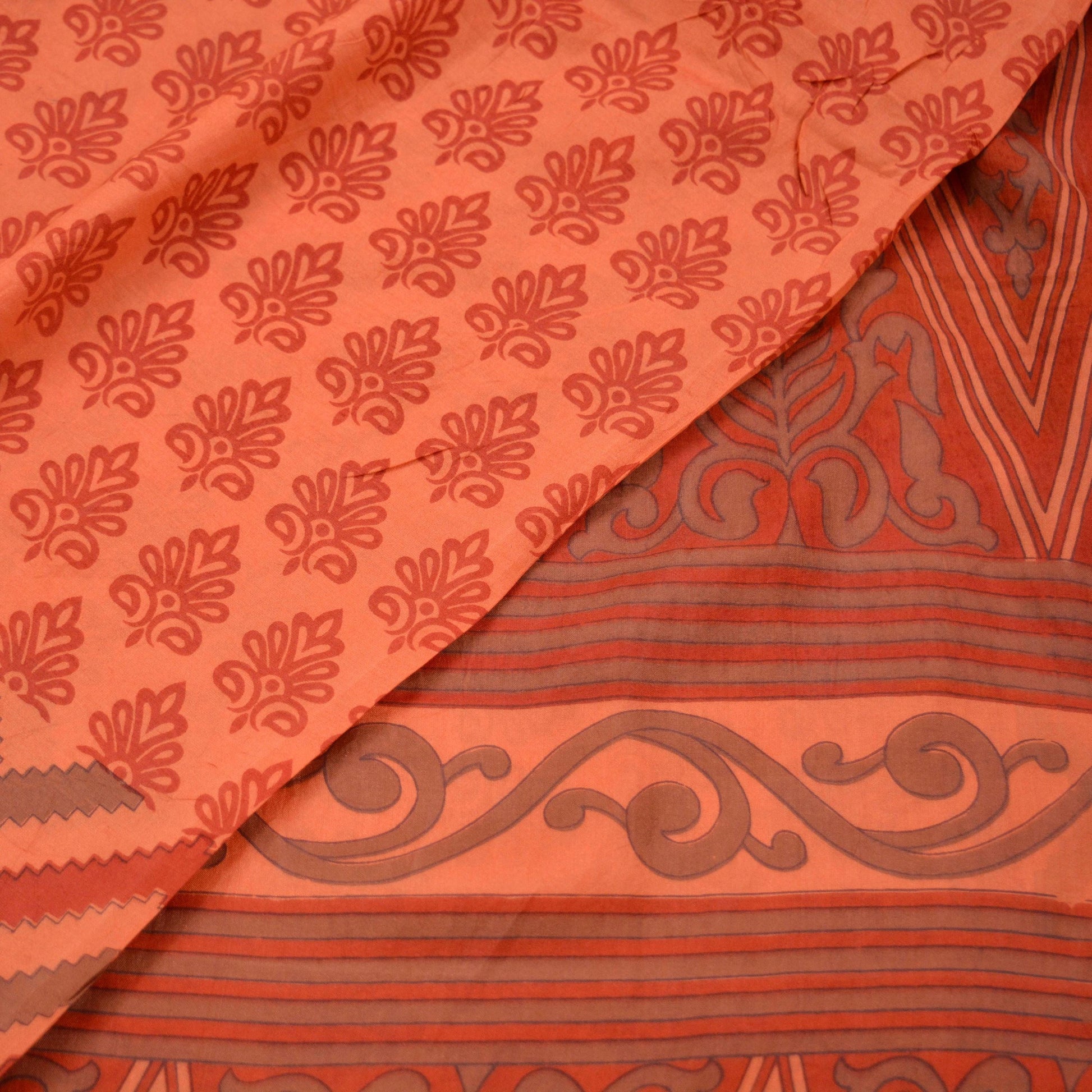 *This unique vintage Peach & Brown Colored Printed Pure Silk Saree.