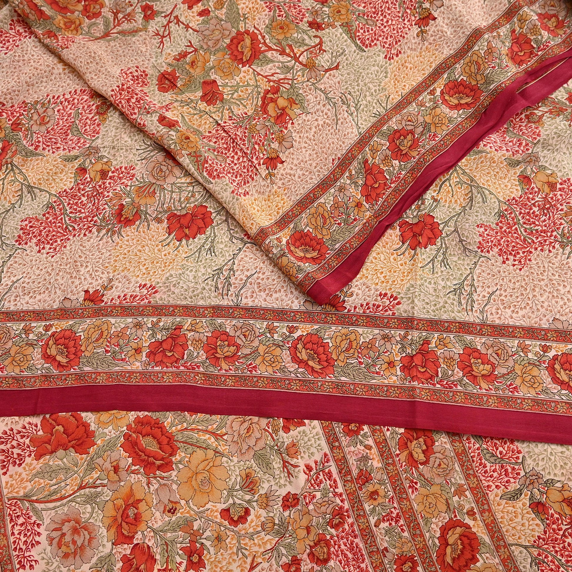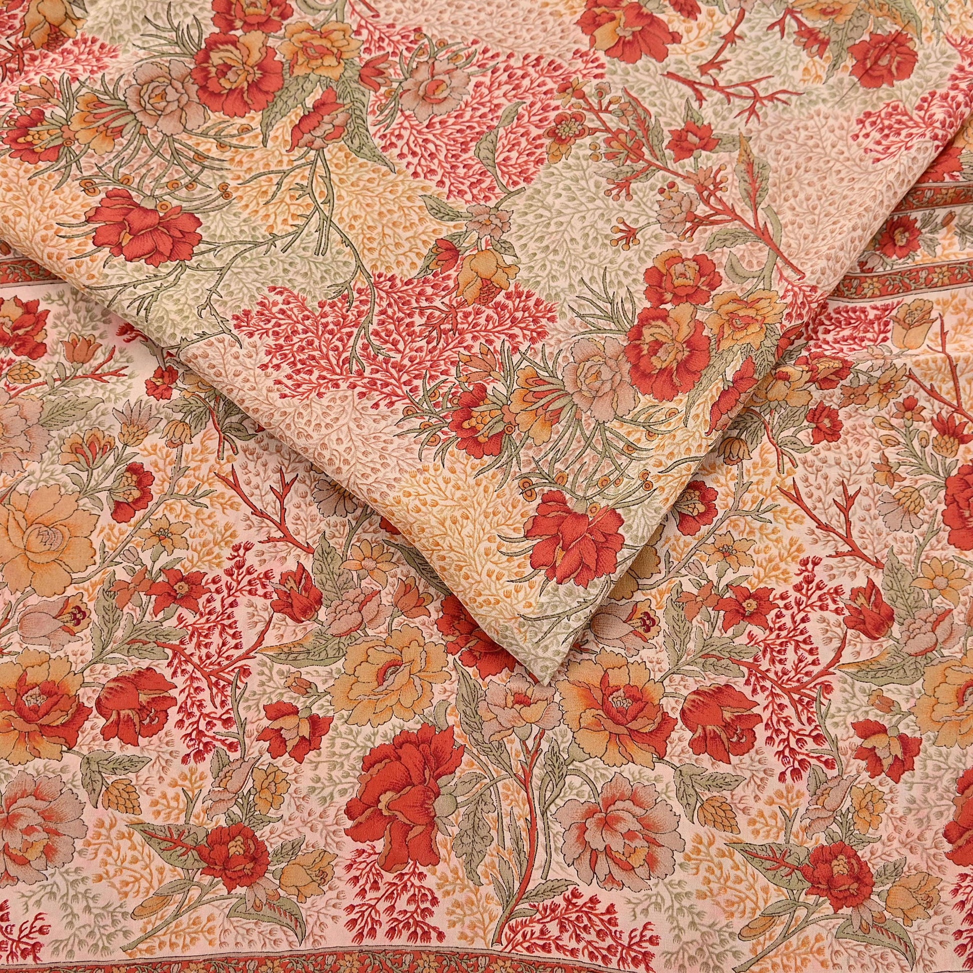 Indian Vintage Sari peach Pure Crepe Silk Printed Saree 5yard Sewing Quilting Floral Soft Craft Fabric Wrap