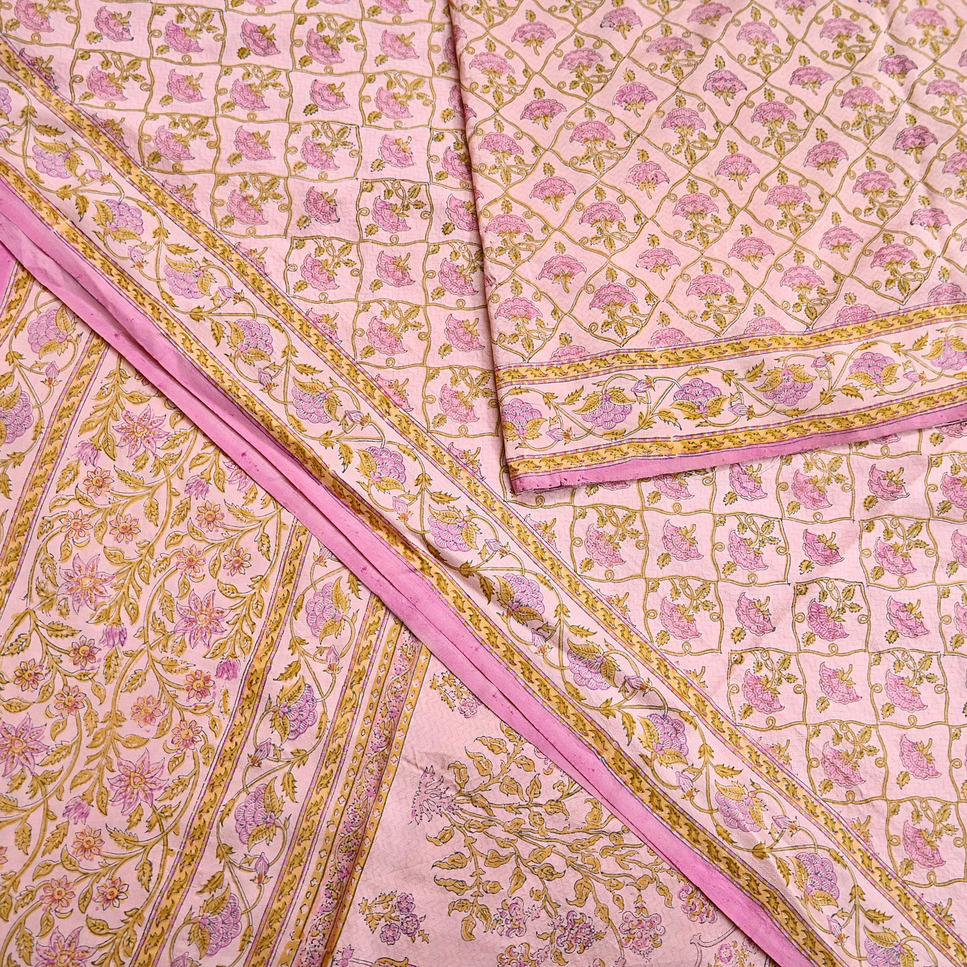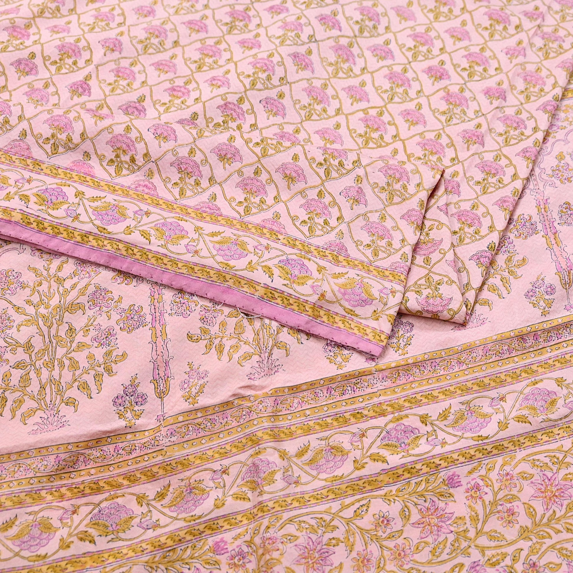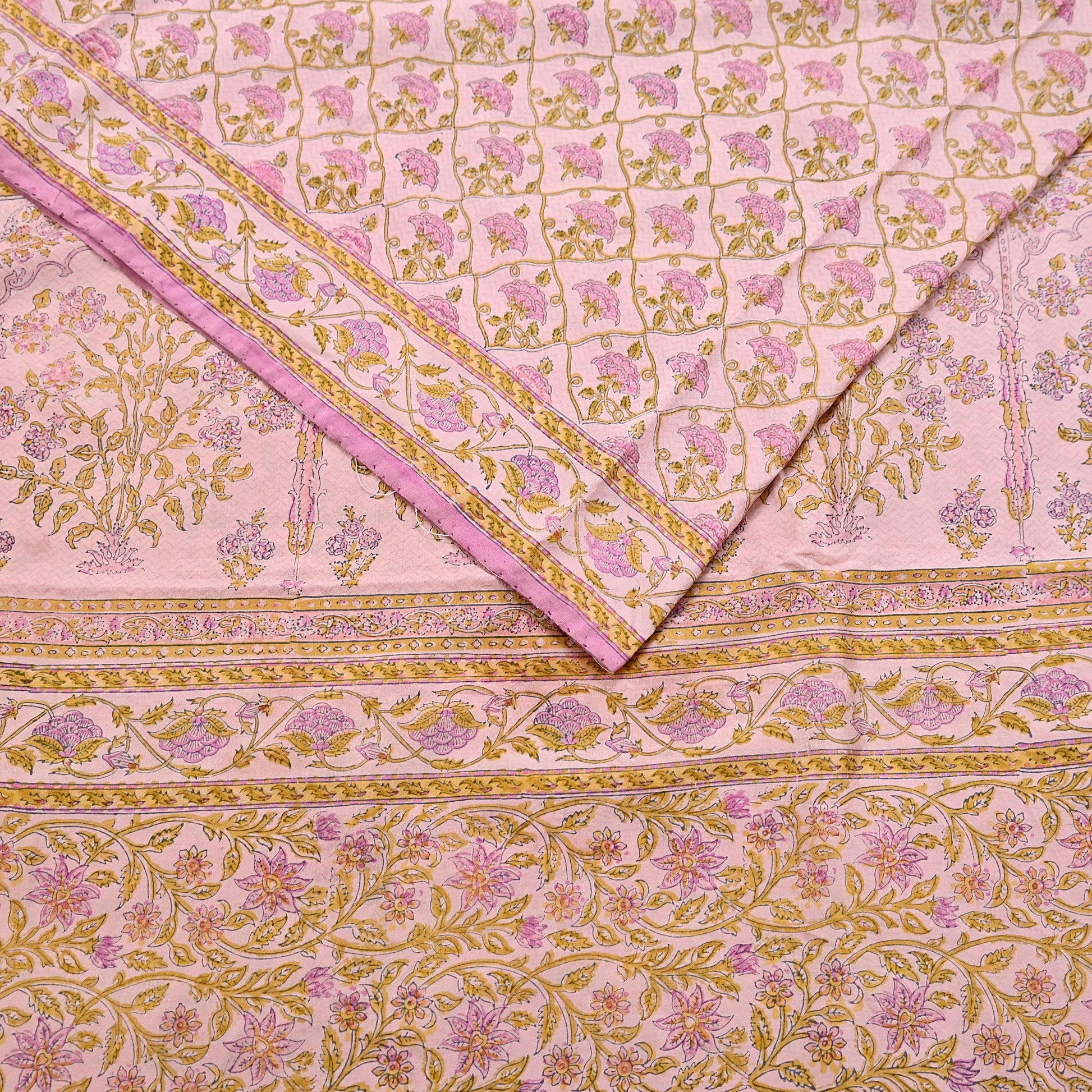 Indian Vintage Sari Peach Pure Silk Printed Saree Fabric 5yard Sewing Craft Fabric DressMaking Wrap Floral