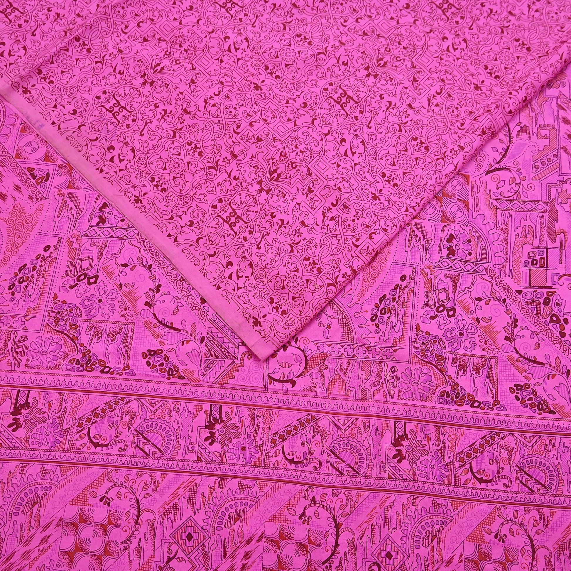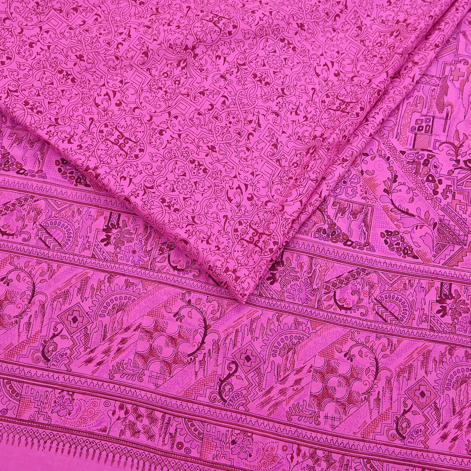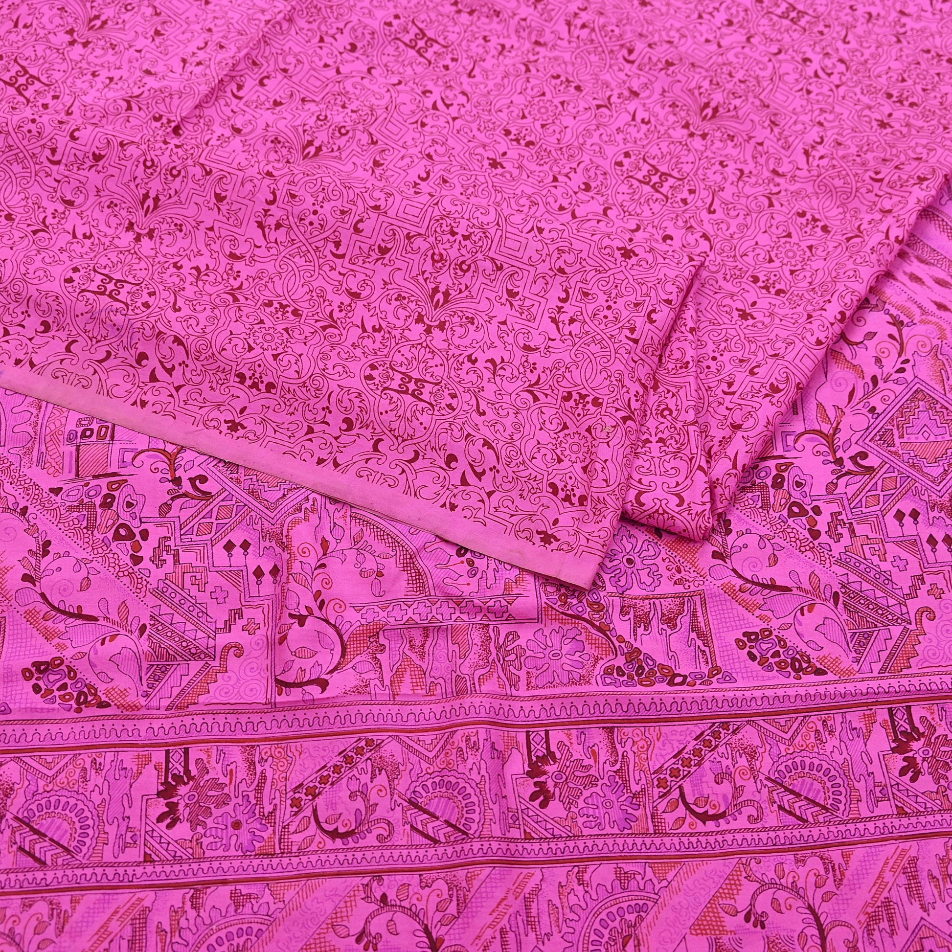 Indian Vintage Sari Pink 100% Pure Silk Printed Saree Craft Fabric 6yd Sewing Dress Making Soft Wrap Quilting Crafting Upcycle
