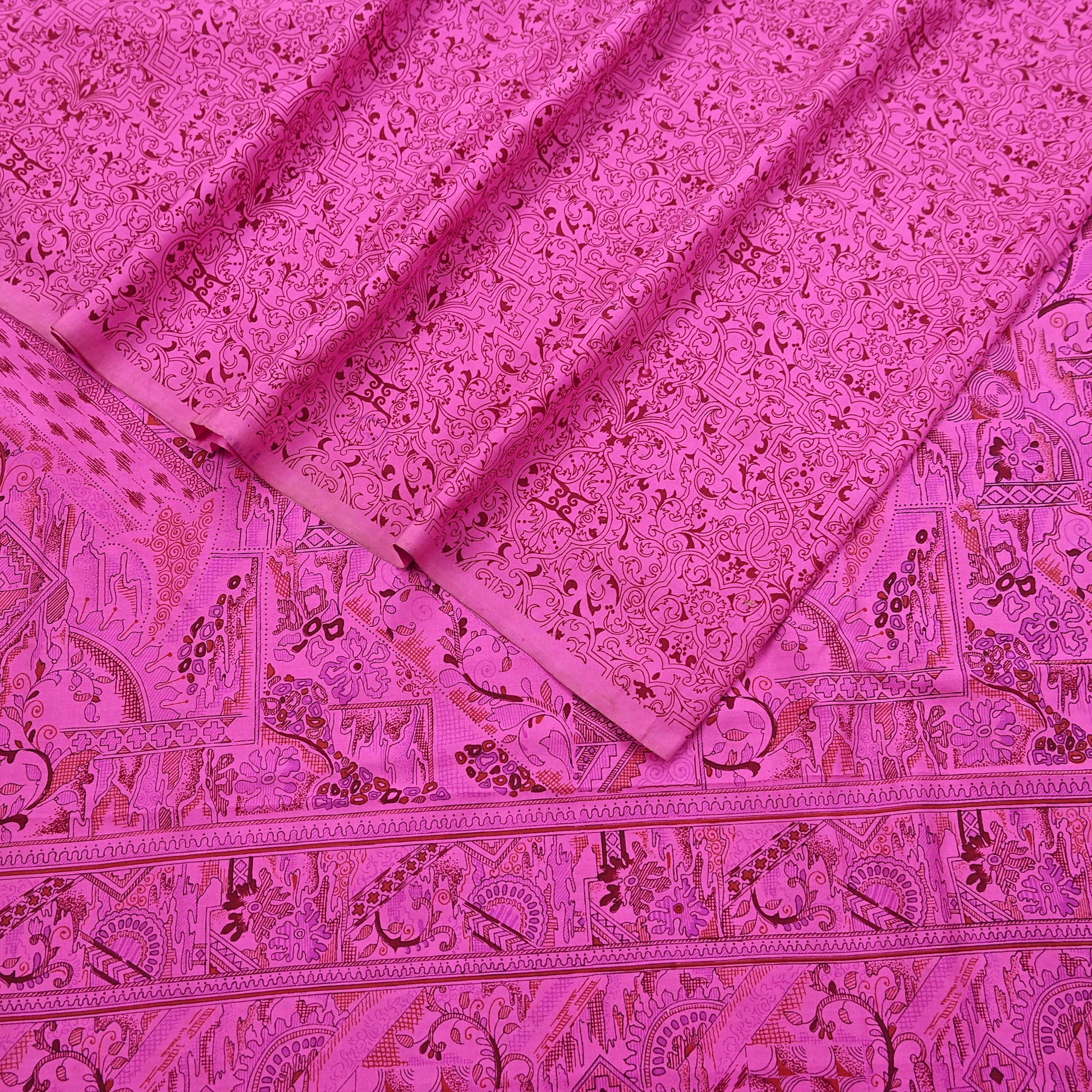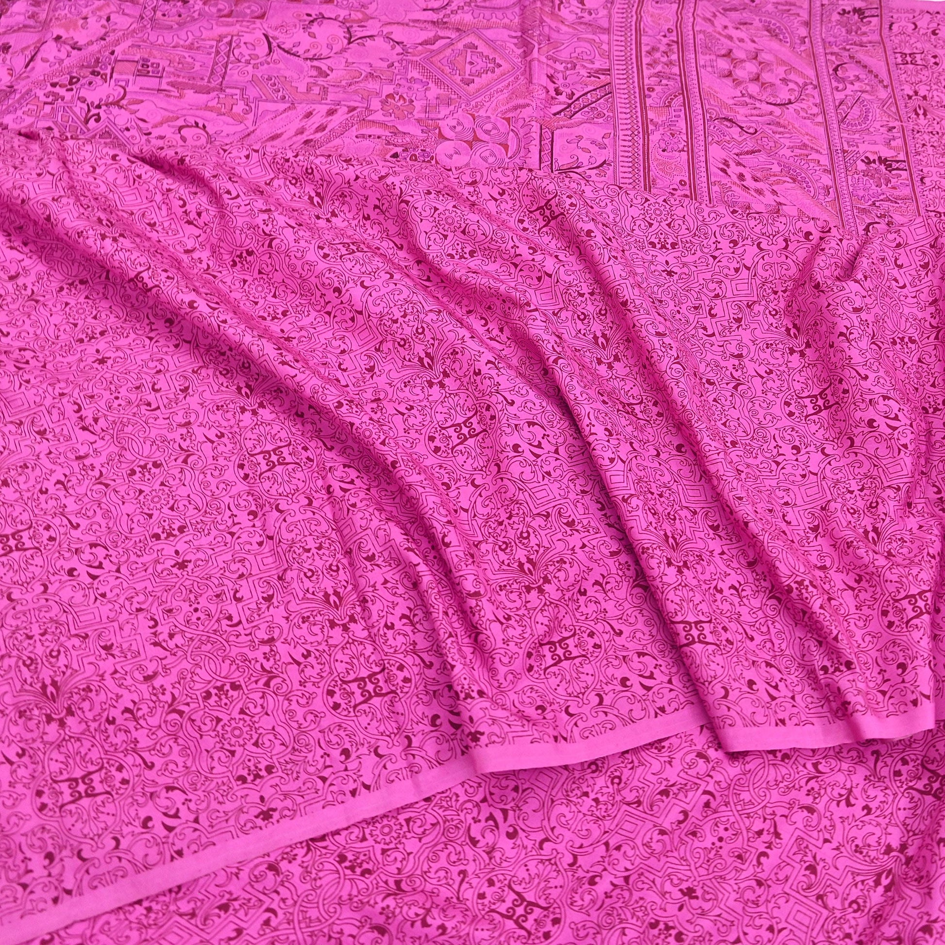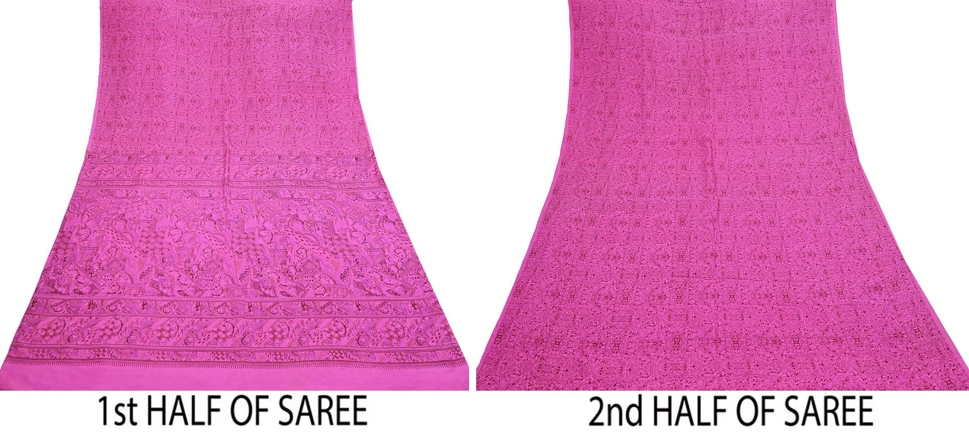 Indian Vintage Sari Pink 100% Pure Silk Printed Saree Craft Fabric 6yd Sewing Dress Making Soft Wrap Quilting Crafting Upcycle