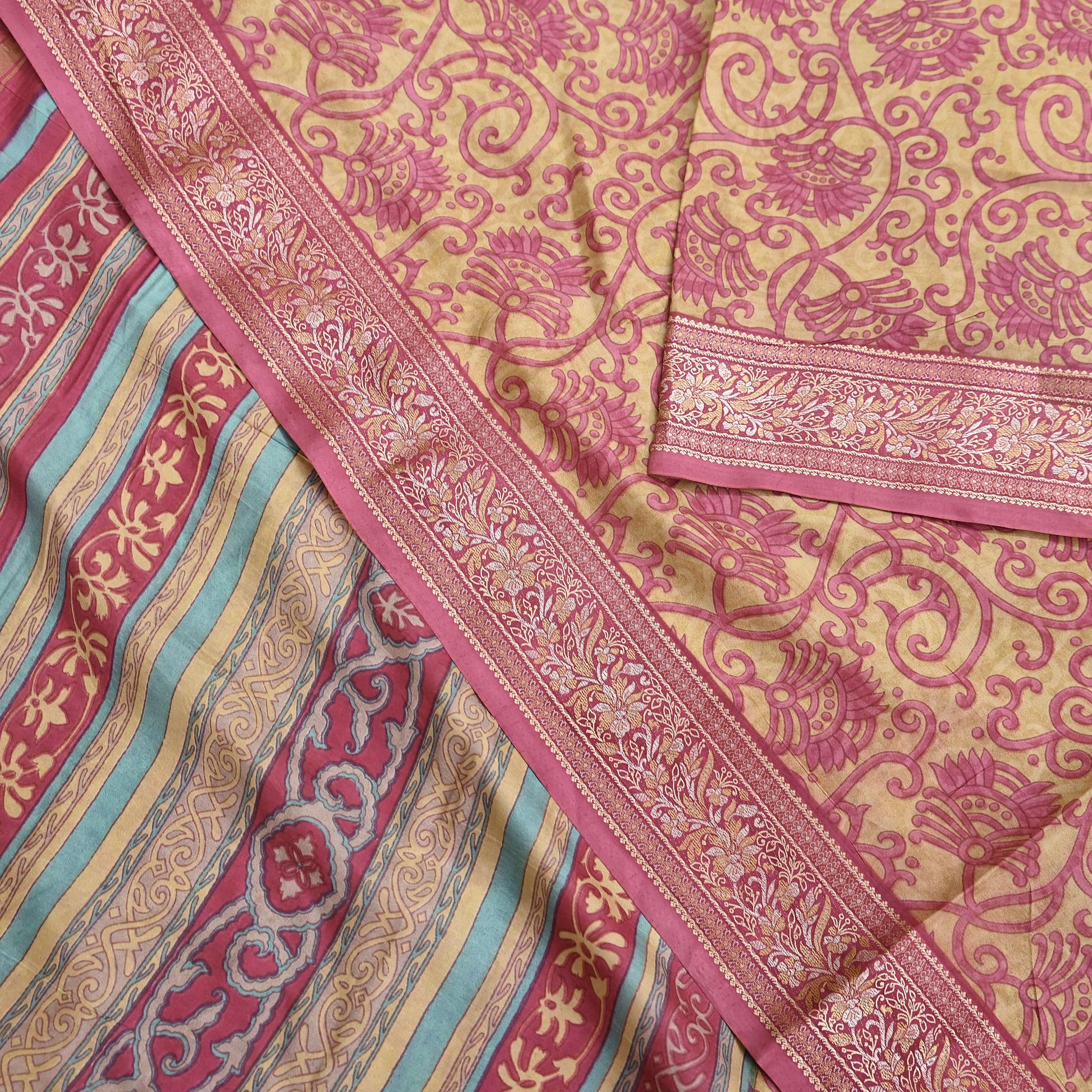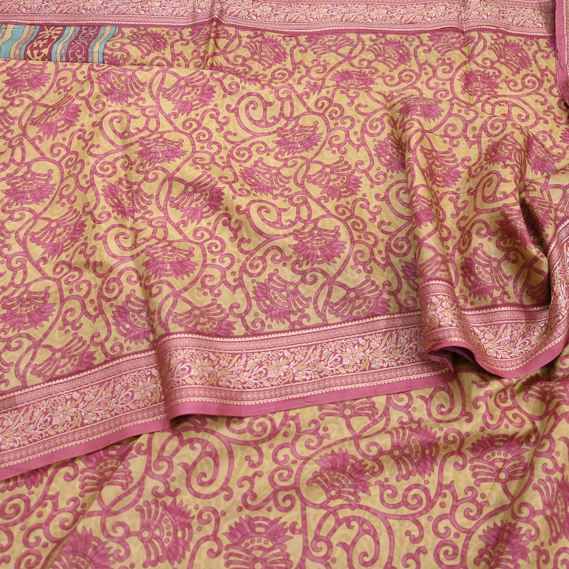 Indian Vintage Sari Pink & Beige Pure Silk Printed Sarees 5yd Sewing Craft Fabric Dress Making Soft Floral Paisley Upcycle Quilting Crafting