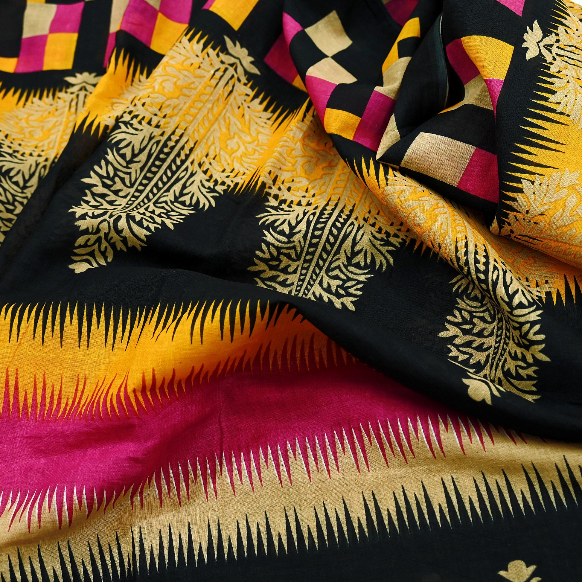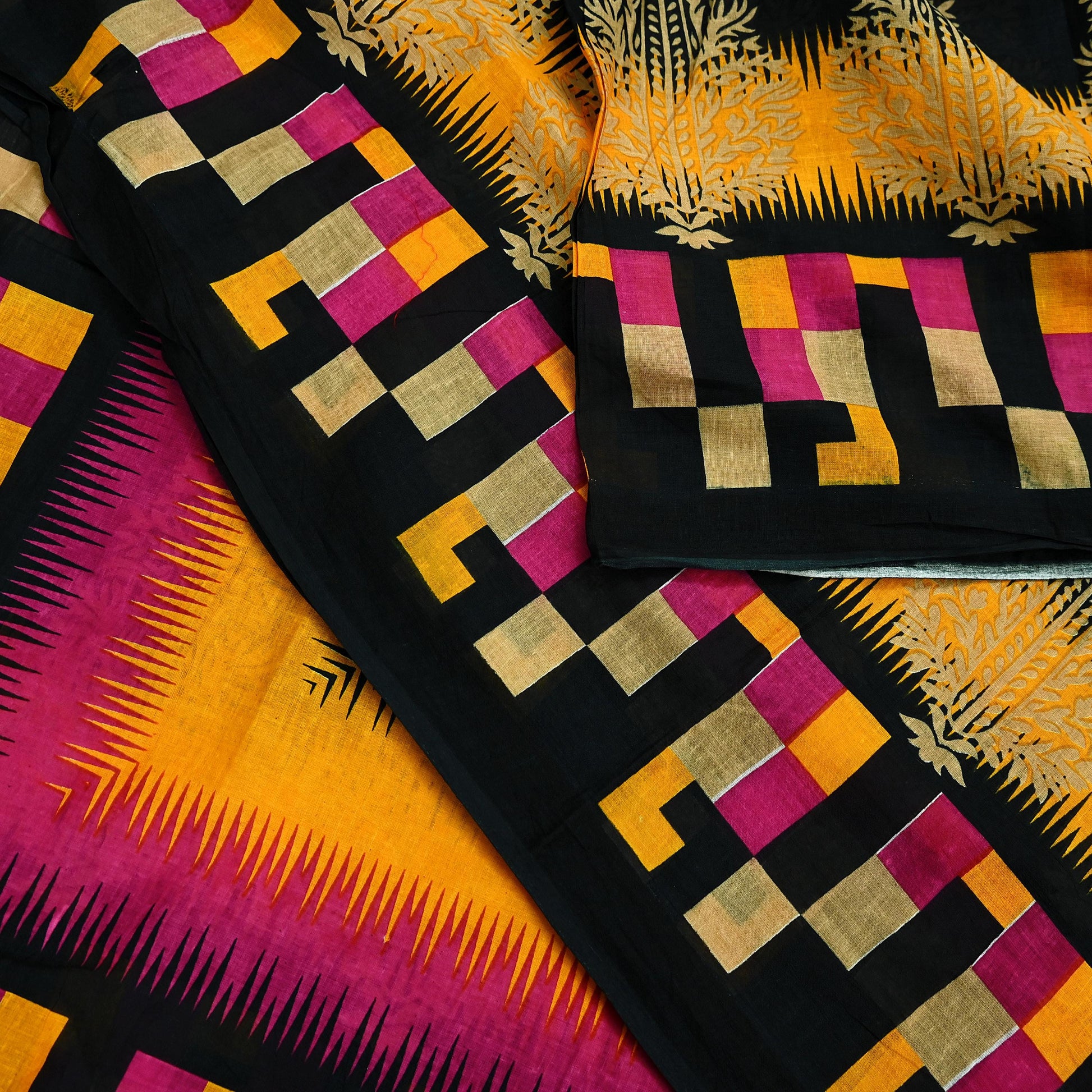 *Beautiful Pink & Black Colored Printed Pure Cotton Sarees.