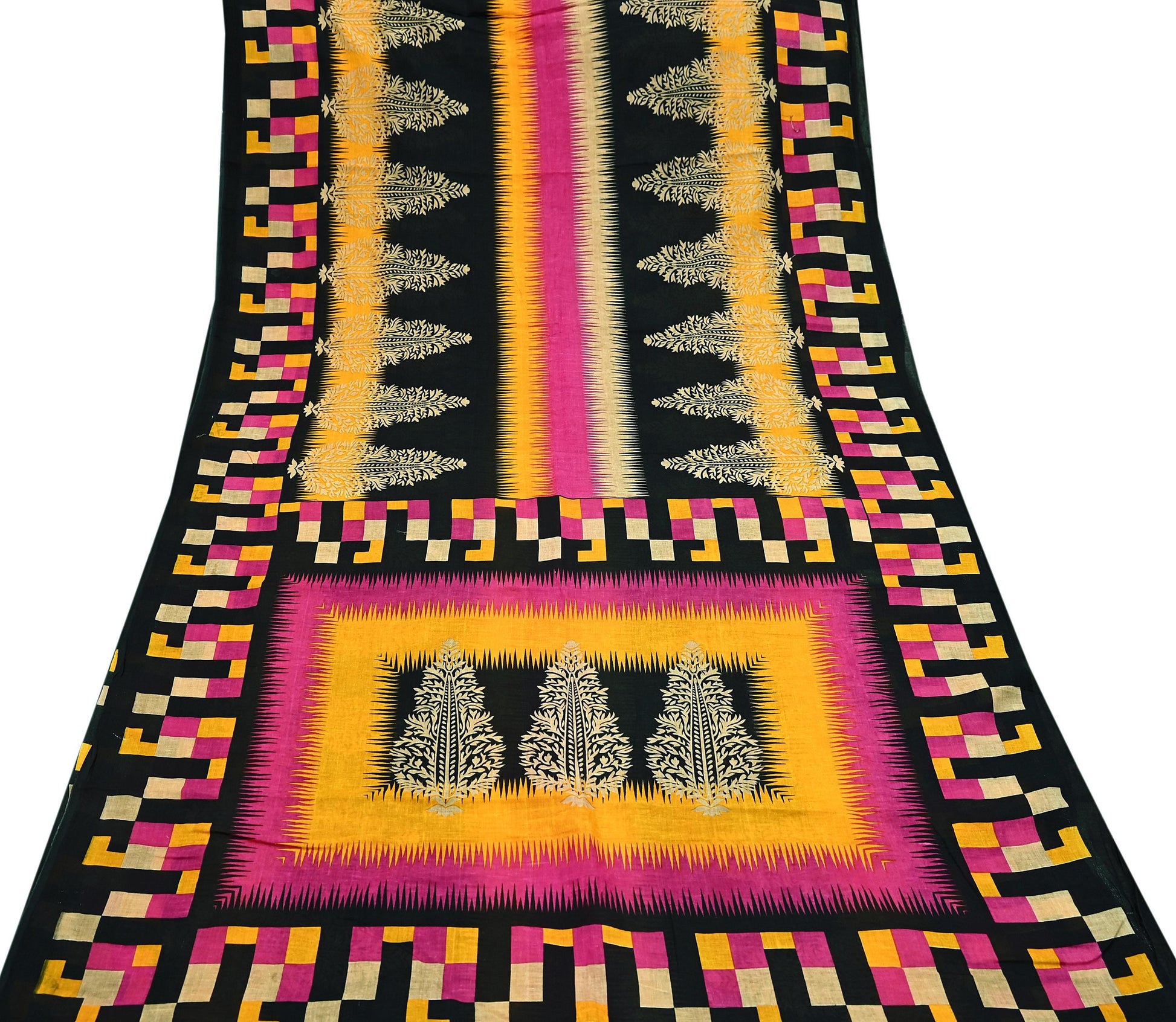 Indian Vintage Sari Pink & Black Printed 100% Pure Cotton Saree Soft Craft Fabric 5Yd Sewing Sarong Wrap Boho Dress Making Crafting Quilting