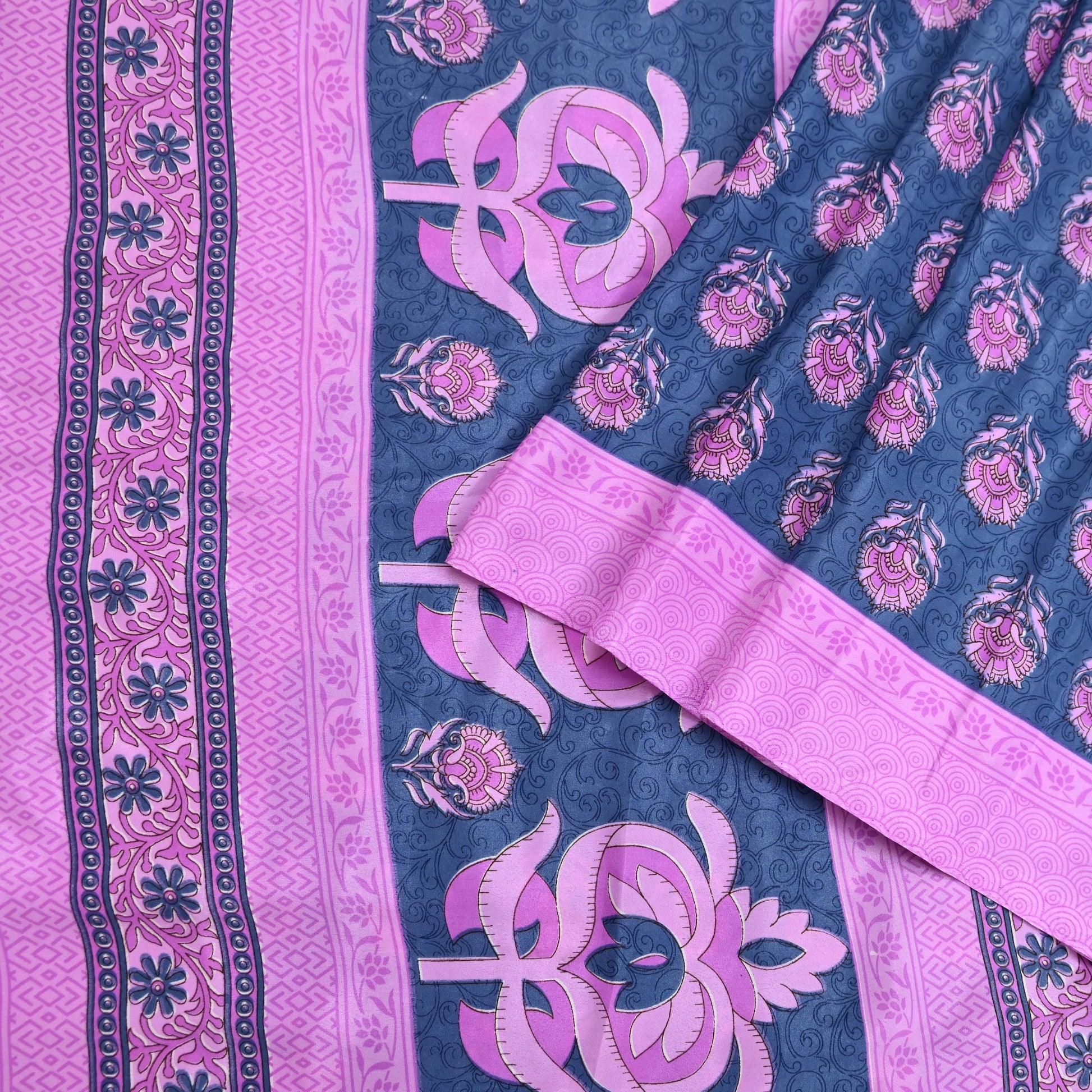 *Vintage Unique Pink & Gray colored printed moss crepe saree.