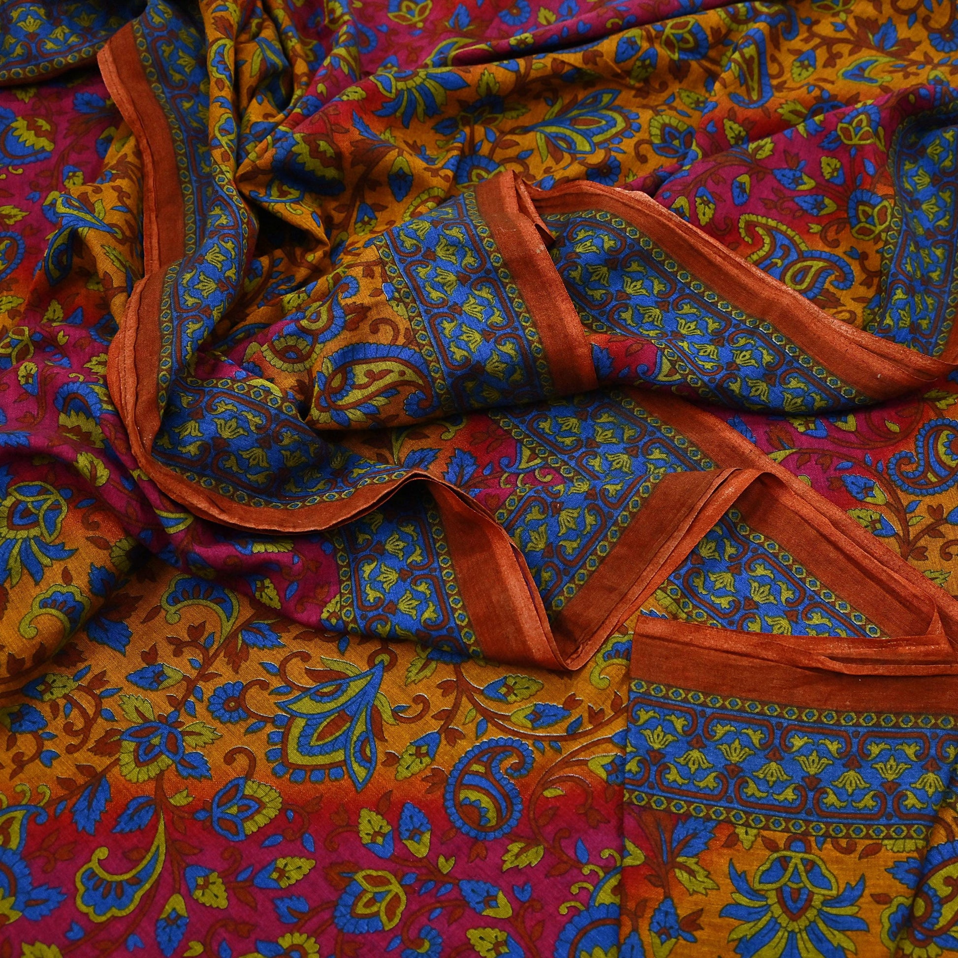 This Unique Vintage Saree Can Be Used For Various Crafting Ideas Even If You Don‘t Want To Use It As A Sari. Design A Dress, Use It As A Throw, As Window Dressing, Upholstery, Sarongs, Table Linen And Much More. Let Your Creative Juices Flow And Use This Decorated Fabric In Multiple Fashion.