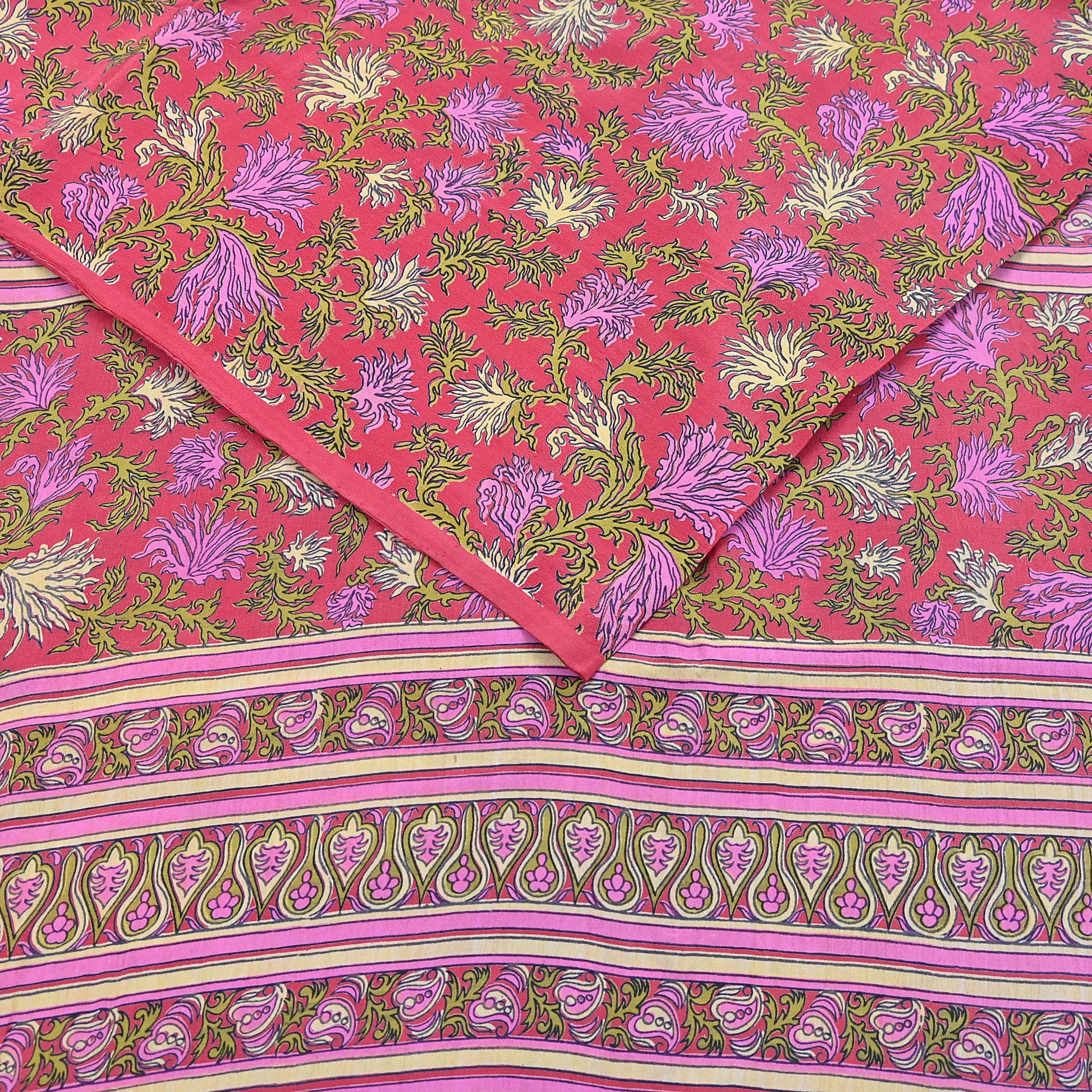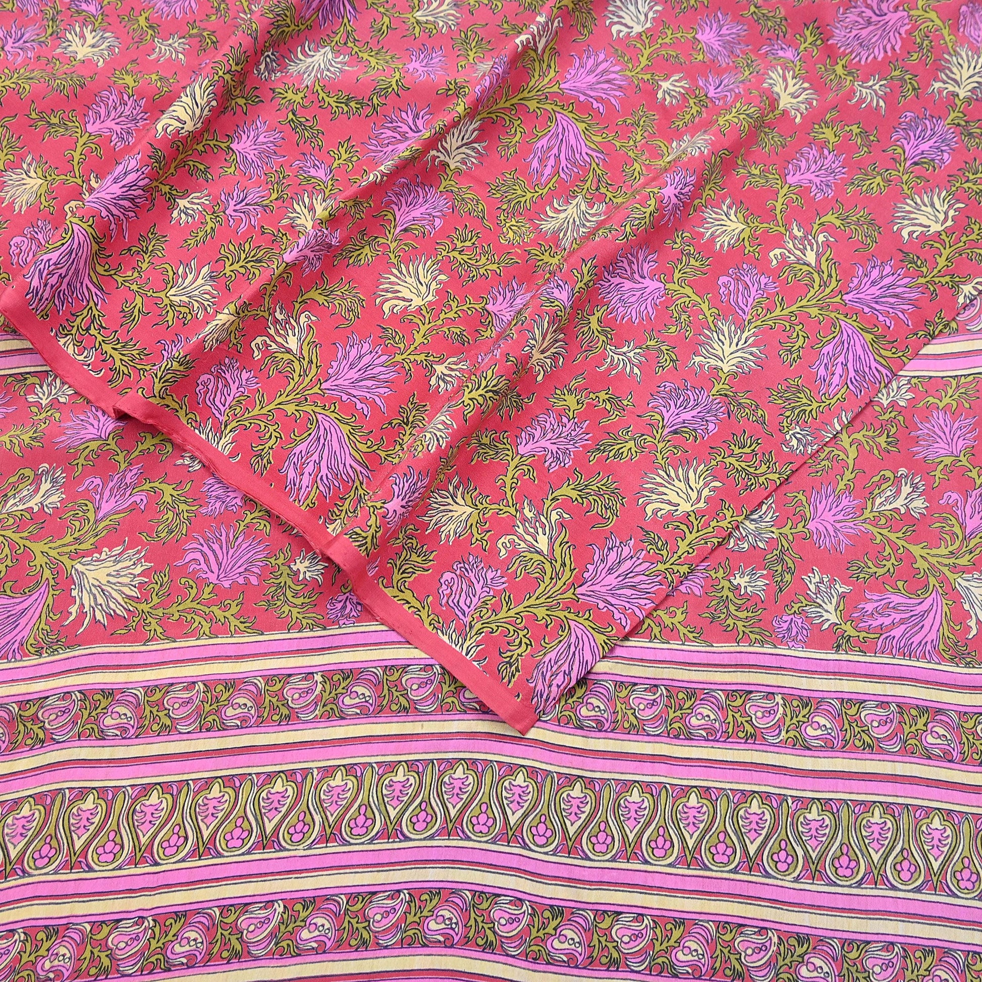Indian Vintage Sari Pink Pure Crepe Silk Printed Saree 5yard Sewing Quilting Floral Soft Craft Fabric Wrap