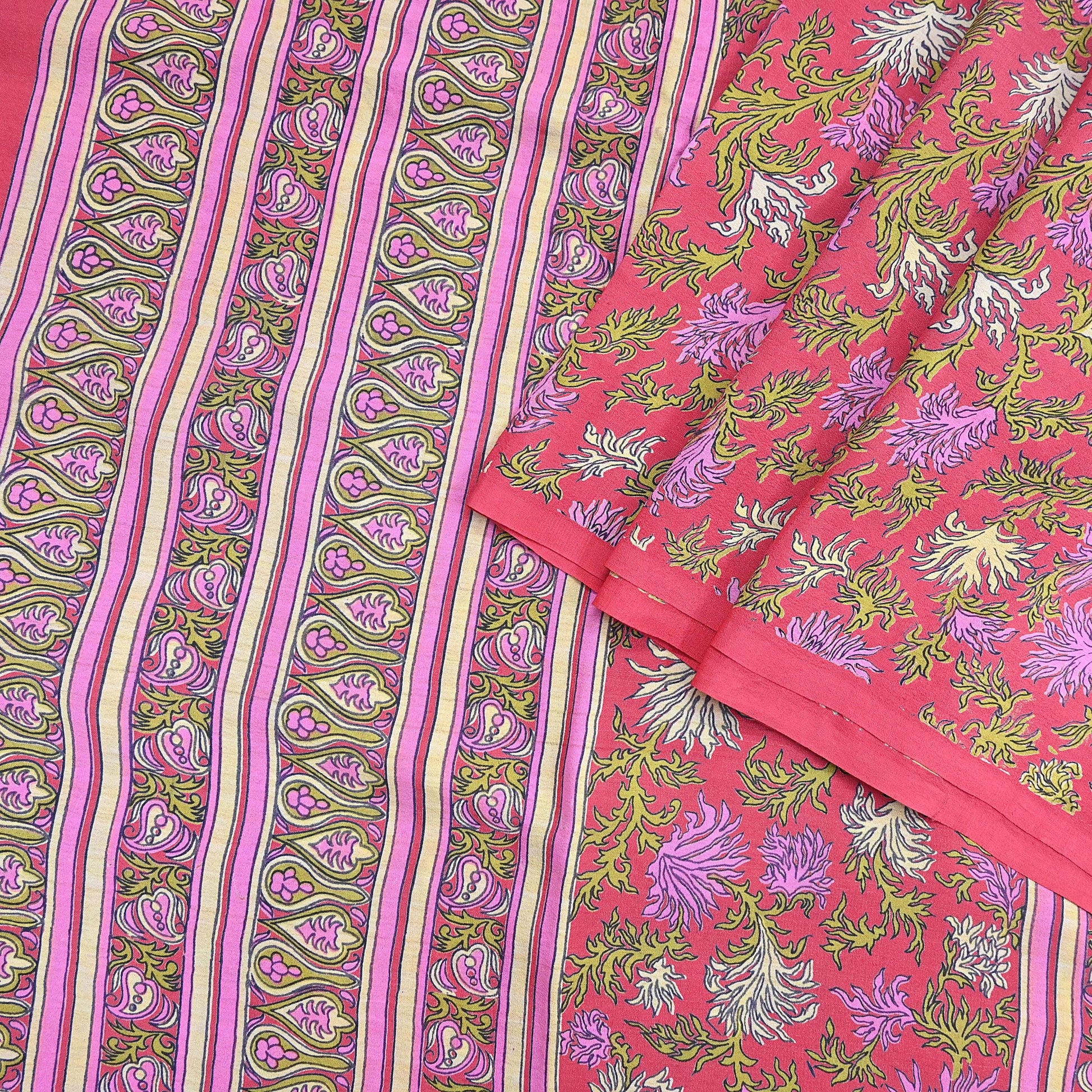 🔹This unique vintage Pink Colored Printed Pure Crepe Silk Saree Fabric.