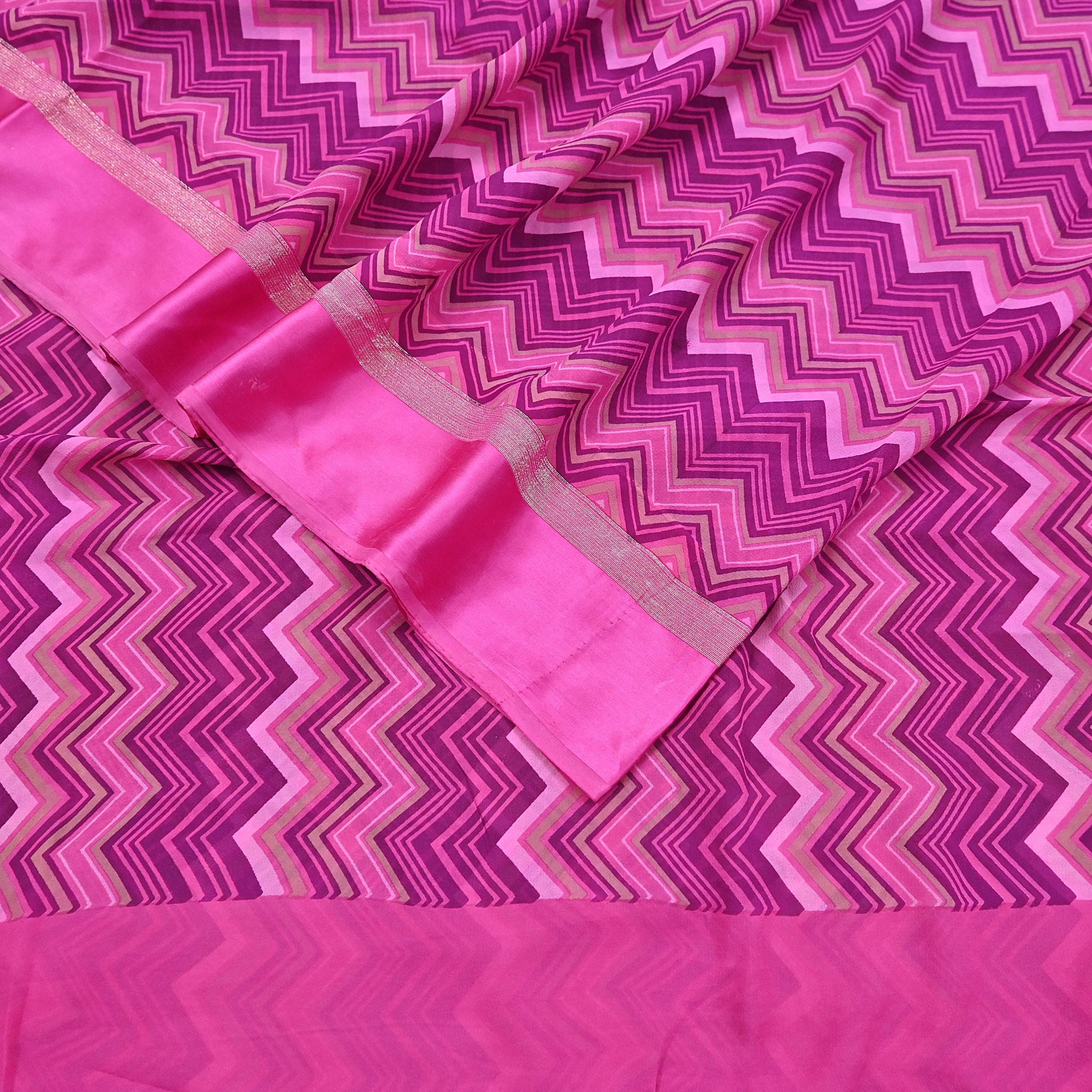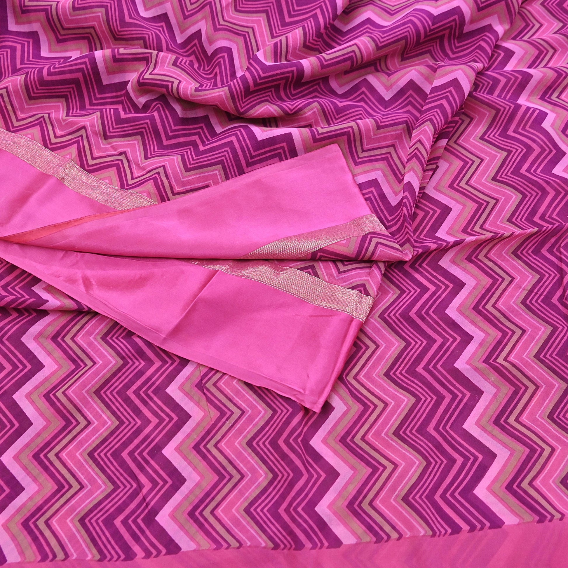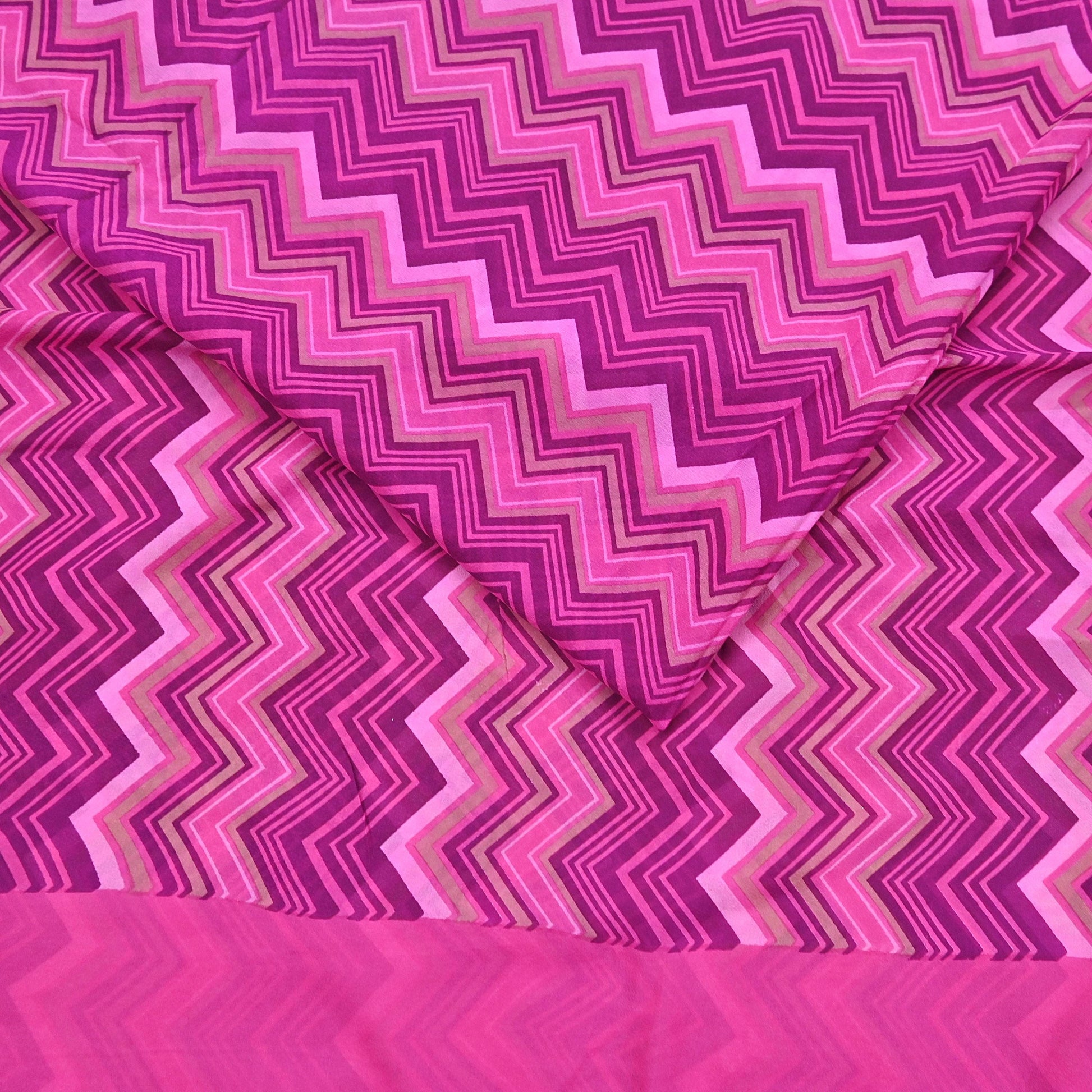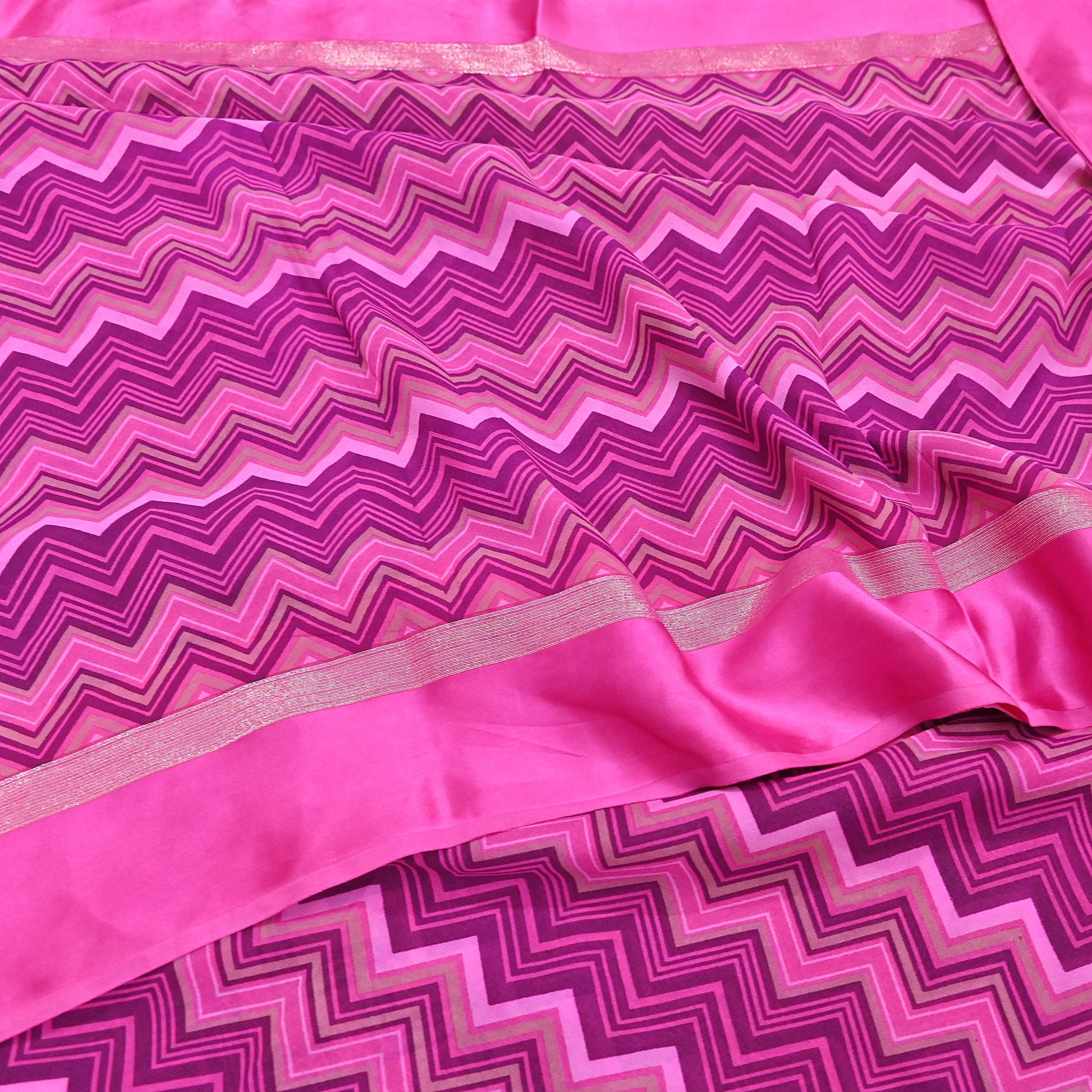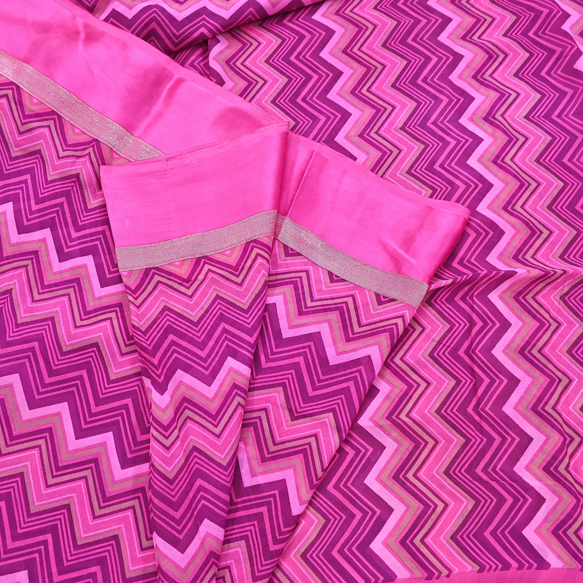 Indian Vintage Sari Pink Pure Georgette Silk Printed Saree Craft Fabric Sewing 5Yd Soft Light Dress Making Crafting Quilting Upcycle Zigzag