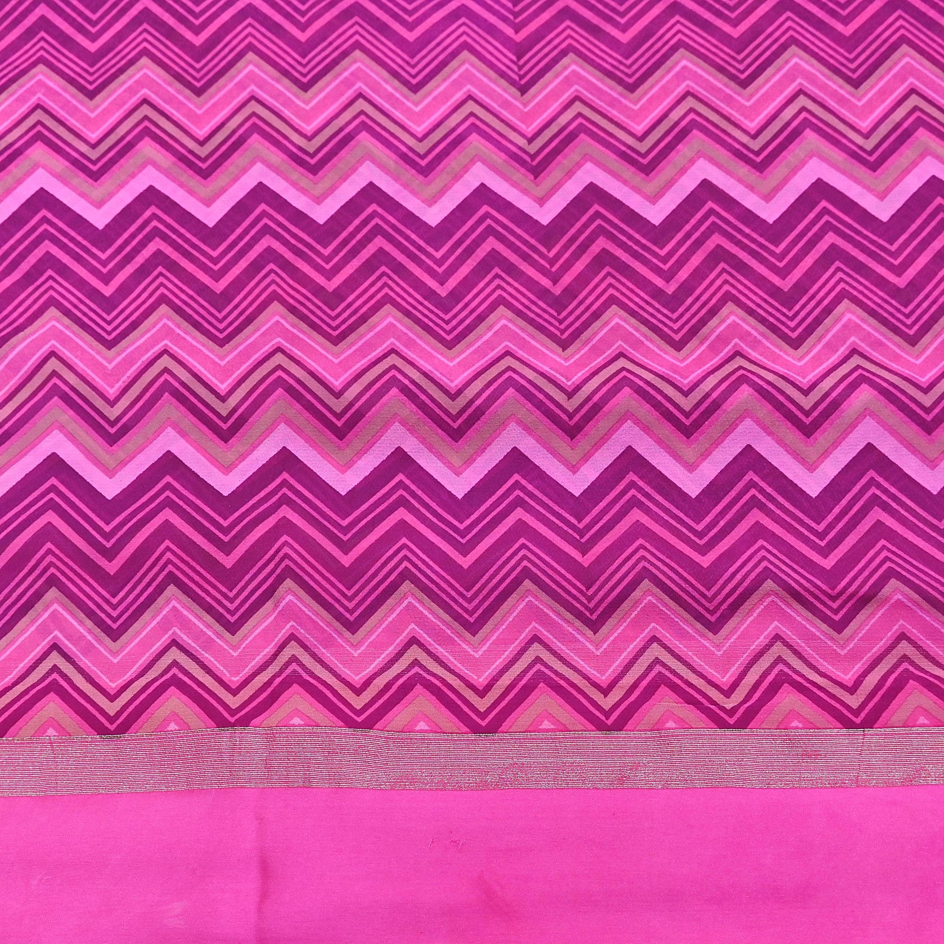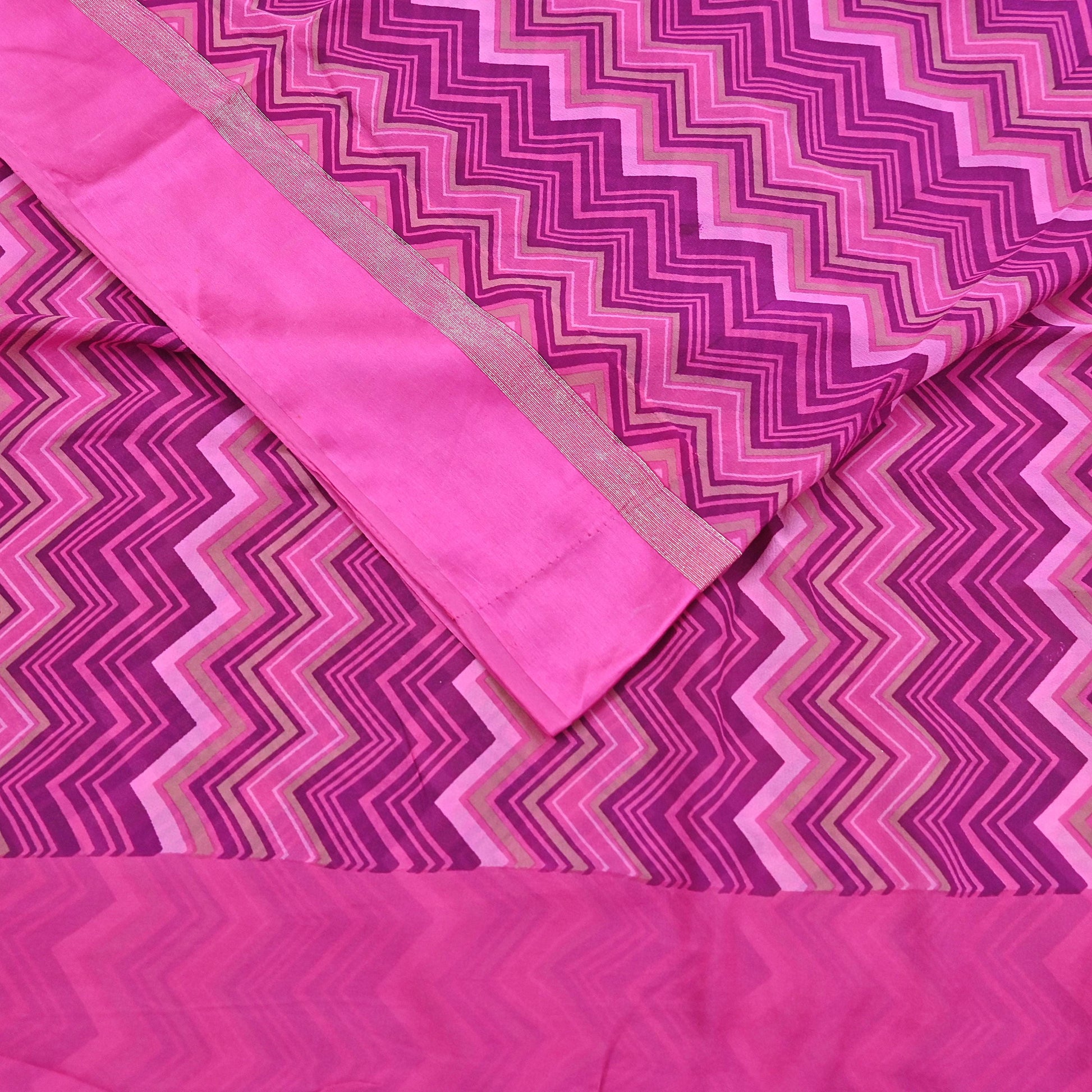 Nice Zigzag design with printed work on Pink color base fabric is really enhancing the beauty of the saree.