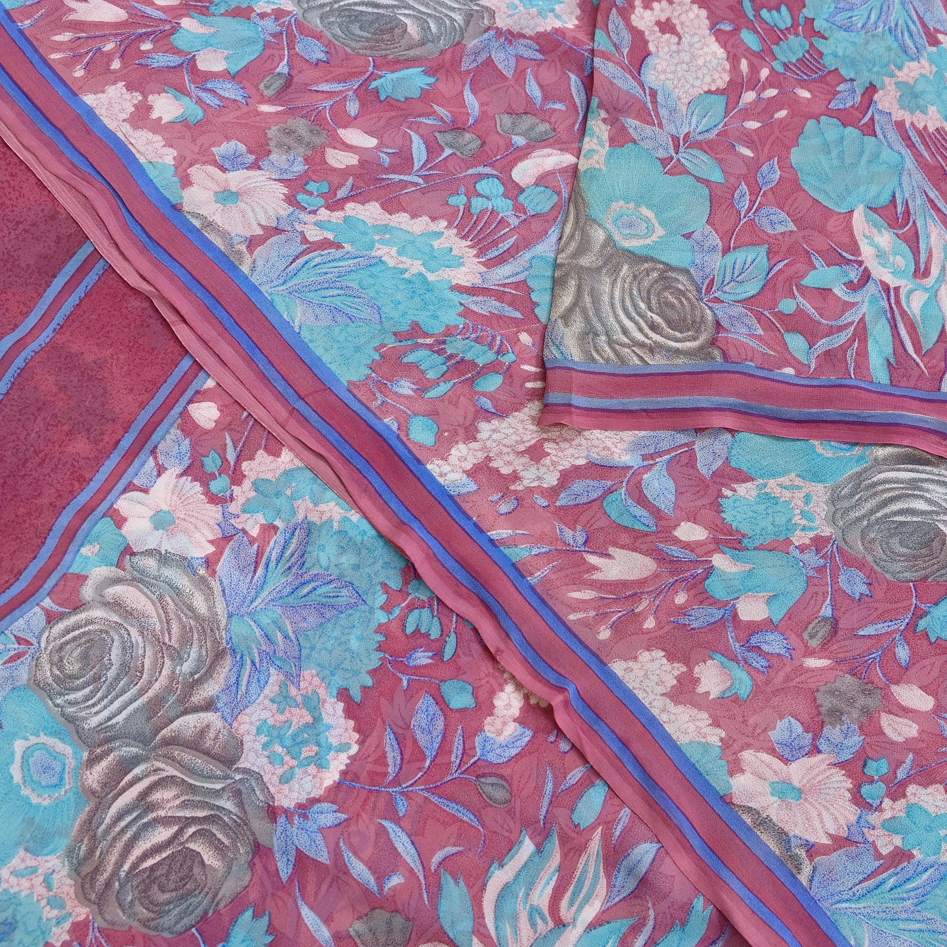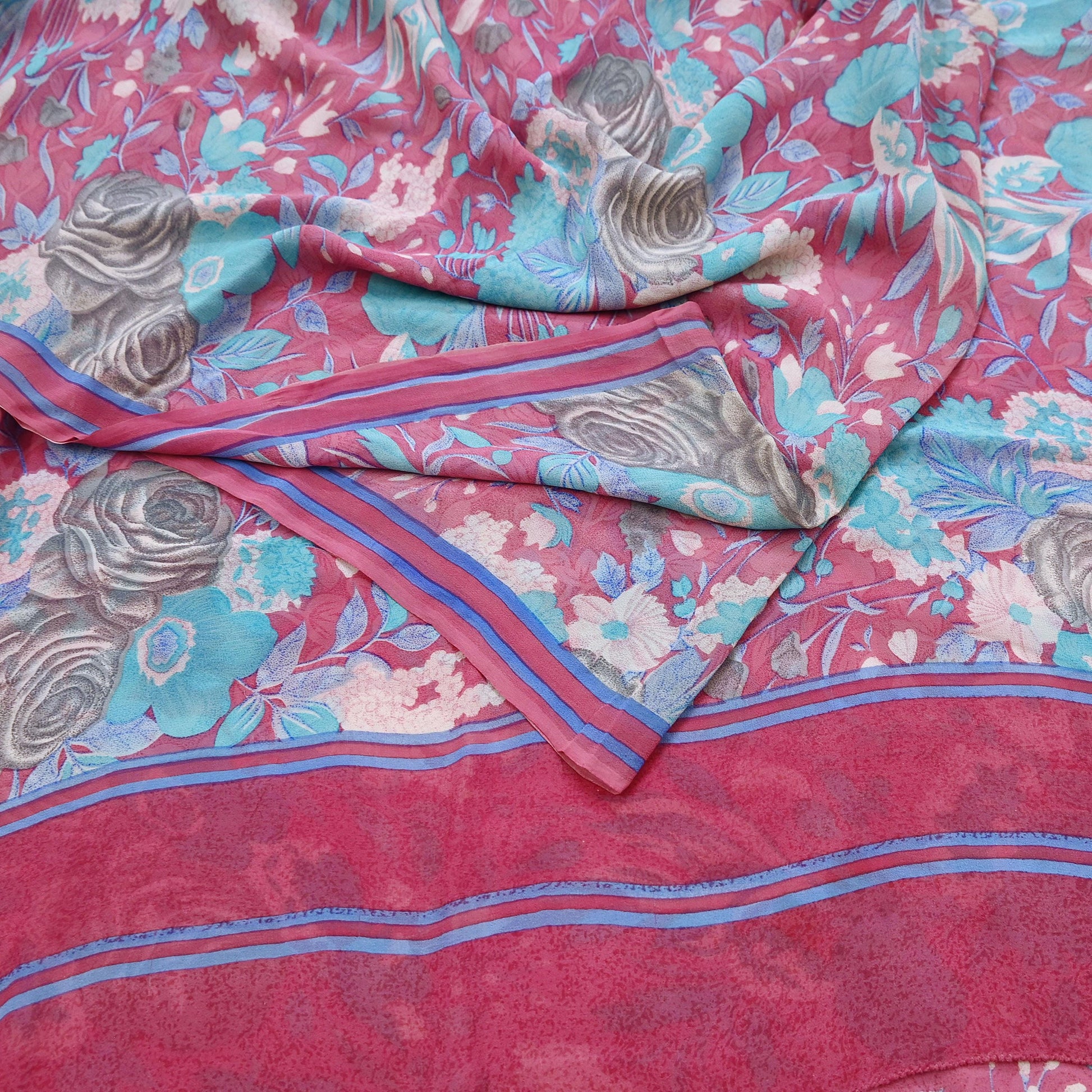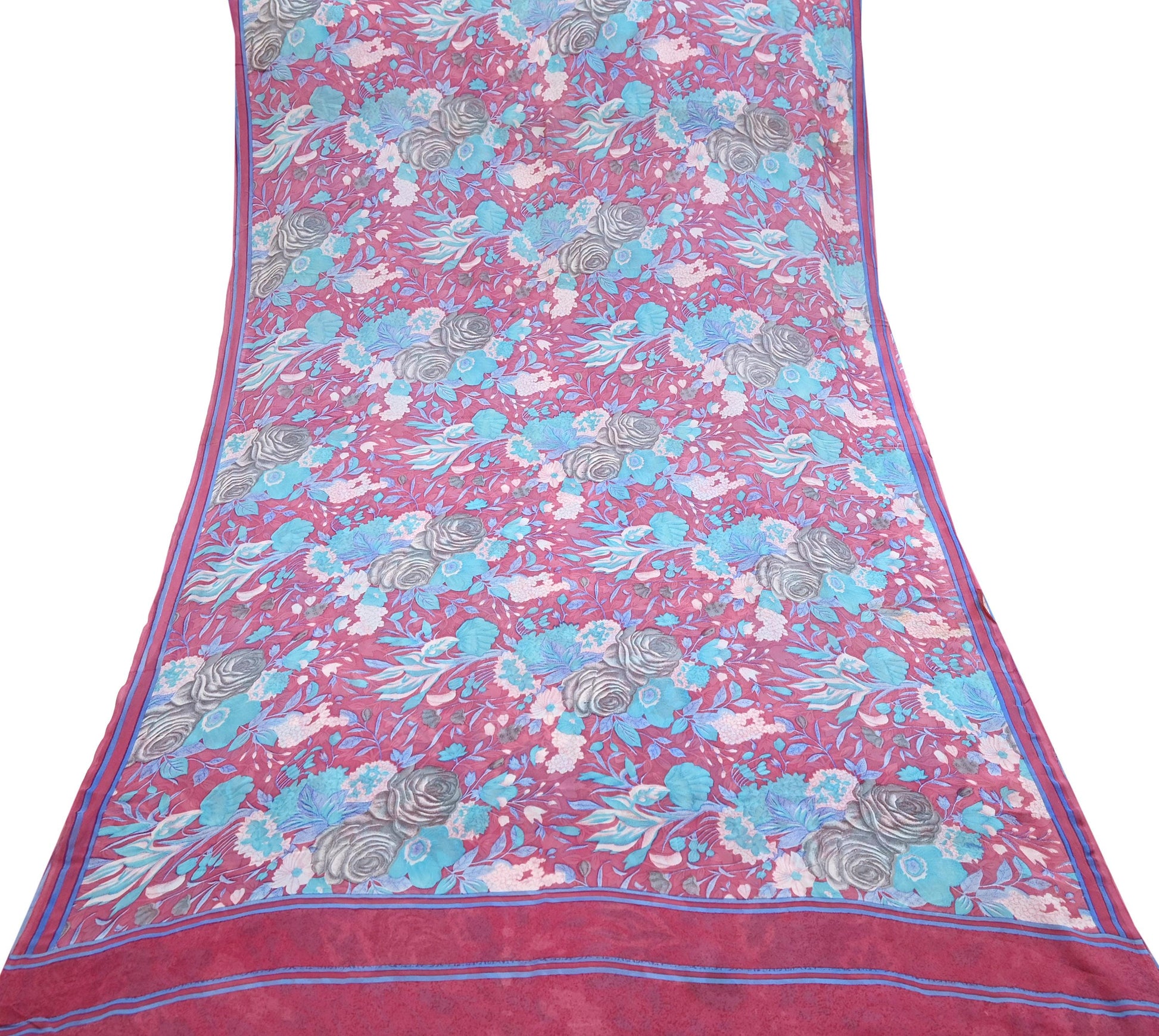 Indian Vintage Sari Pink Pure Georgette Silk Printed Saree Craft Fabric Sewing 6Yd Soft Light Dress Making Crafting Quilting Upcycle