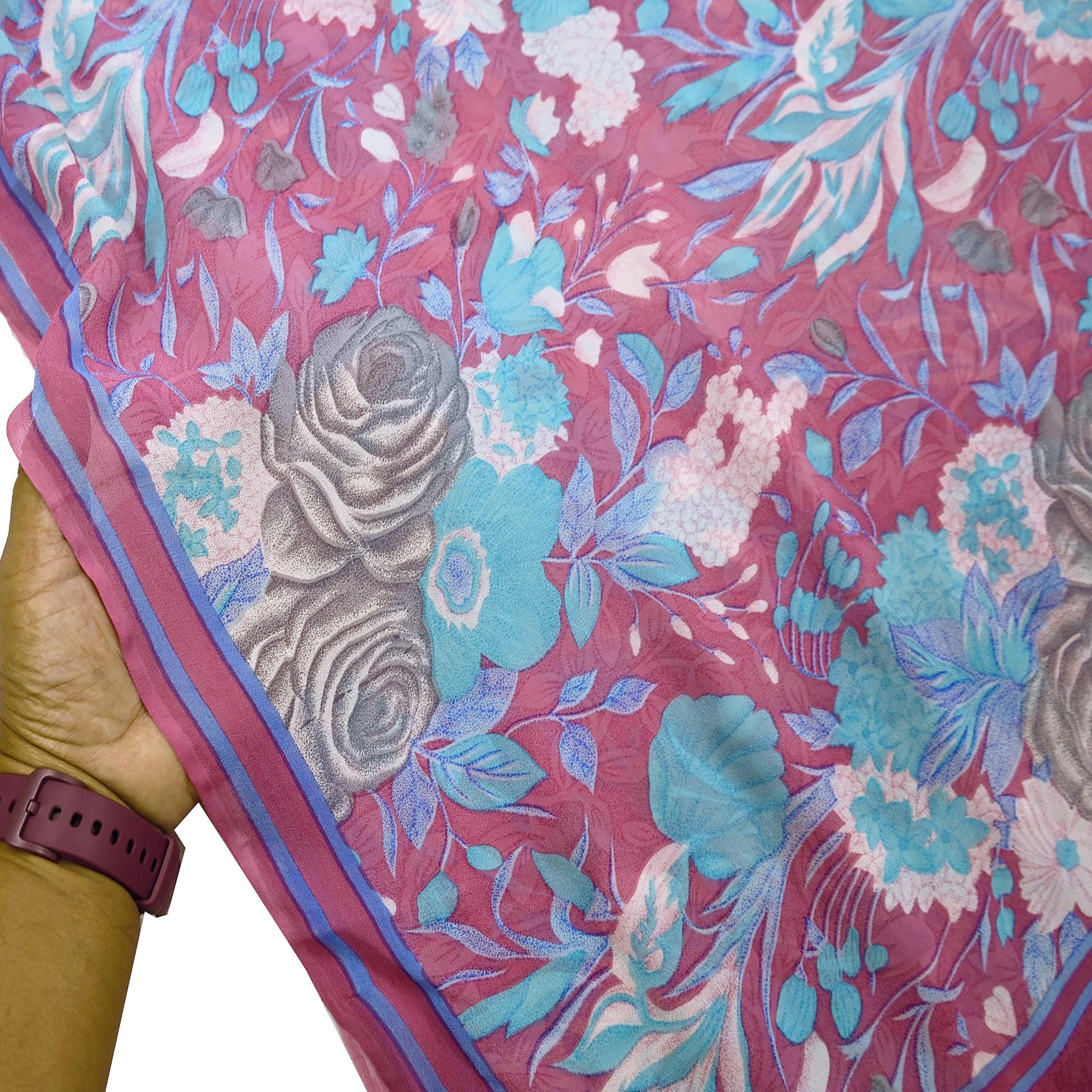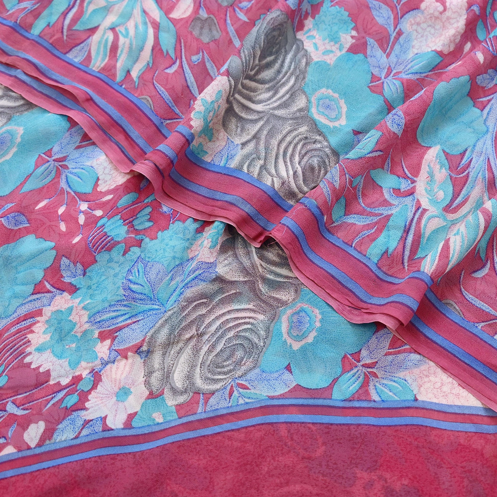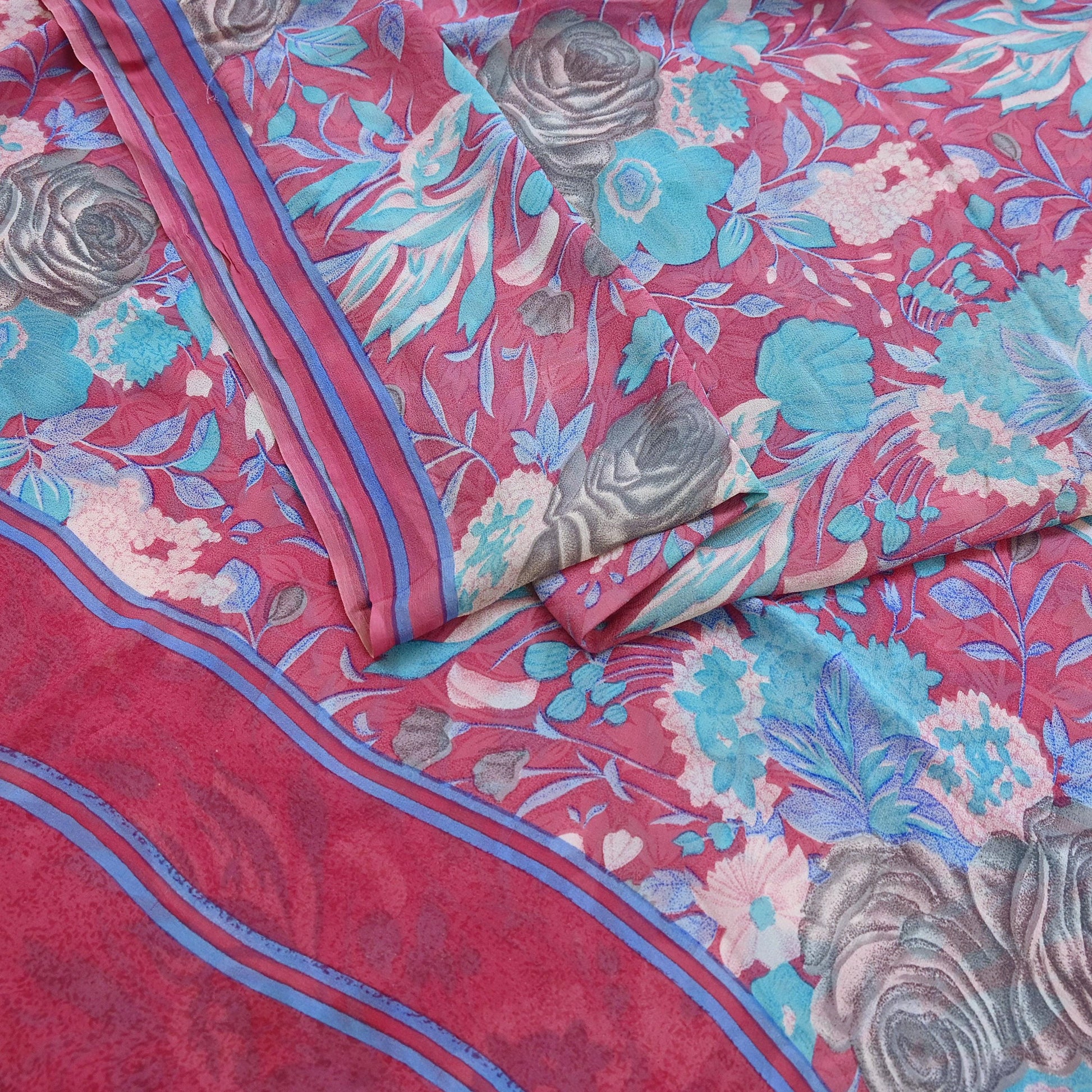 Indian Vintage Sari Pink Pure Georgette Silk Printed Saree Craft Fabric Sewing 6Yd Soft Light Dress Making Crafting Quilting Upcycle