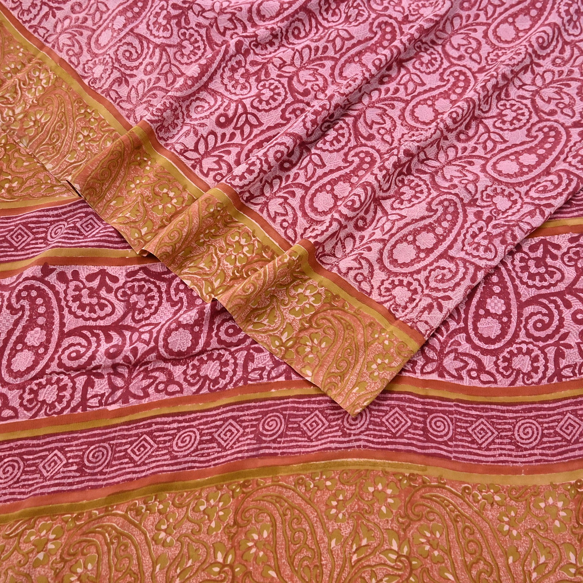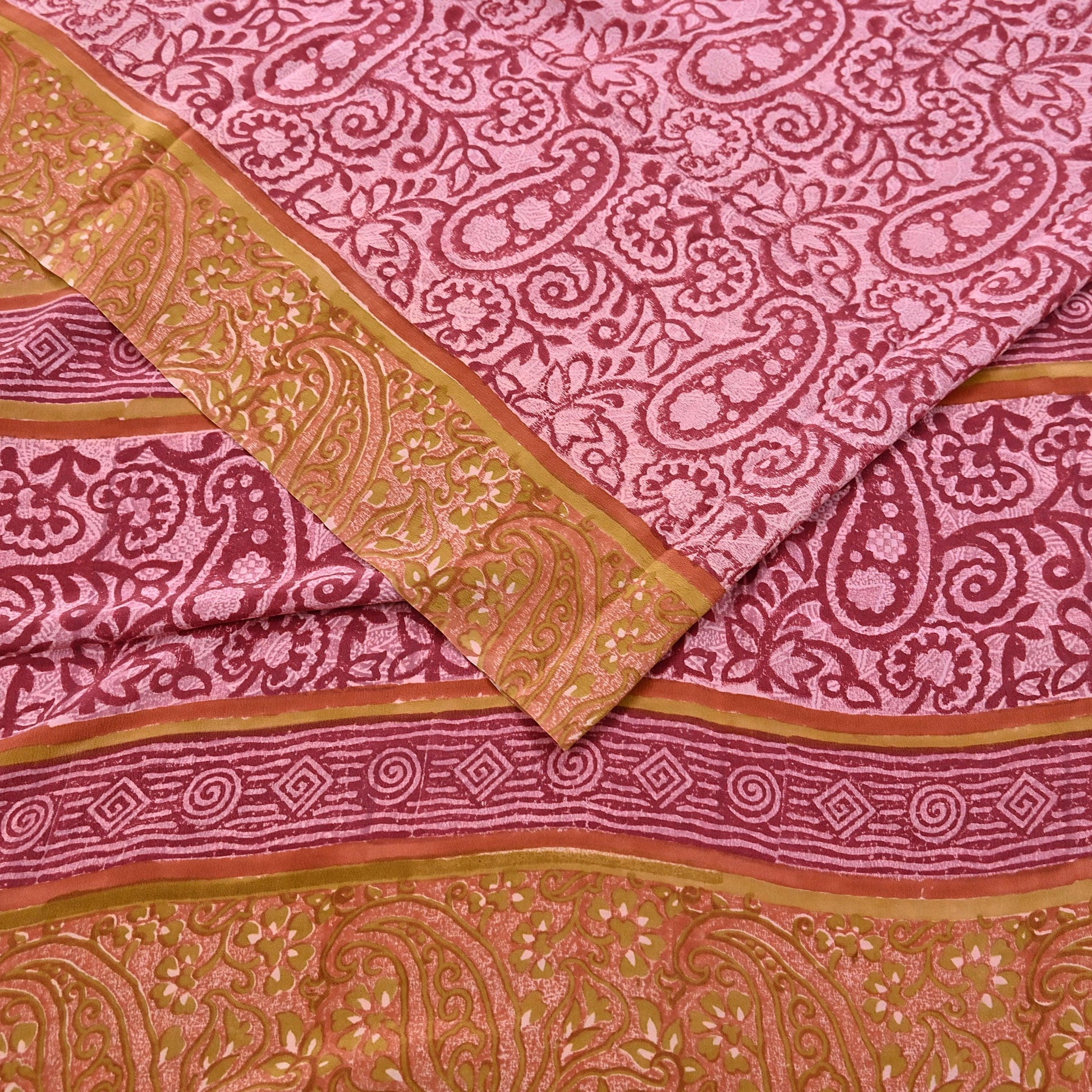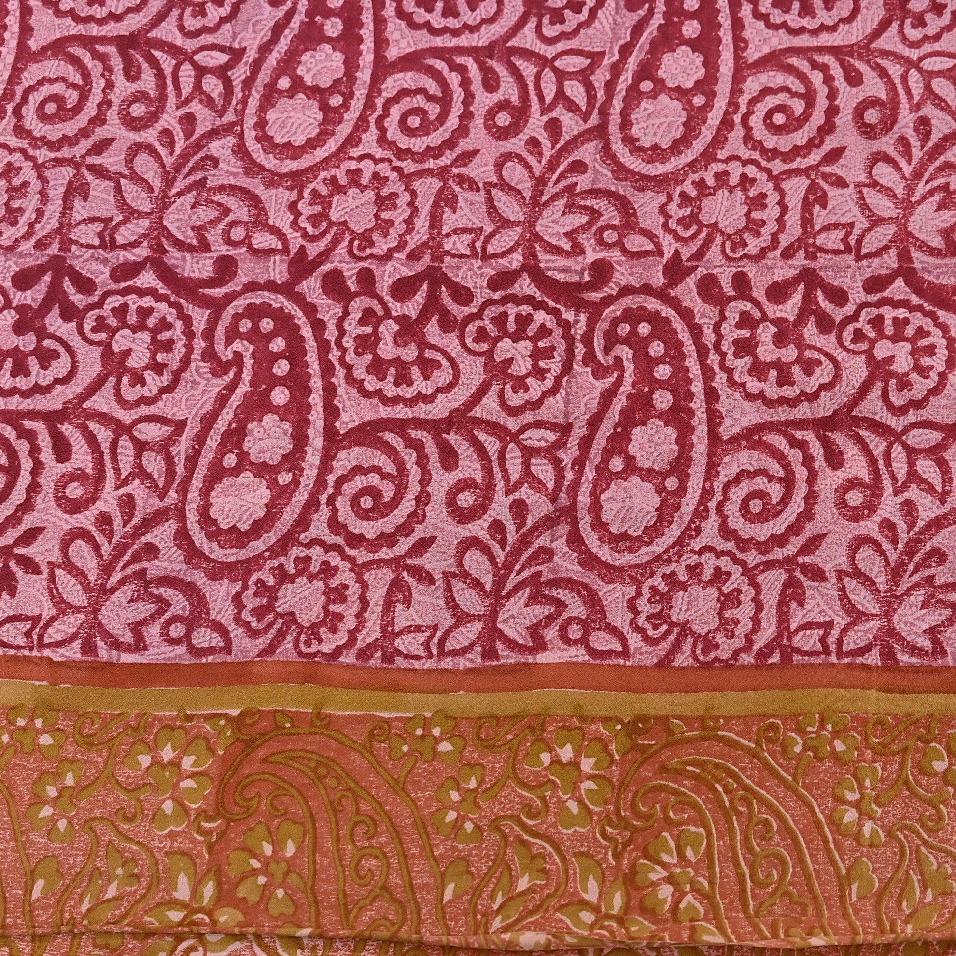 Indian Vintage Sari Pink & Red Pure Crepe Silk Printed Saree 5yard Sewing Soft Craft Fabric Wrap