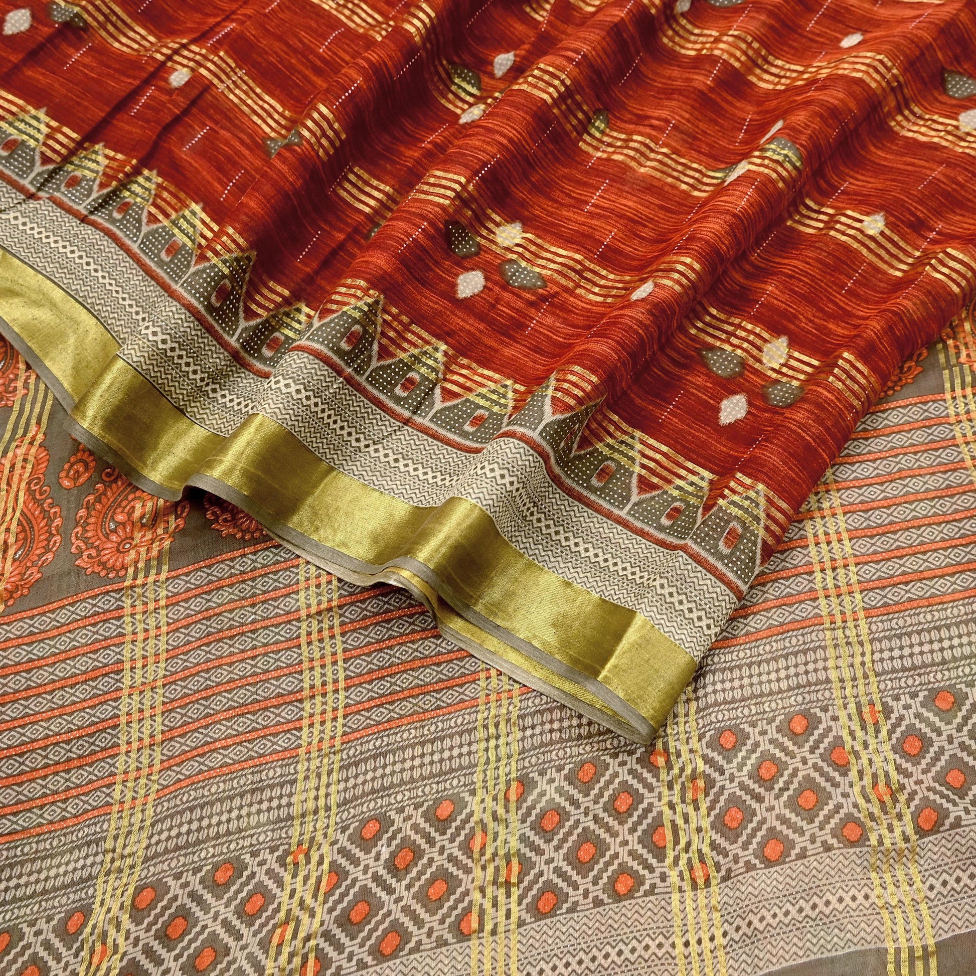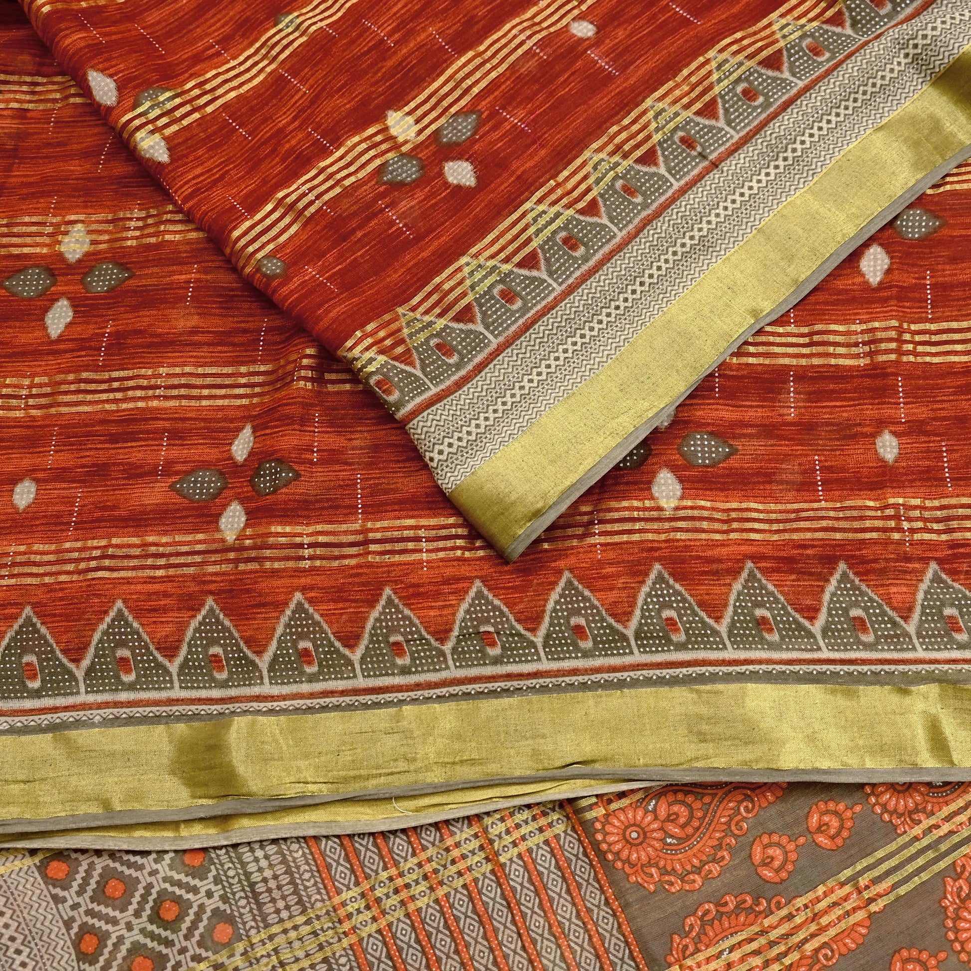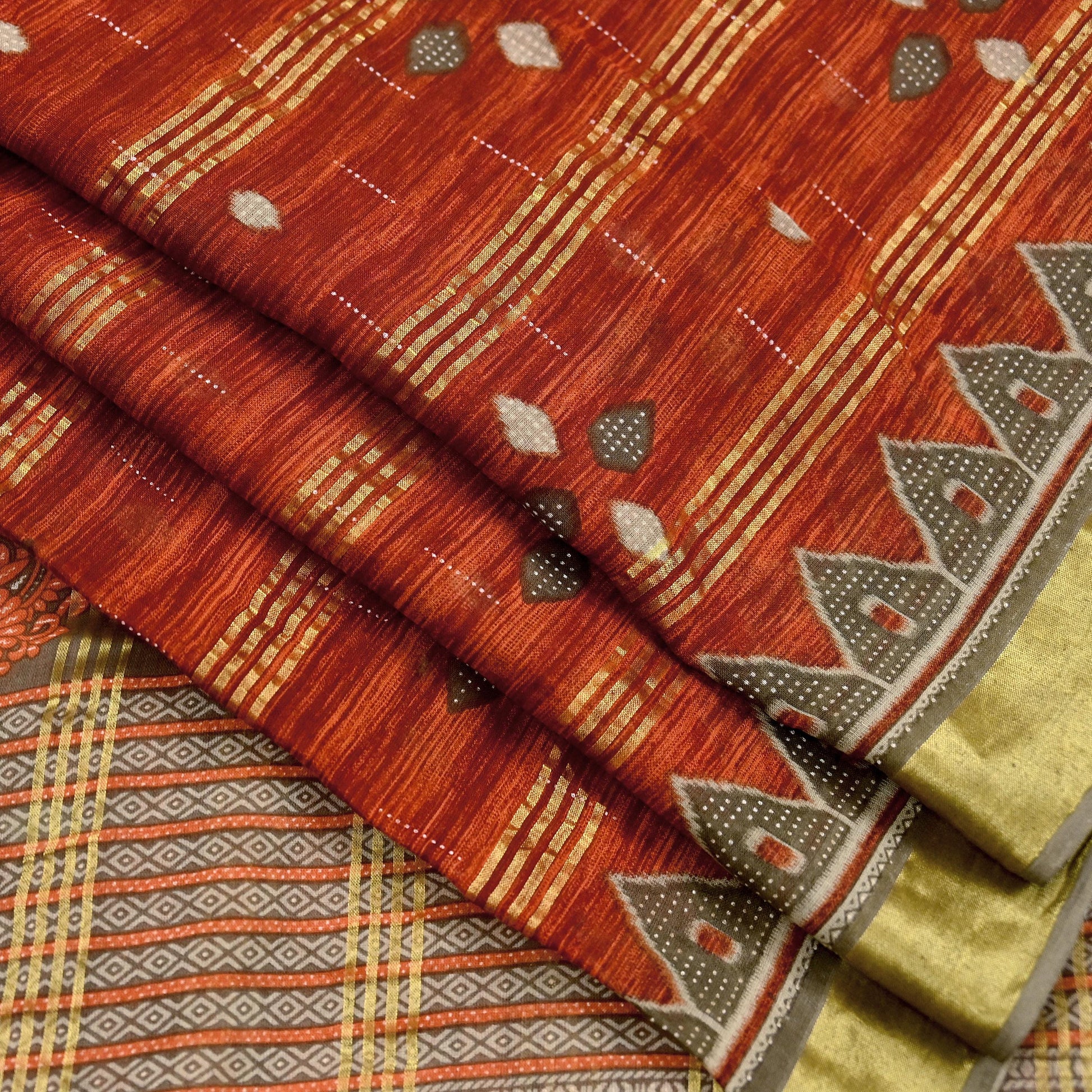 *Vintage Brown, Maroon & Orange Colored Printed Pure Cotton Sarees.