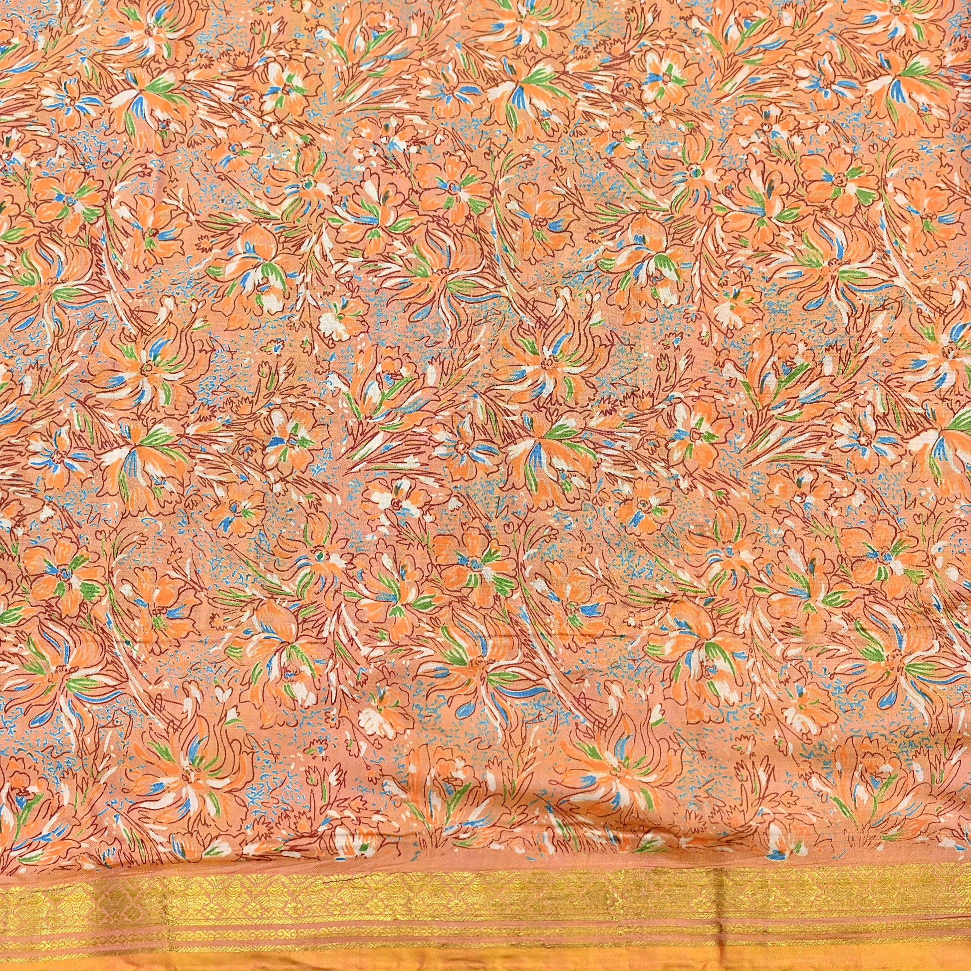 *Pallu & Border Has Beautiful Printed Floral Designs. With Golden woven Zari Border work.