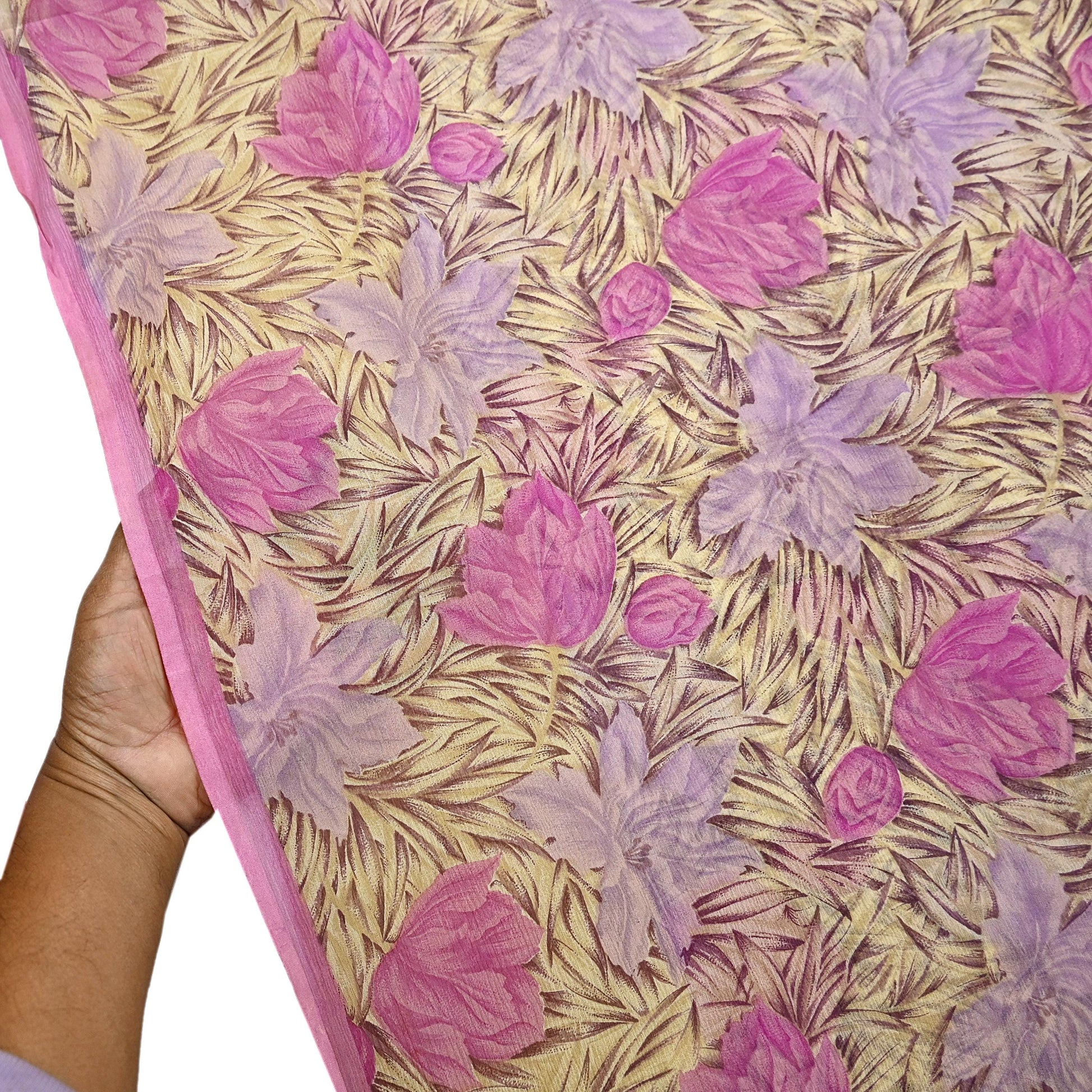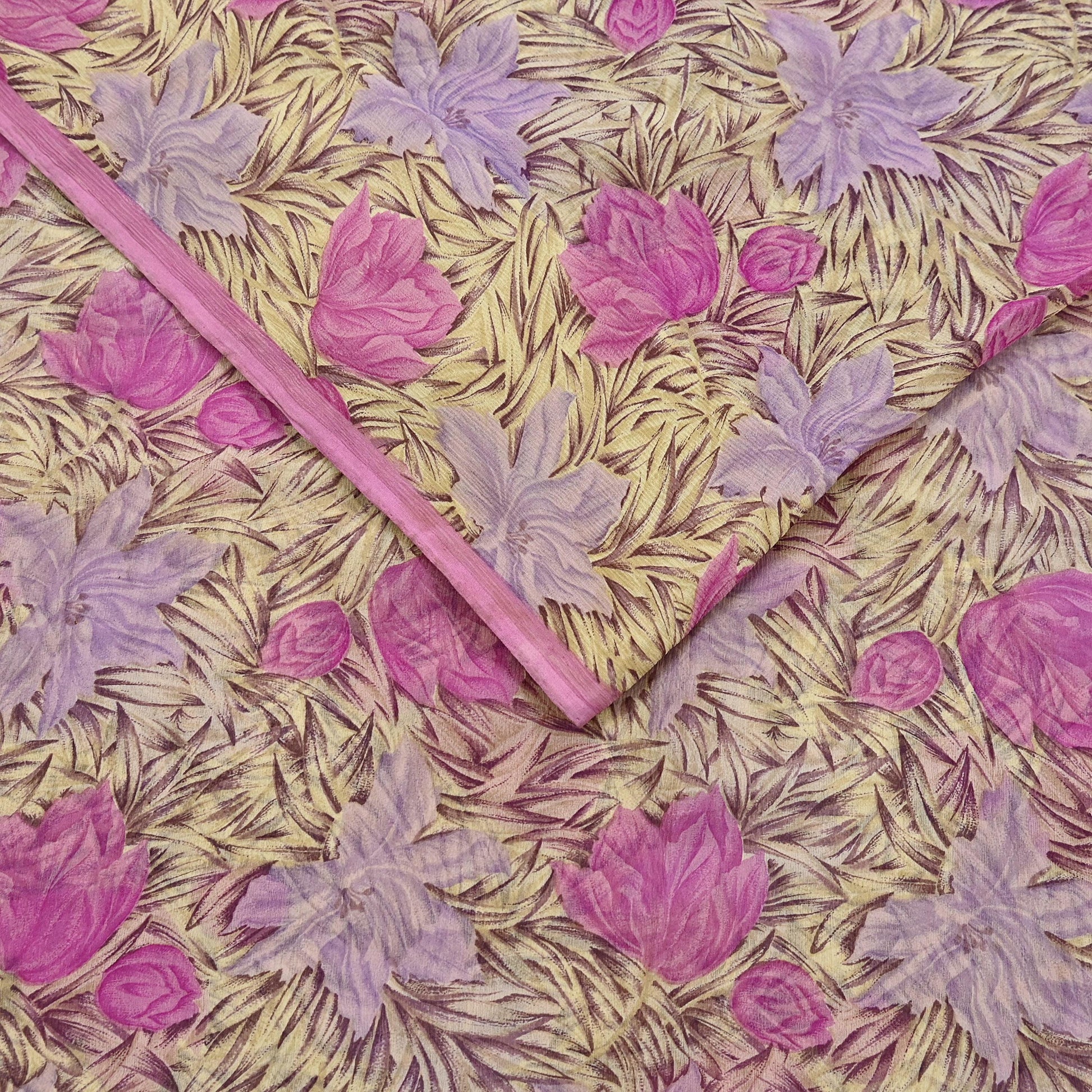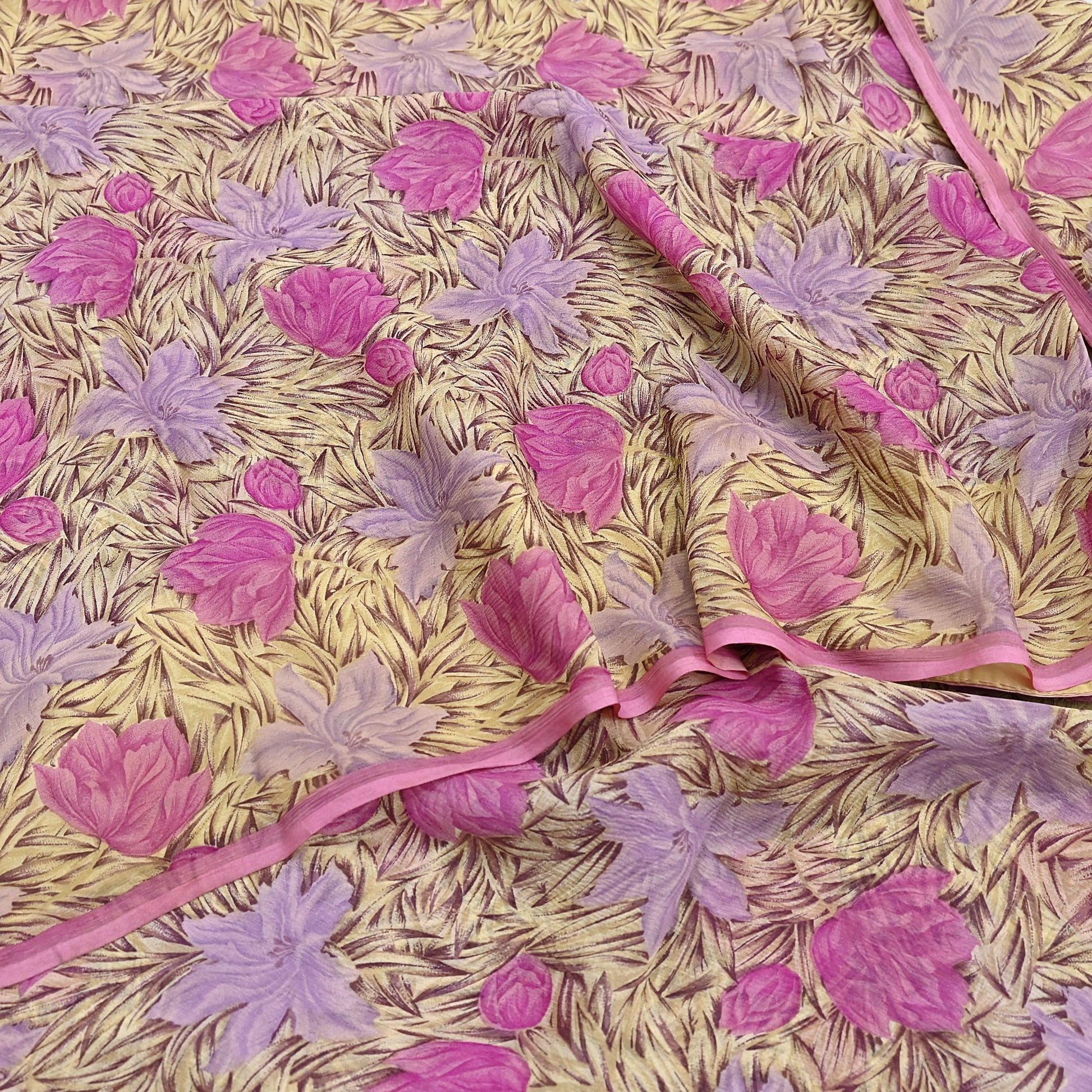 Indian Vintage Sari Pure Chiffon Silk Printed Sarees 5Yd Craft Fabric Sewing Soft Light Sari Dress Making Quilting For Crating