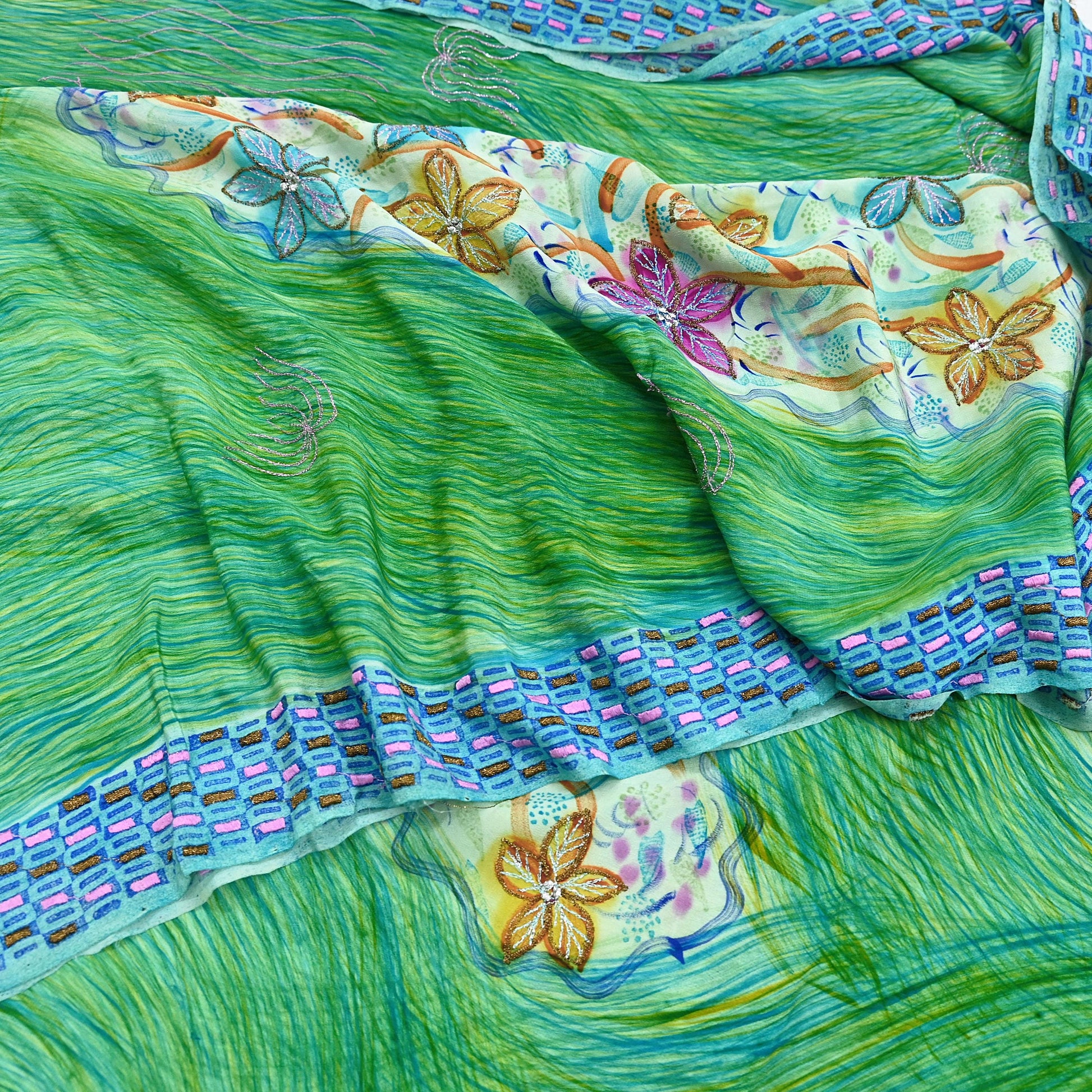 *Beautiful Green & Ivory Colored Hand Embroidered Pure Crepe Silk Saree.
