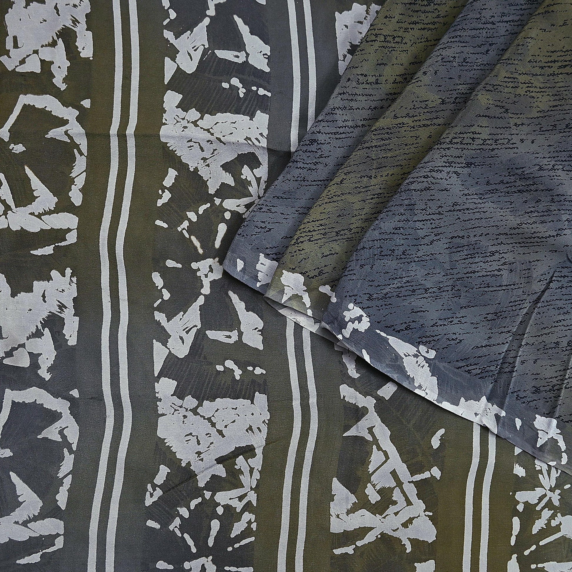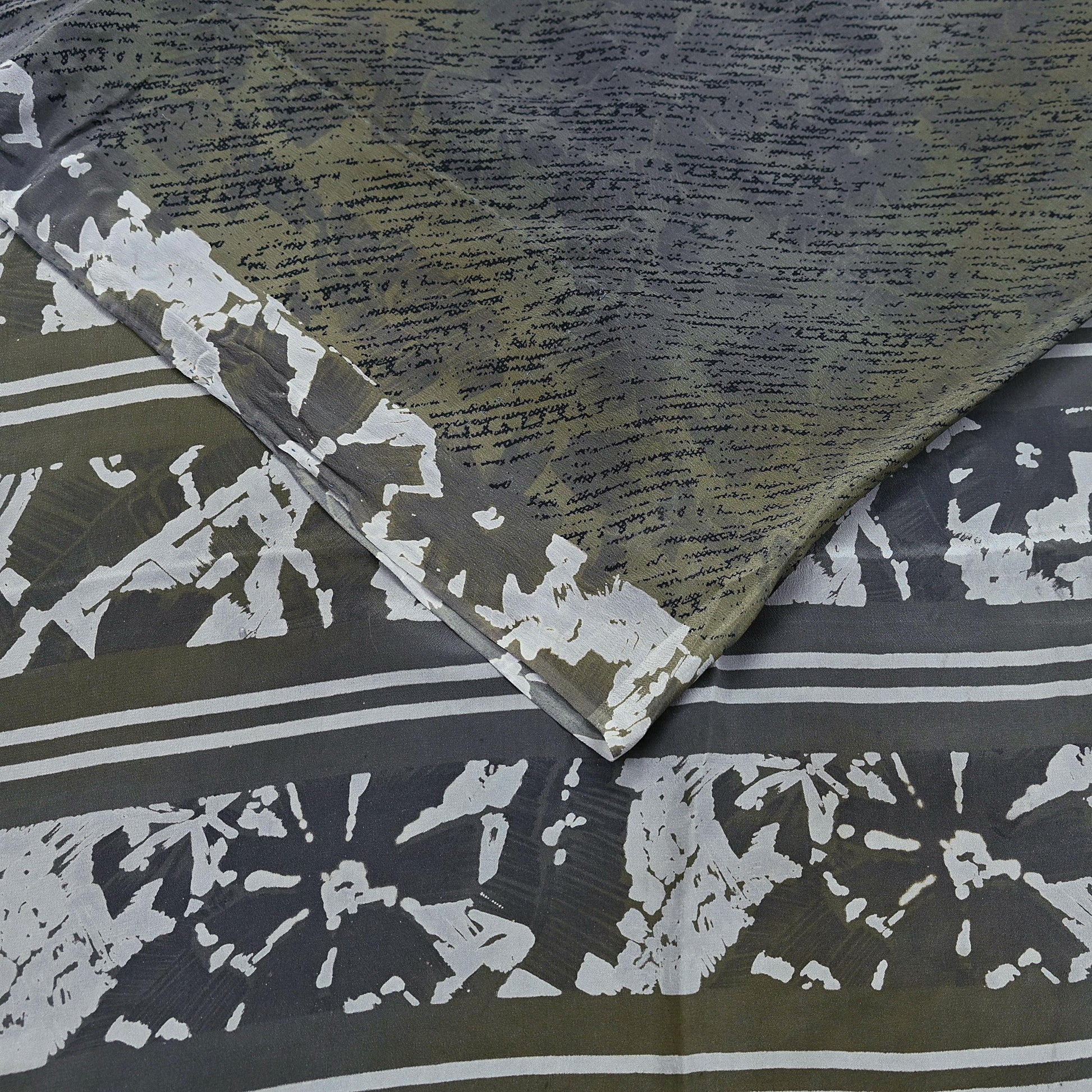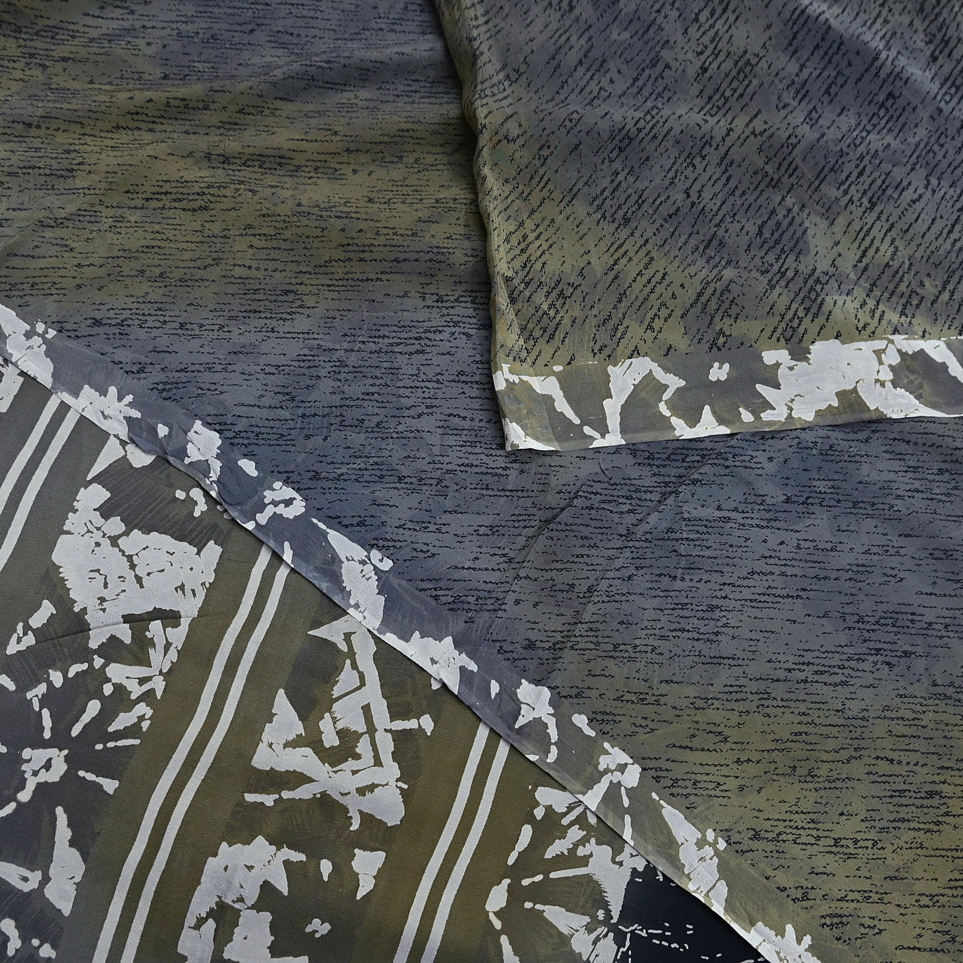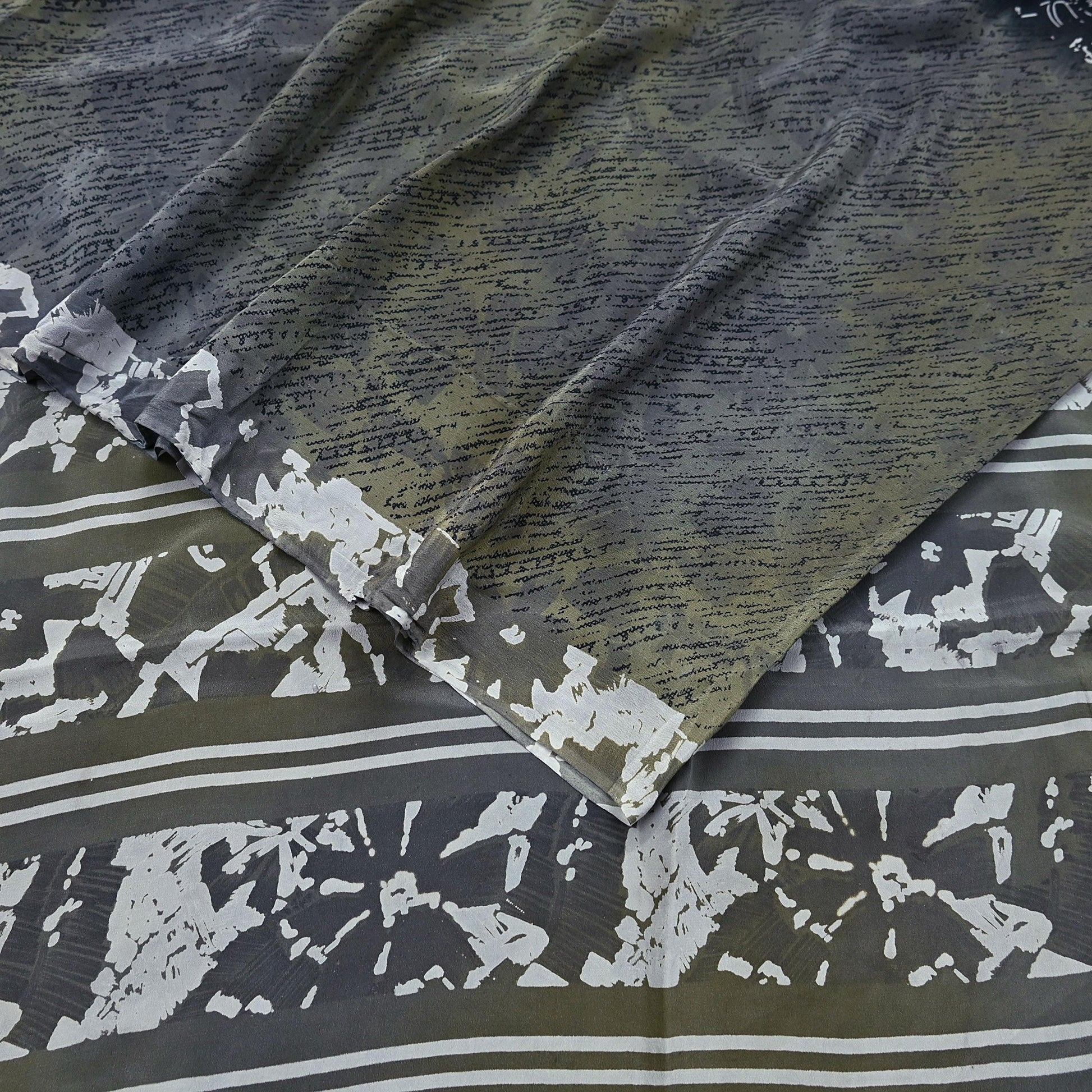 🔹This unique vintage Gray, Black & Green Colored Printed Pure Crepe Silk Saree Fabric.