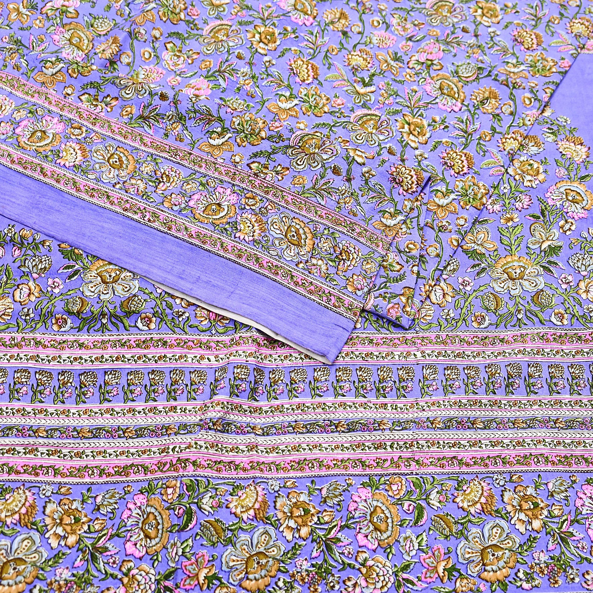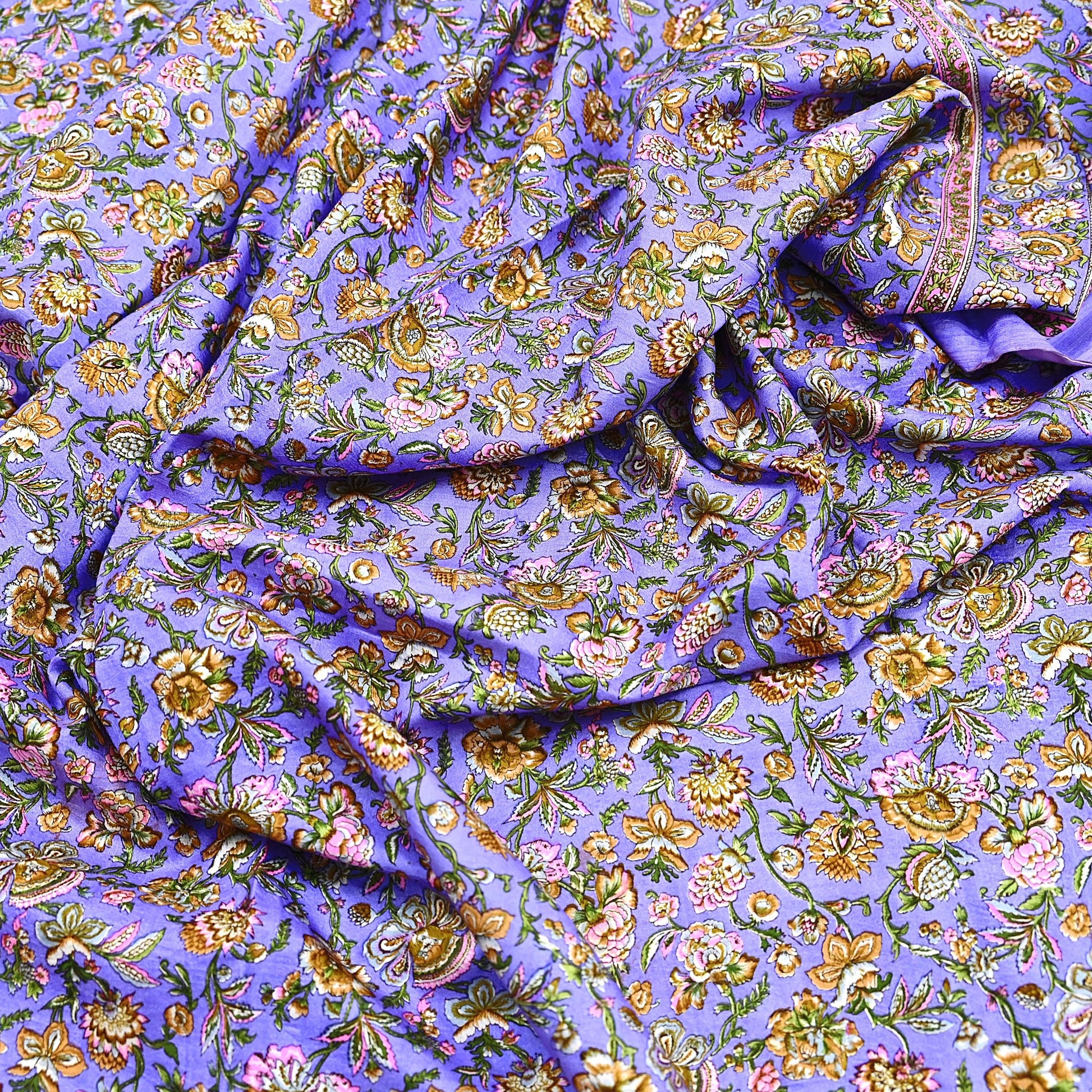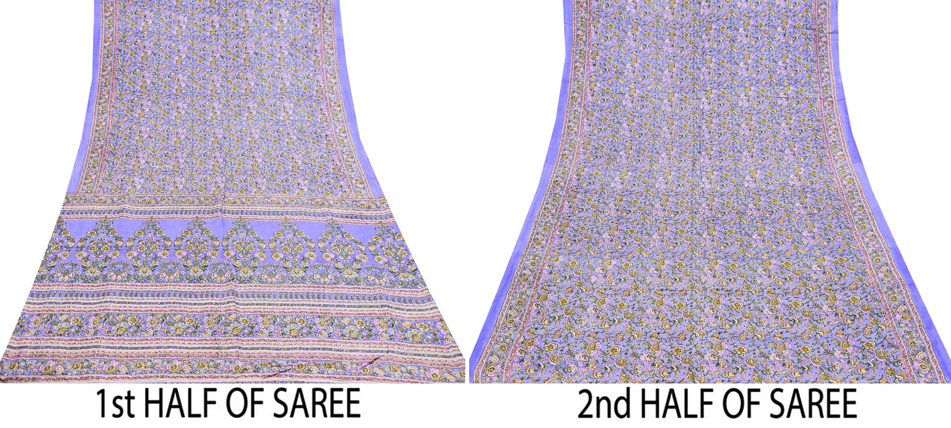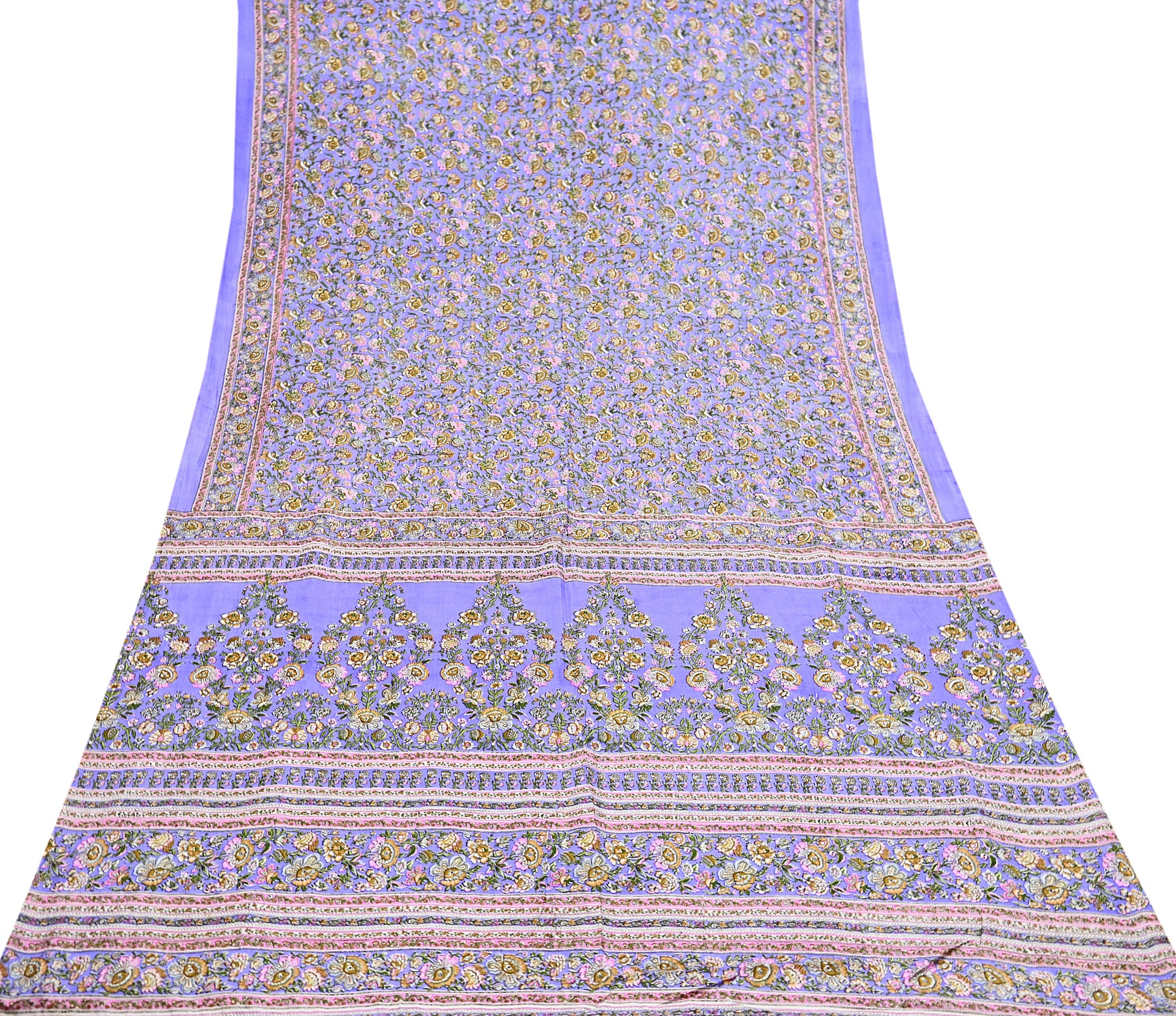 Indian Vintage Sari Purple 100% Pure Silk Printed Saree Craft Fabric 5yd Sewing Dress Making Soft Wrap Quilting Crafting Upcycle