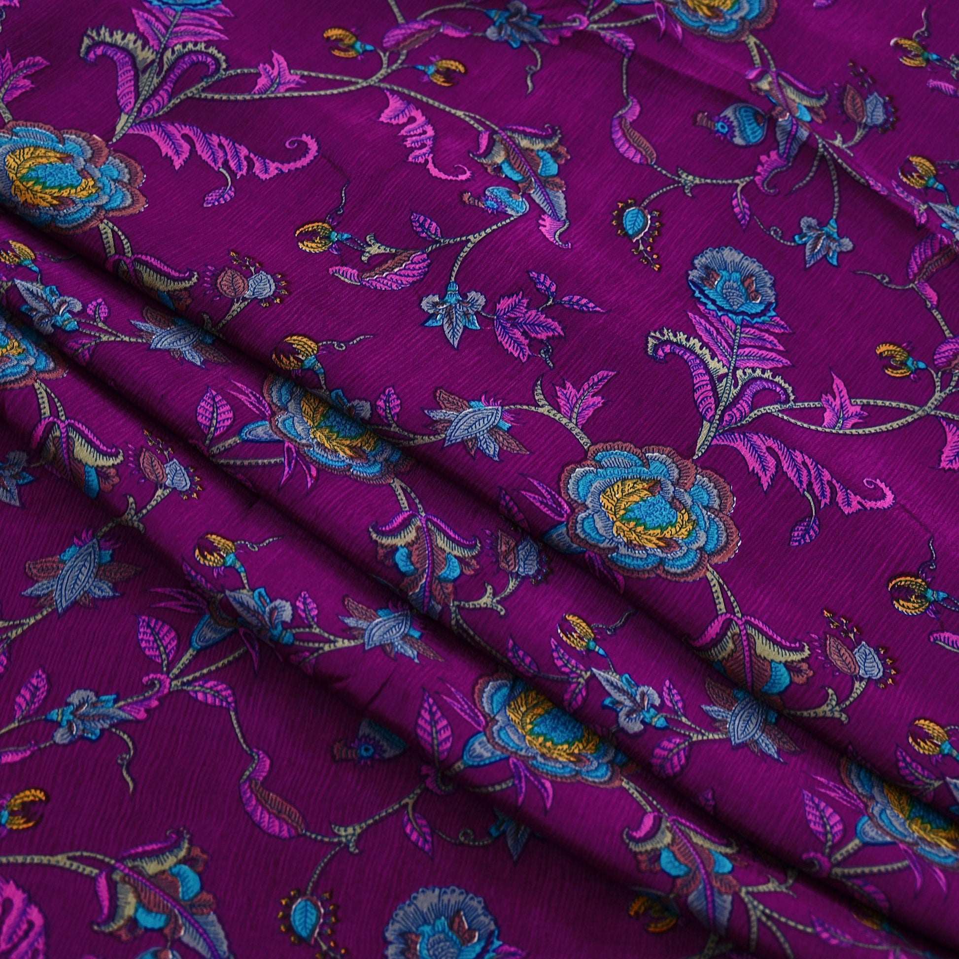 Nice Floral Design With Printed Work On Purple Color Base Fabric Is Really Enhancing The Beauty Of The Saree.