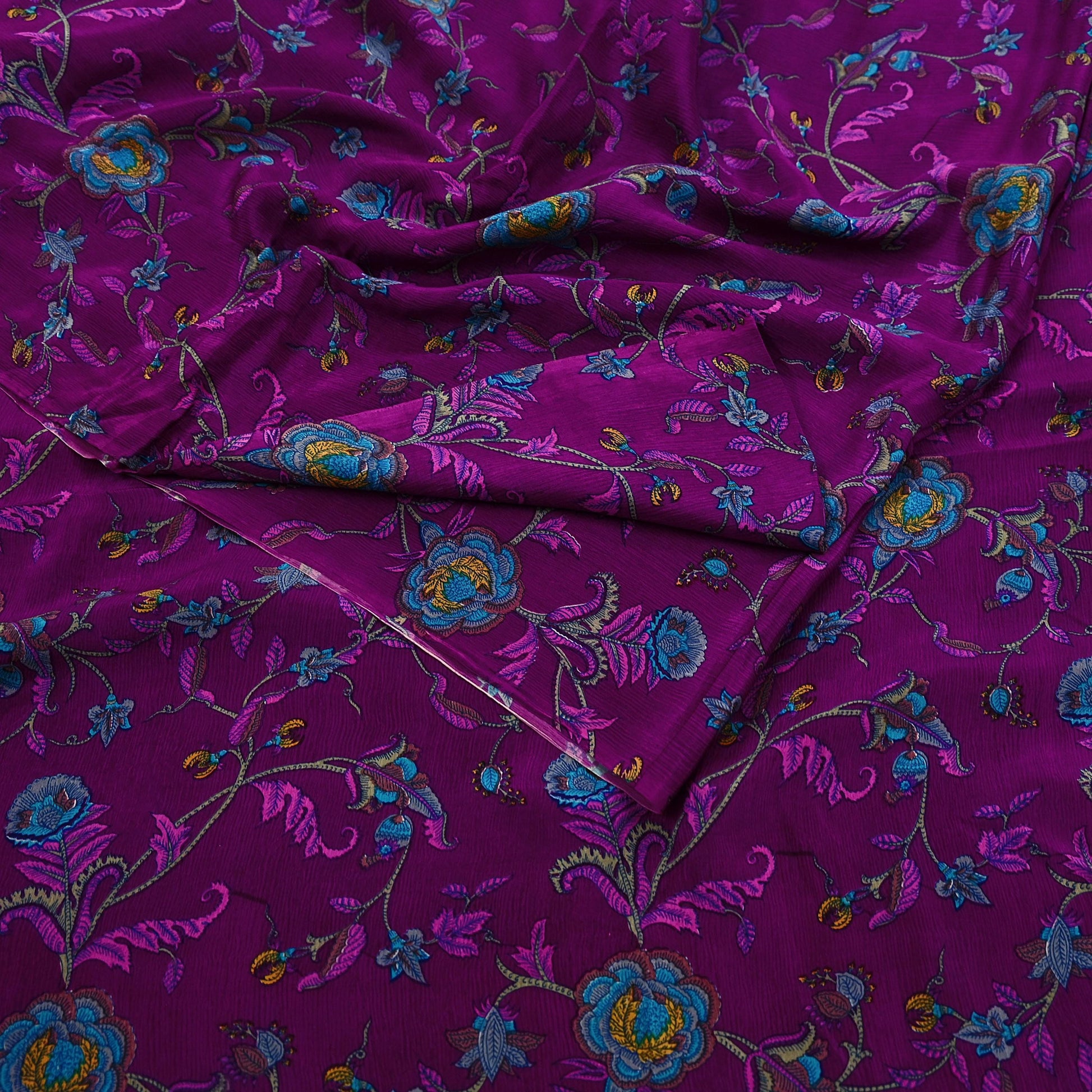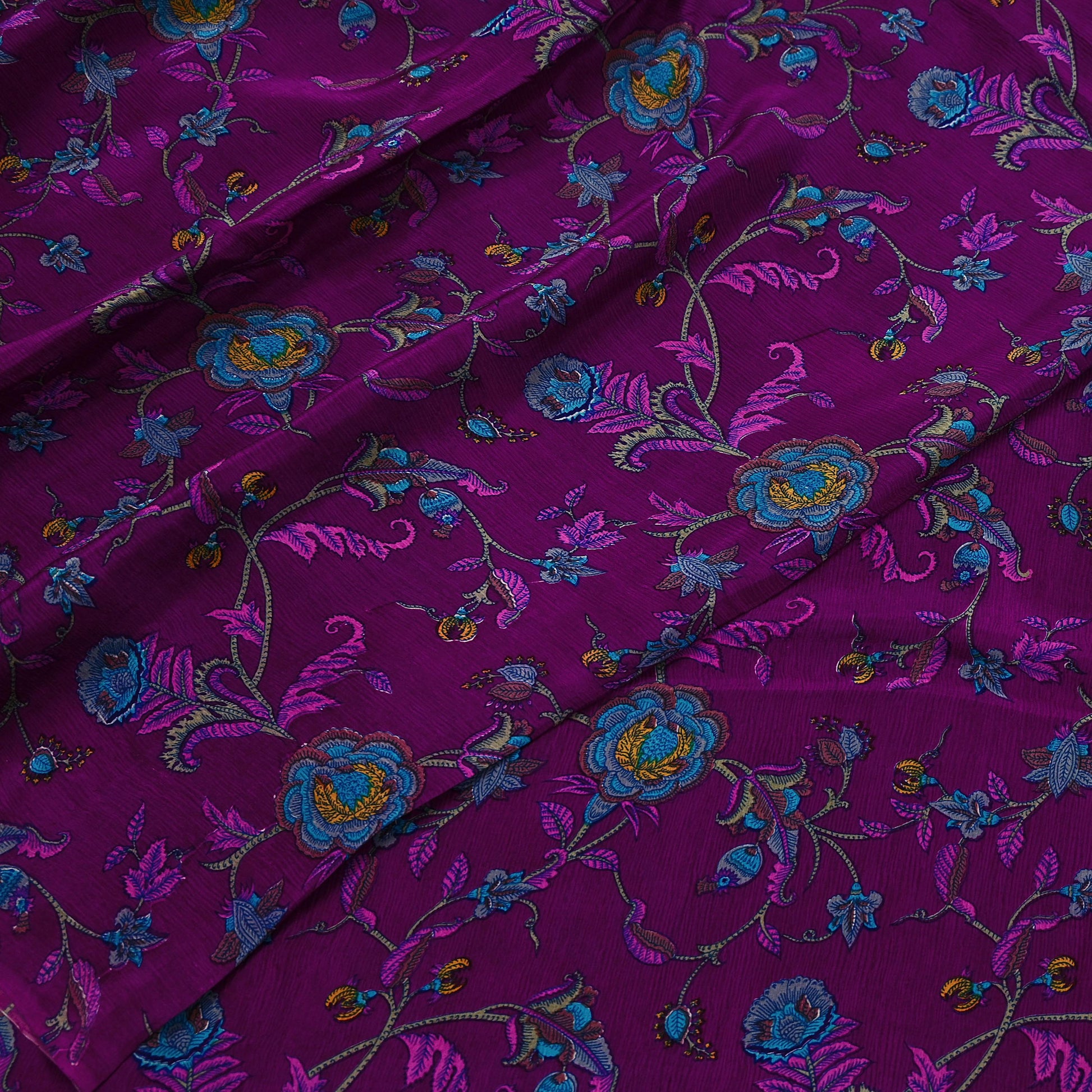 Indian Vintage Sari Purple 100% Pure Silk Printed Sarees 6yd Sewing Craft Fabric Dress Making Soft Wrap Floral Crafting Quilting Upcycle