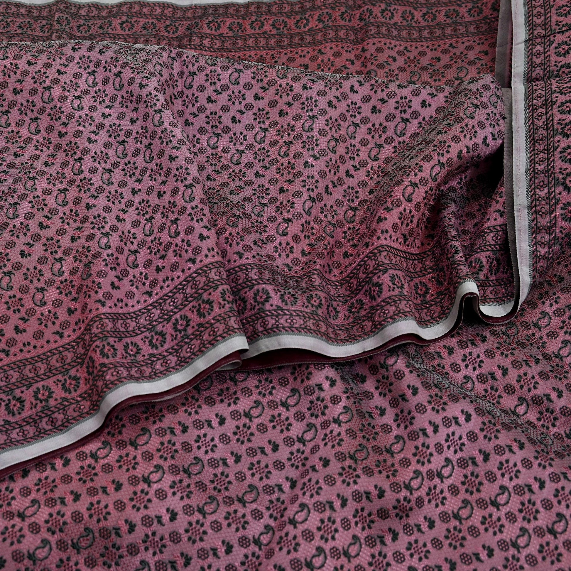 *The Pallu & Border Sari Features Floral Design Embellished With Pink & Black Woven Thread Work.