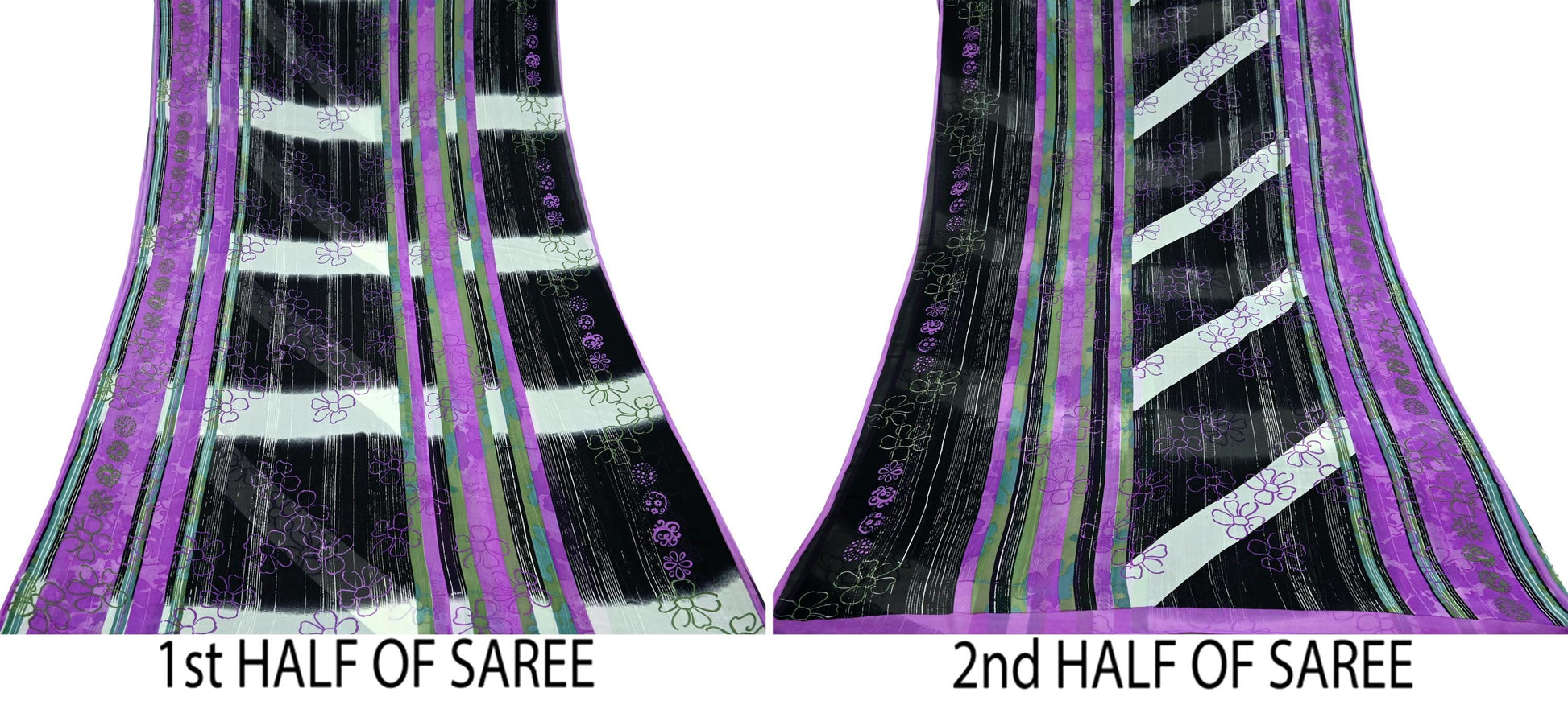 * Vintage Purple, White & Black Colored Pure Georgette Silk Printed Sarees.