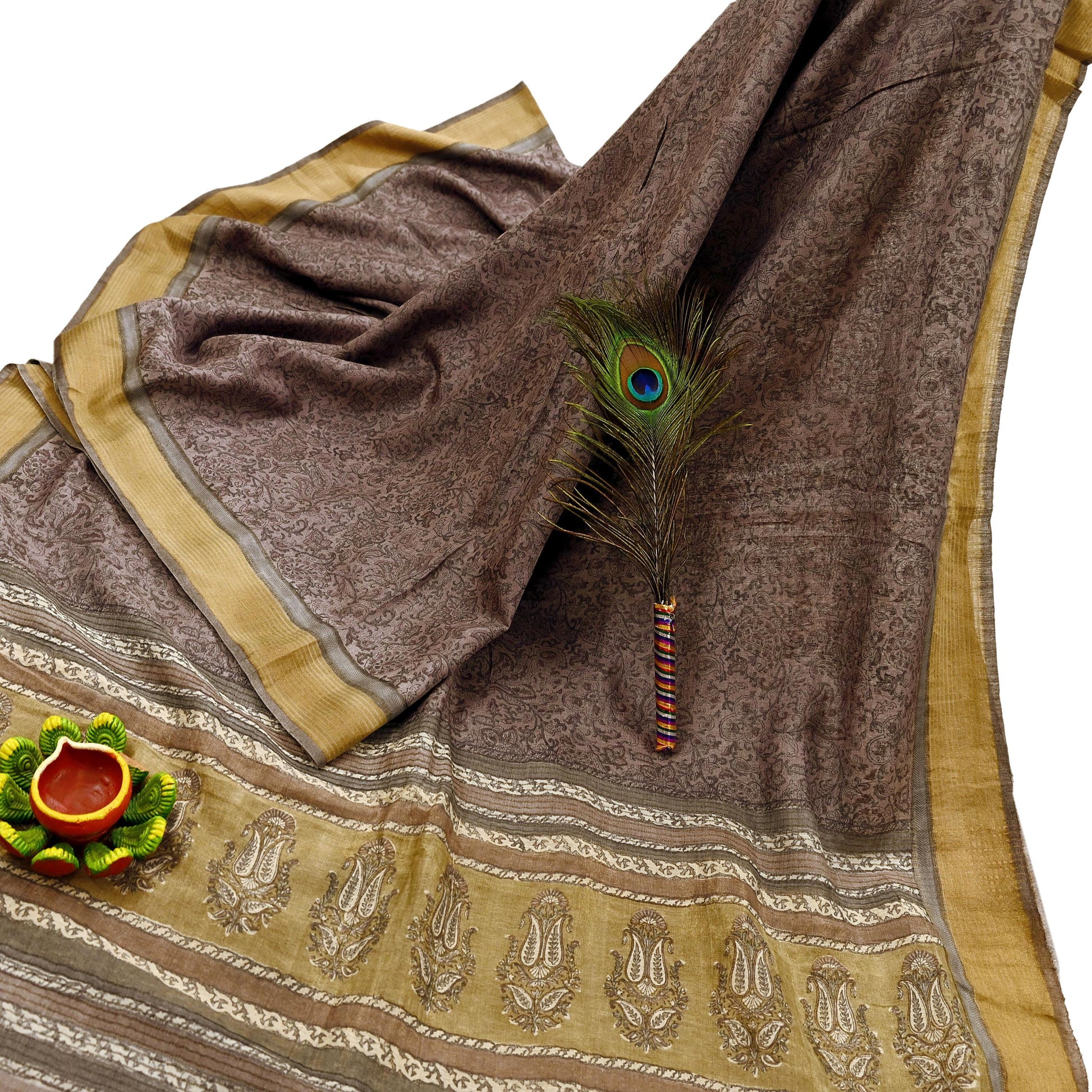 Pallu & Border Has Printed Stripes & Floral Pattern. With Golden zari Woven Border Work.
