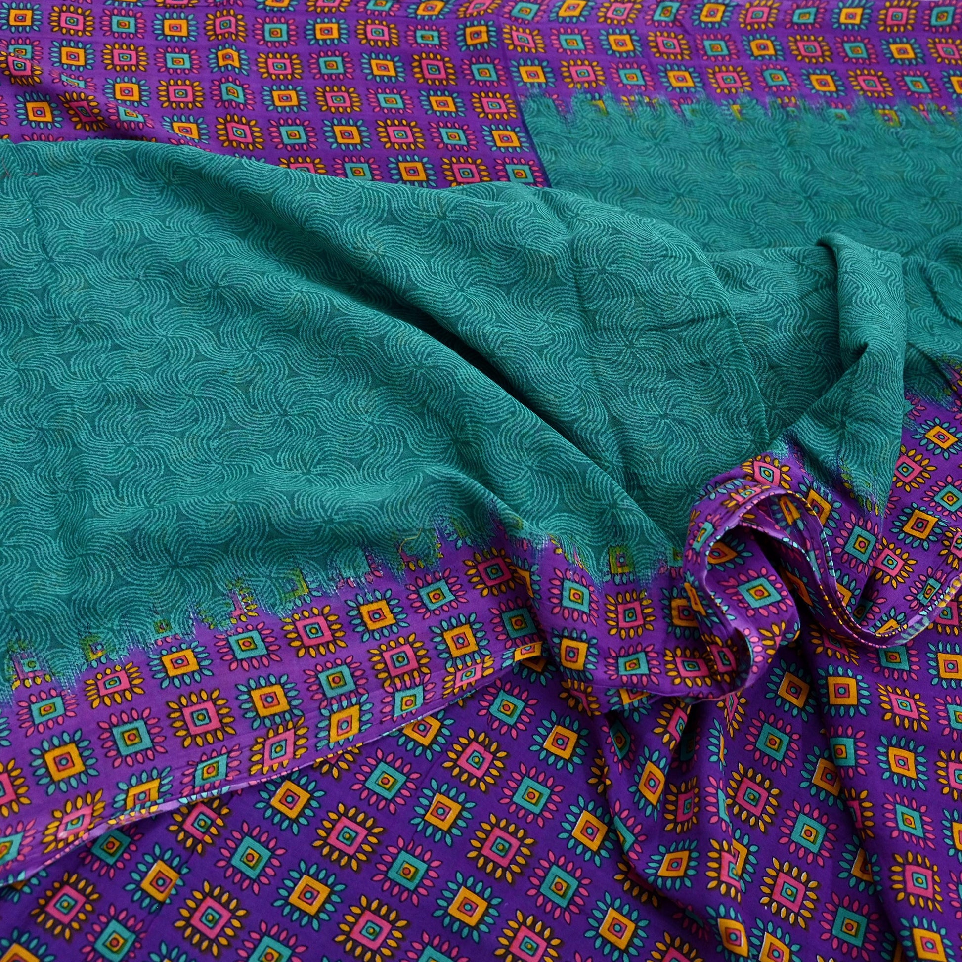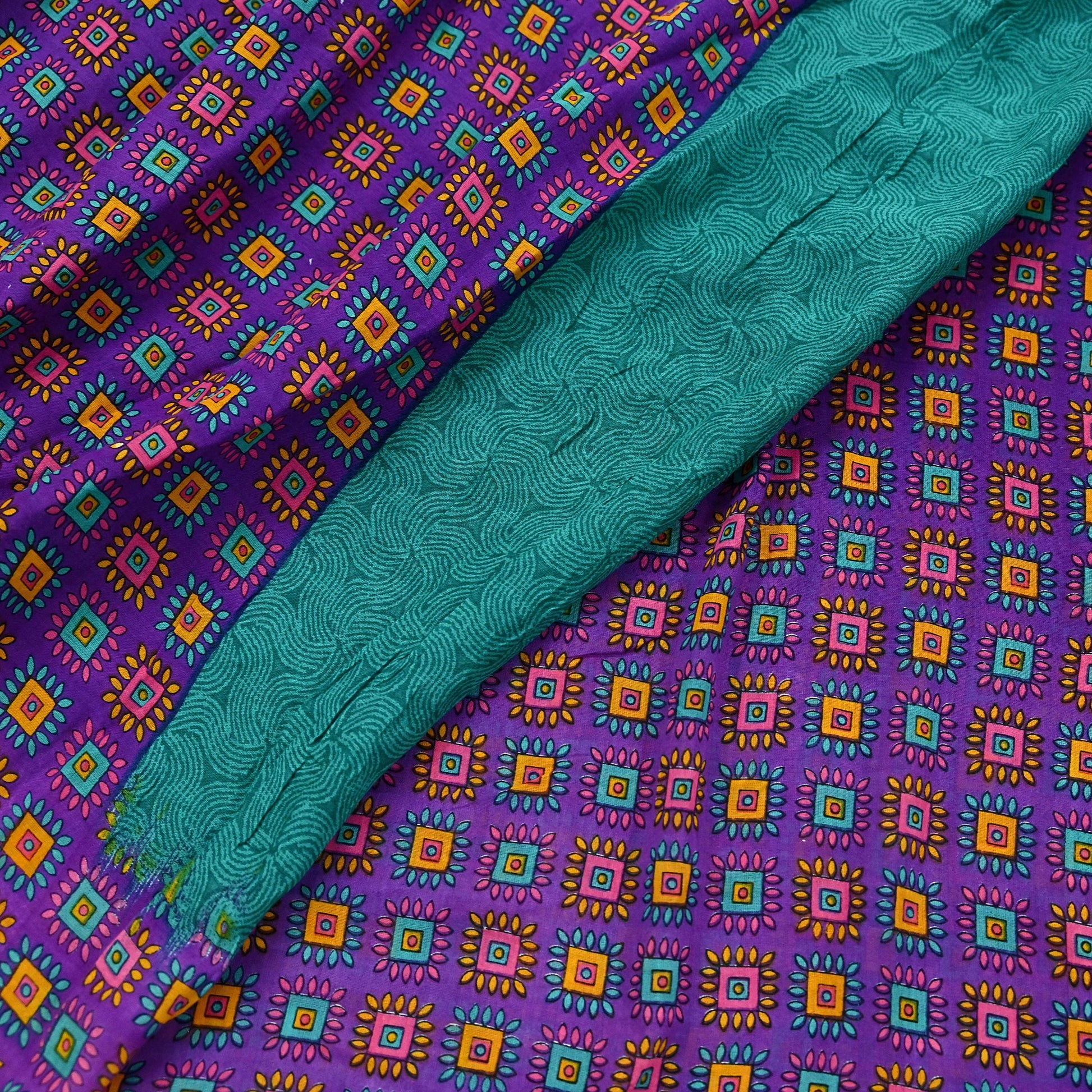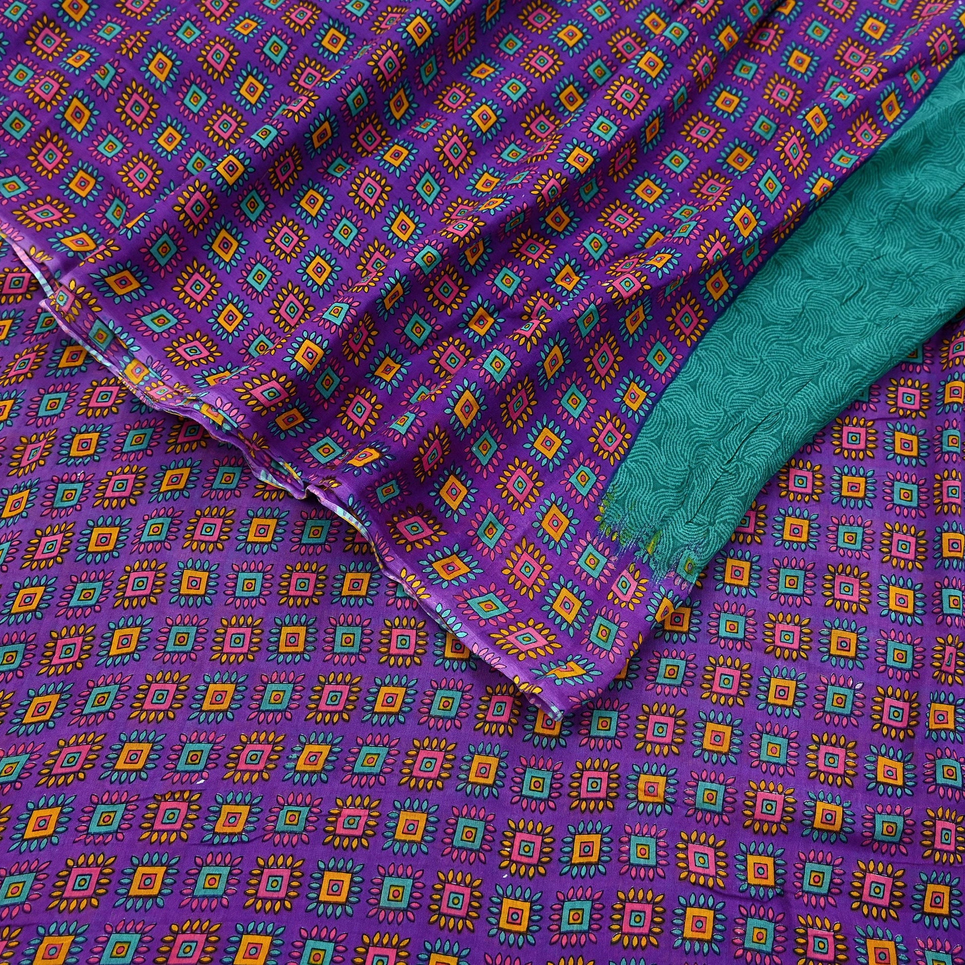 Indian Vintage Sari Purple & Green Pure Cotton Printed Saree 5Yd Craft Fabric Sewing Sarong Wrap Boho Floral Quilting crafting dressmaking