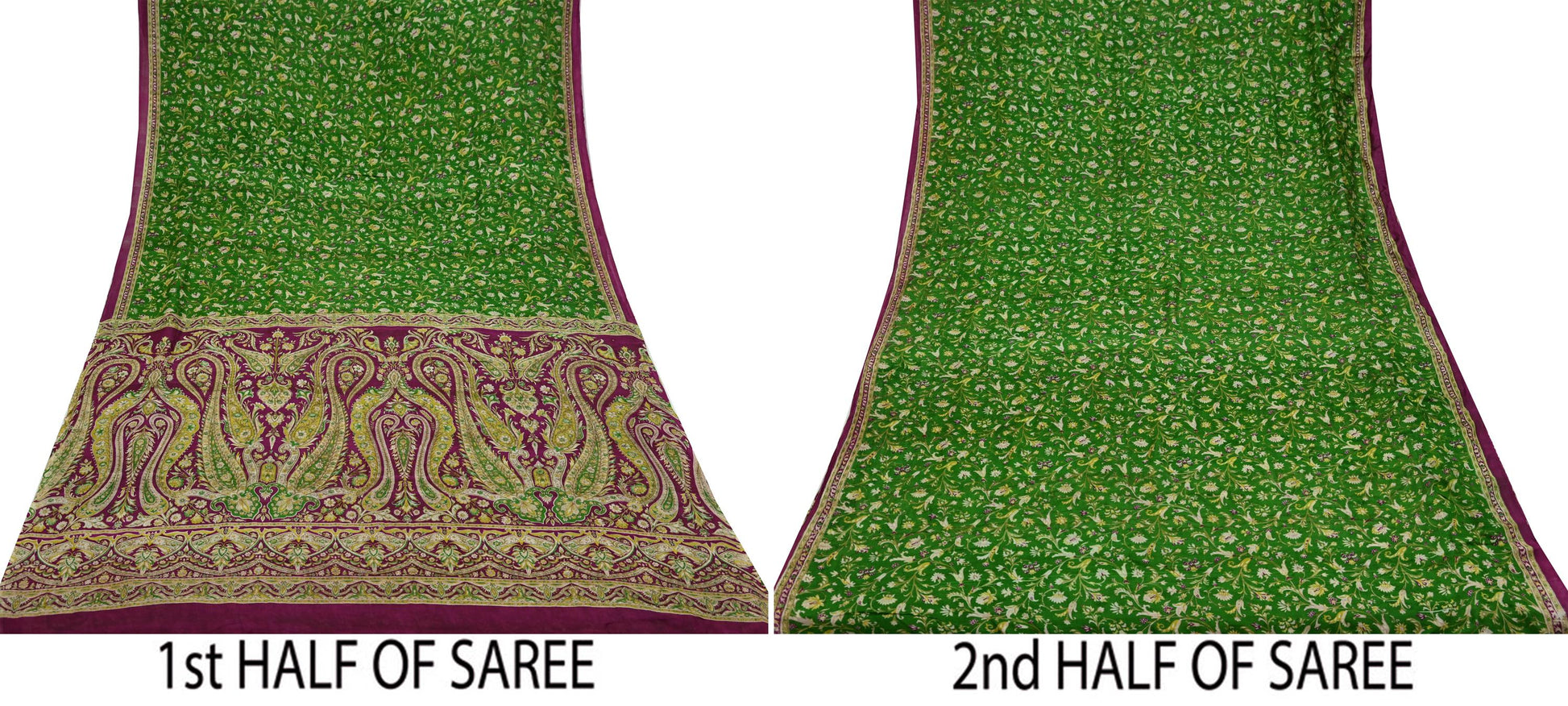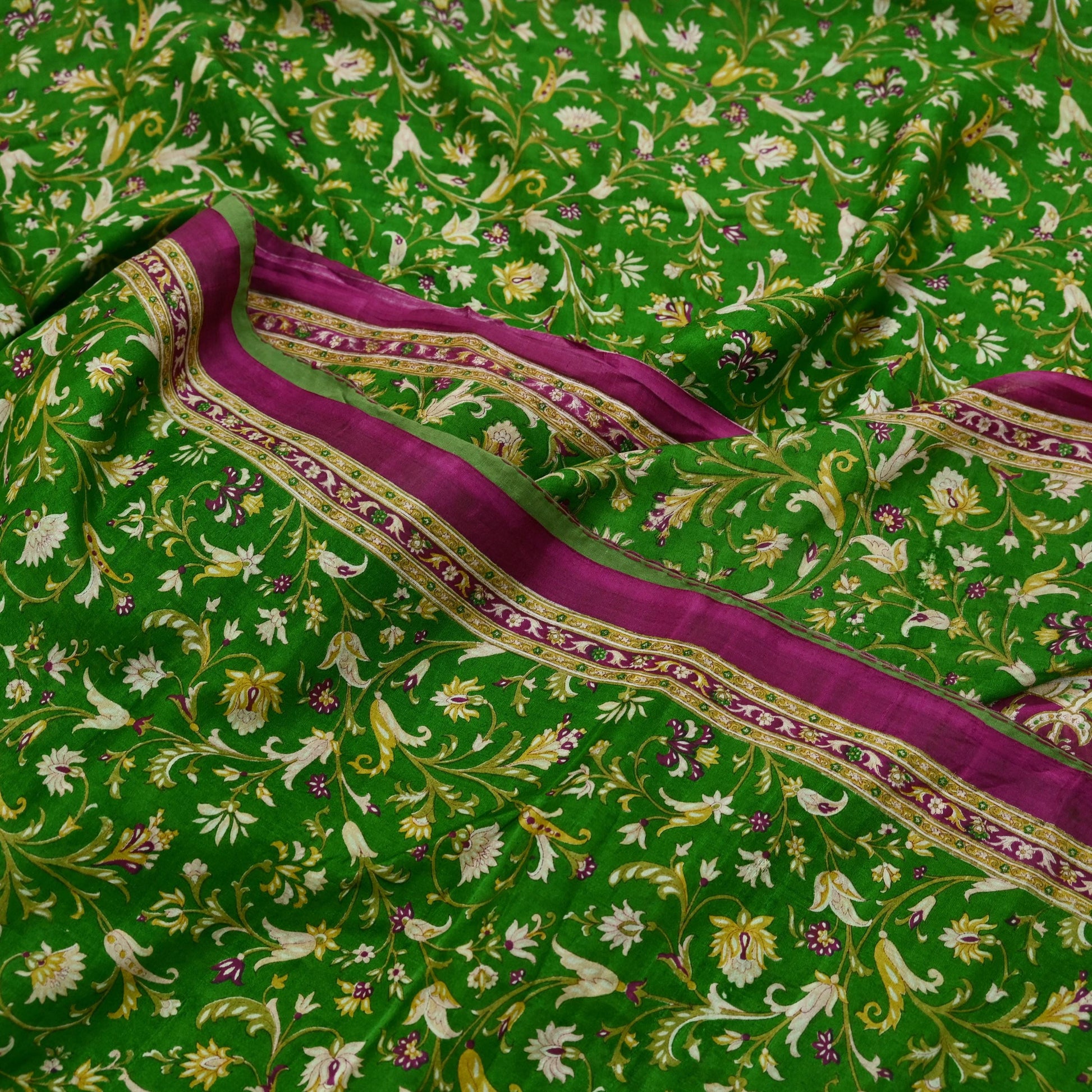 Indian Vintage Sari Purple & Green Pure Silk Printed Saree 6yd Sewing Quilting Craft Fabric Dress Making/ Designing Soft Upcycle Used Floral