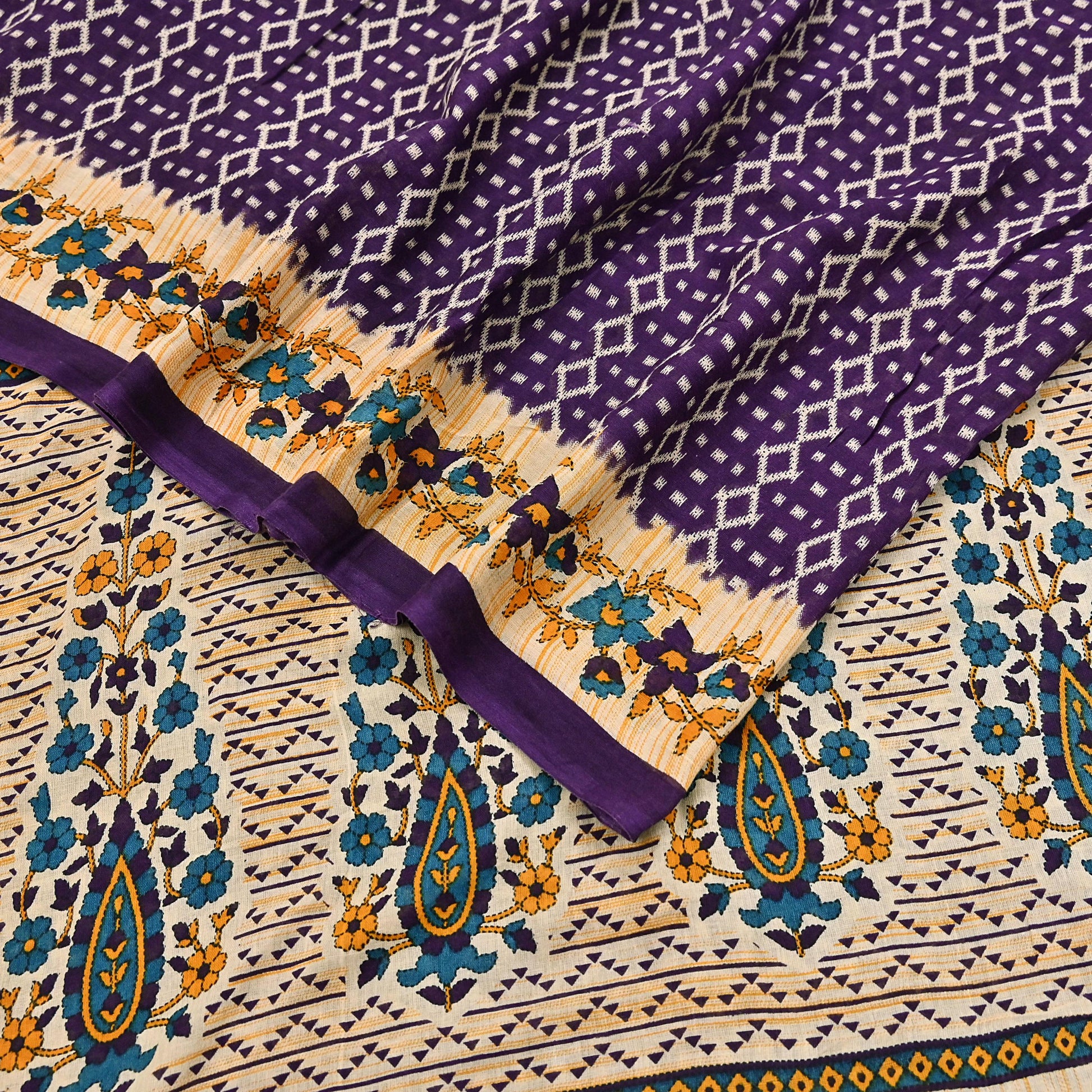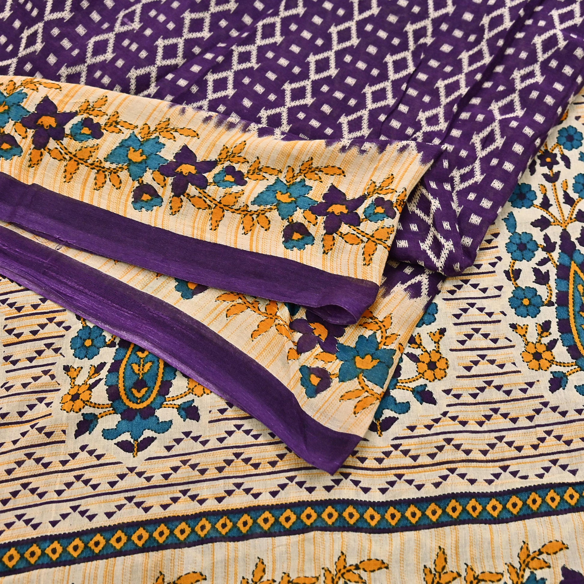 Indian Vintage Sari Purple & Ivory Pure Cotton Printed Saree 5Yd Craft Fabric Sewing Sarong Wrap Boho Floral Quilting crafting dressmaking