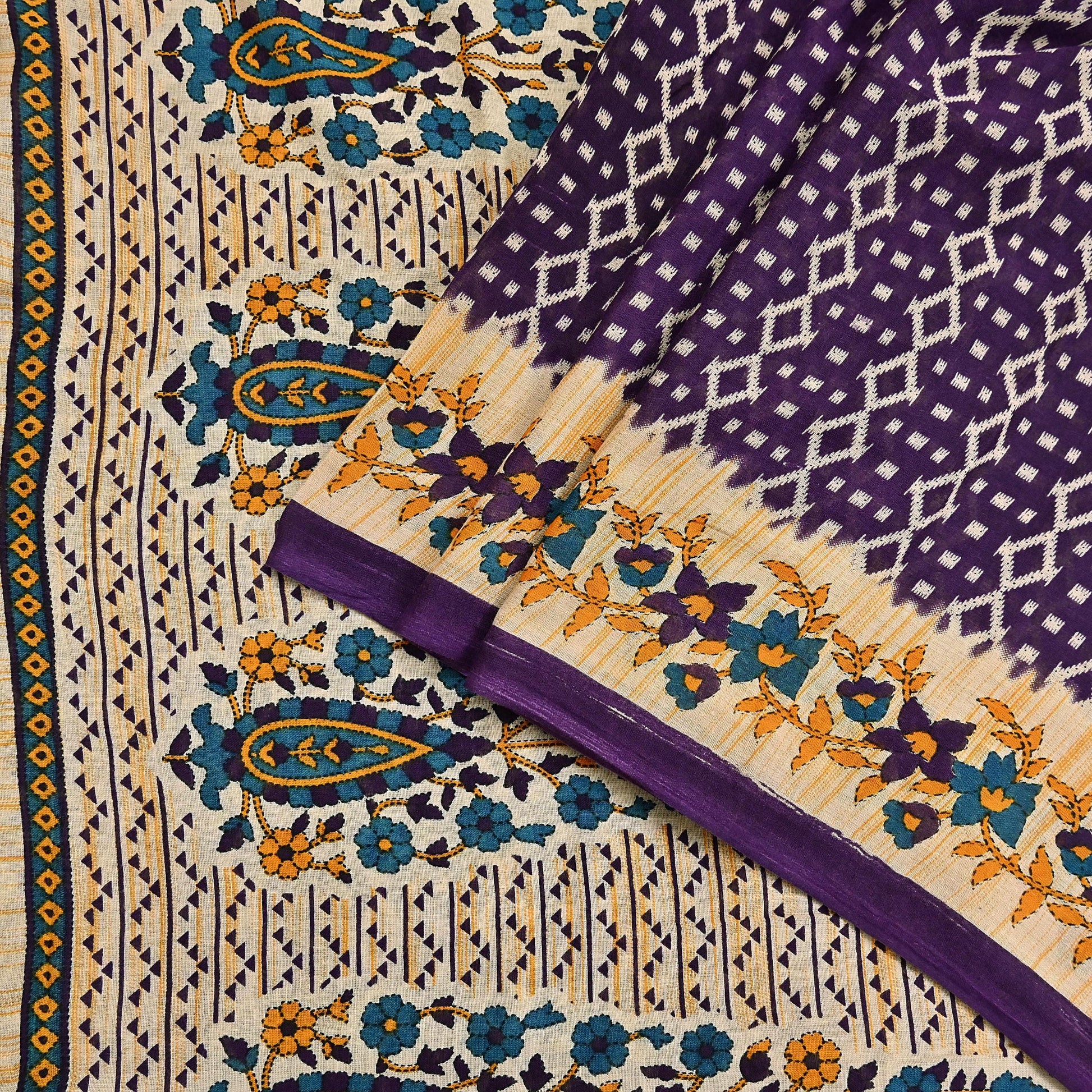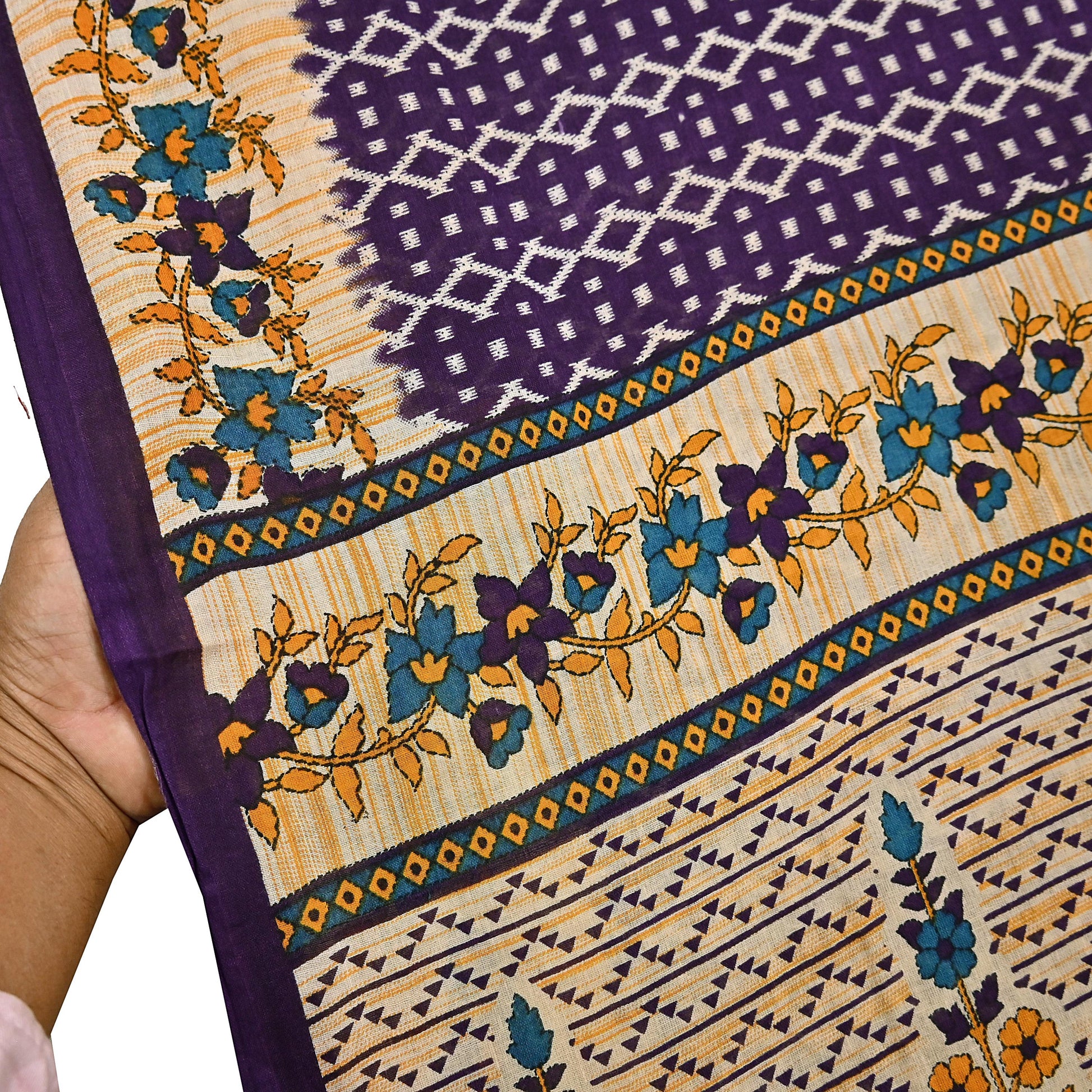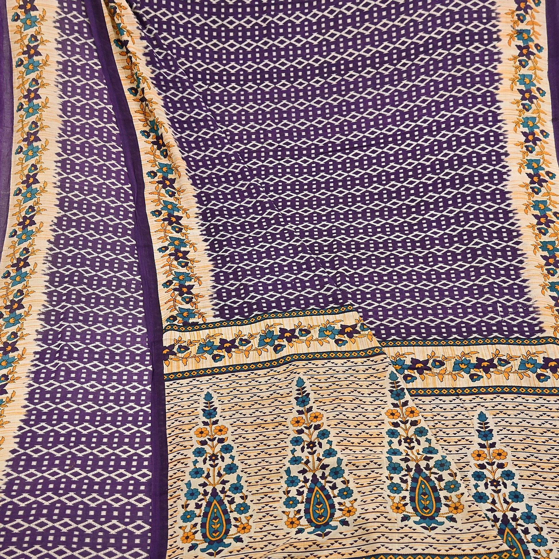 *Beautiful Purple Colored Printed Saree Pure Cotton Sari.