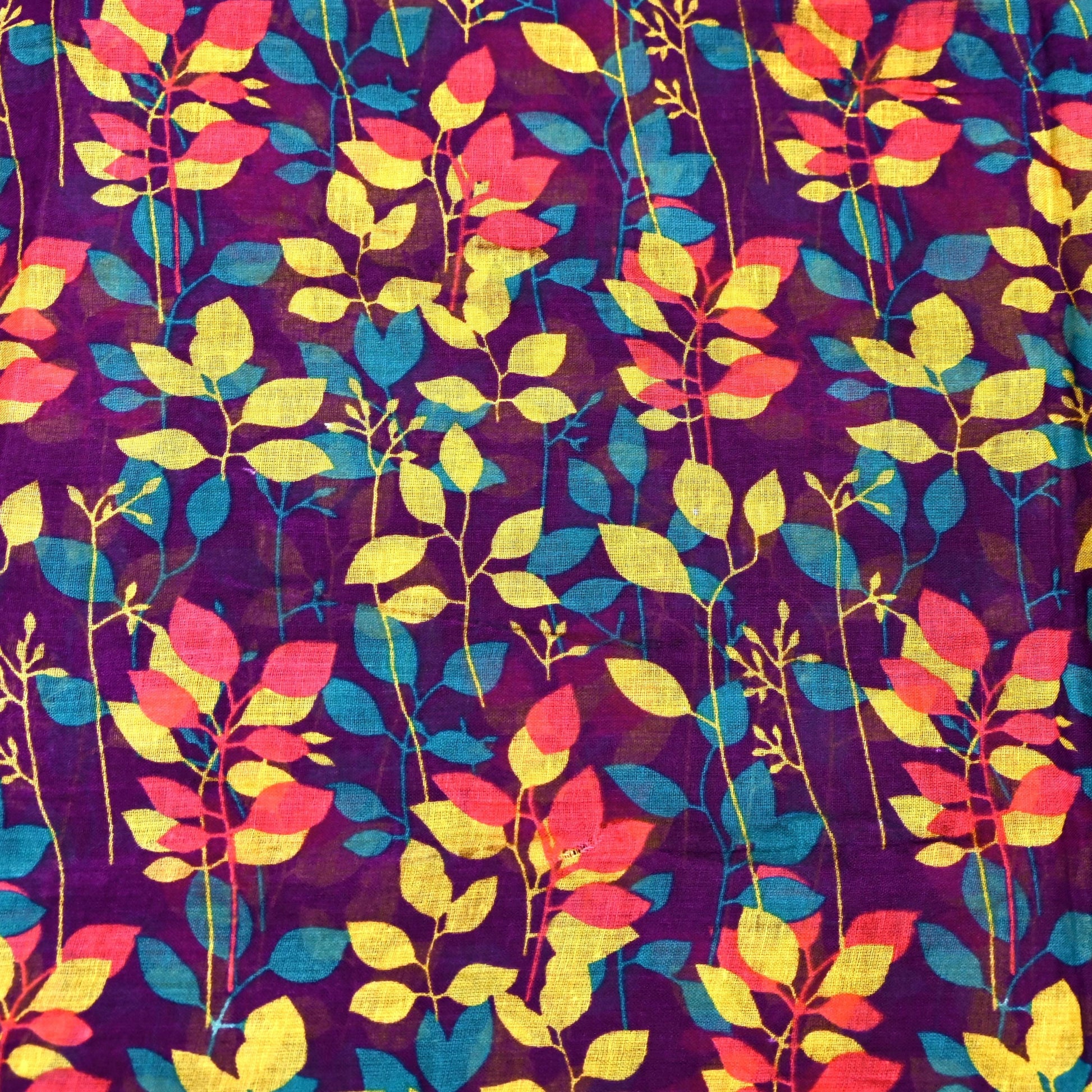 *Beautiful Purple & Saffron Colored 100% Pure Cotton Printed Sari.