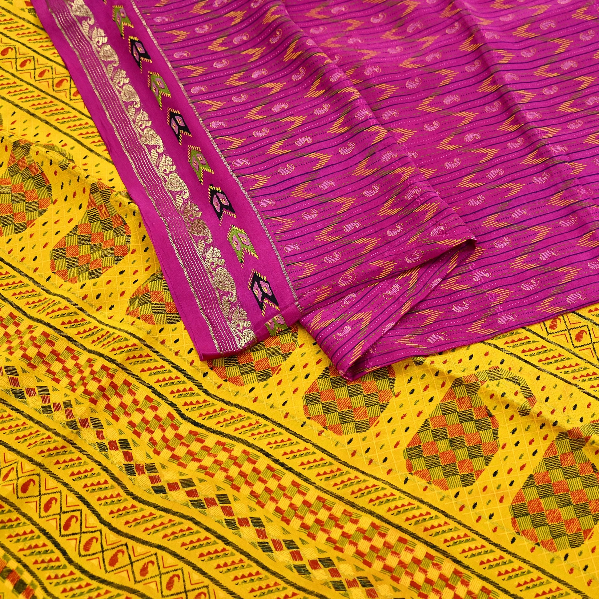 *Vintage Purple & Yellow Colored Printed Pure Silk Sarees.