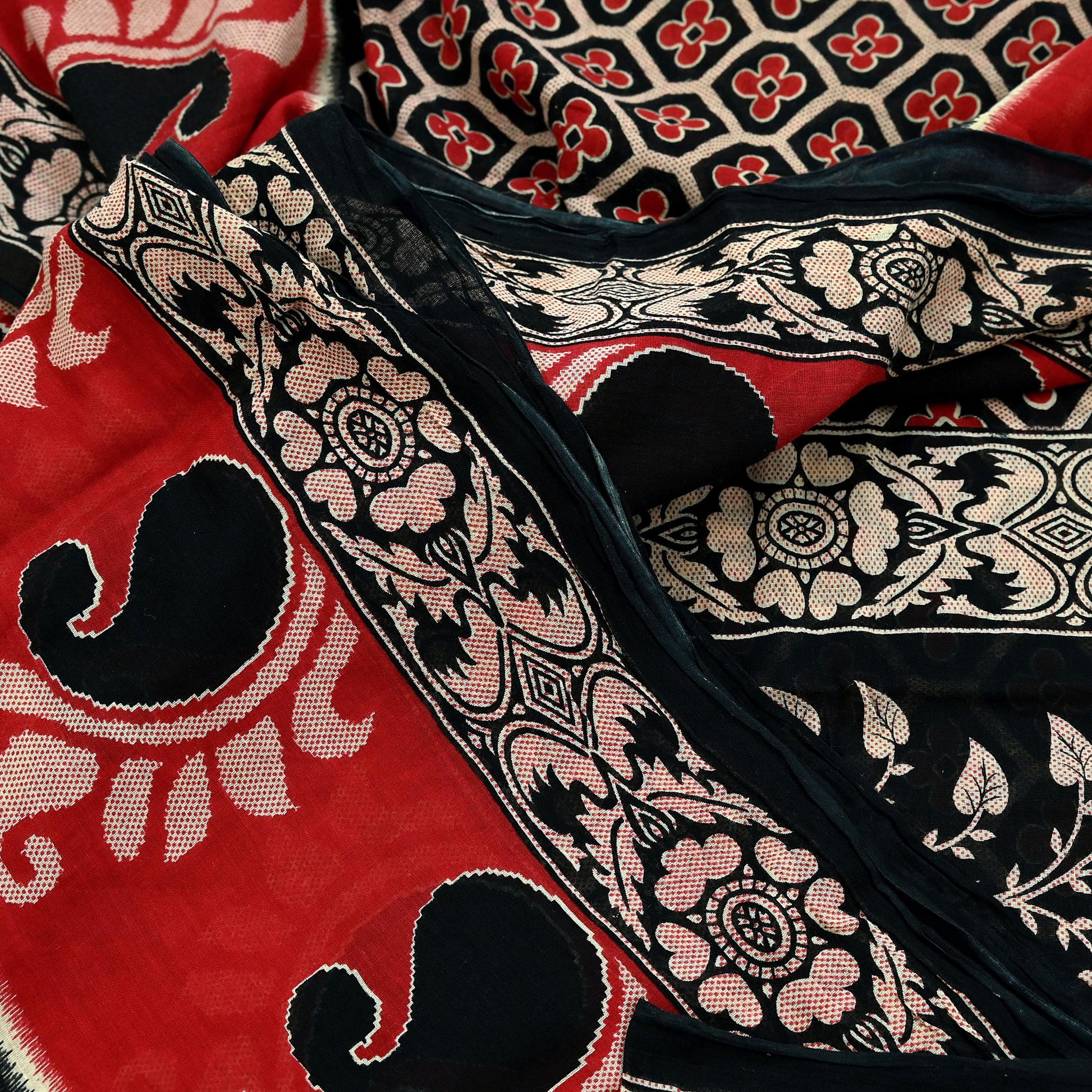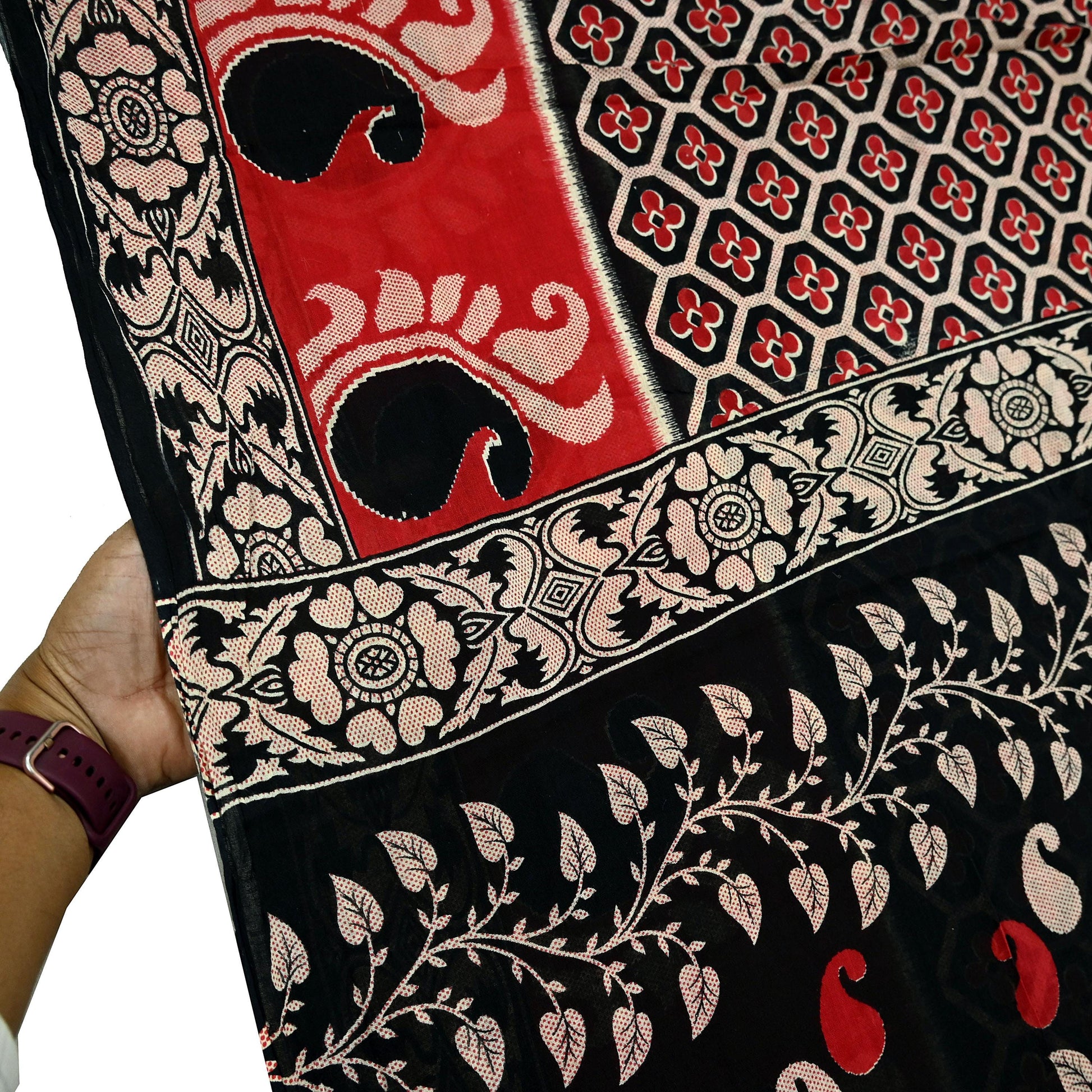 *Beautiful Red & Black Colored Printed Pure Cotton Saree.