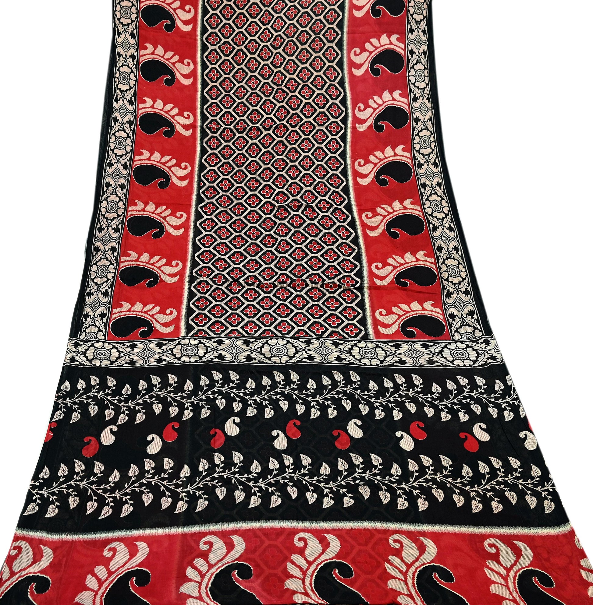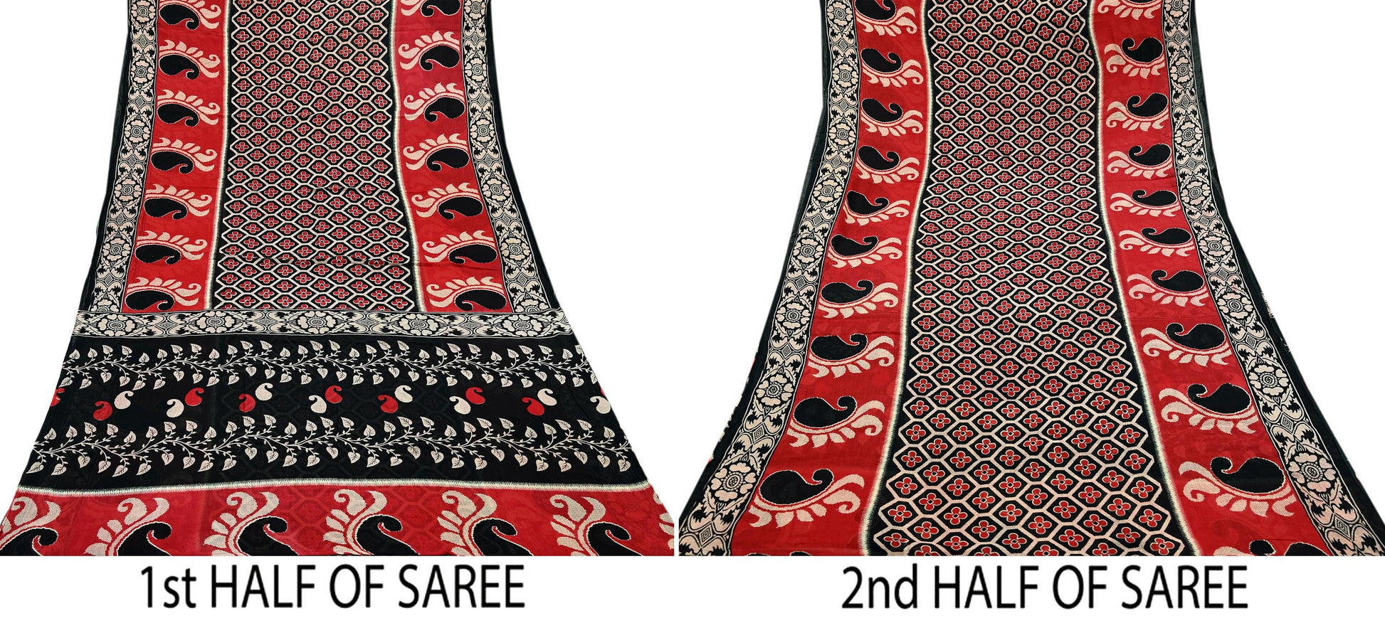 Indian Vintage Sari Red & Black Printed 100% Pure Cotton Sarees Craft Fabric 5Yard Sewing Sarong Wrap Boho Floral Dress making Quilting Soft