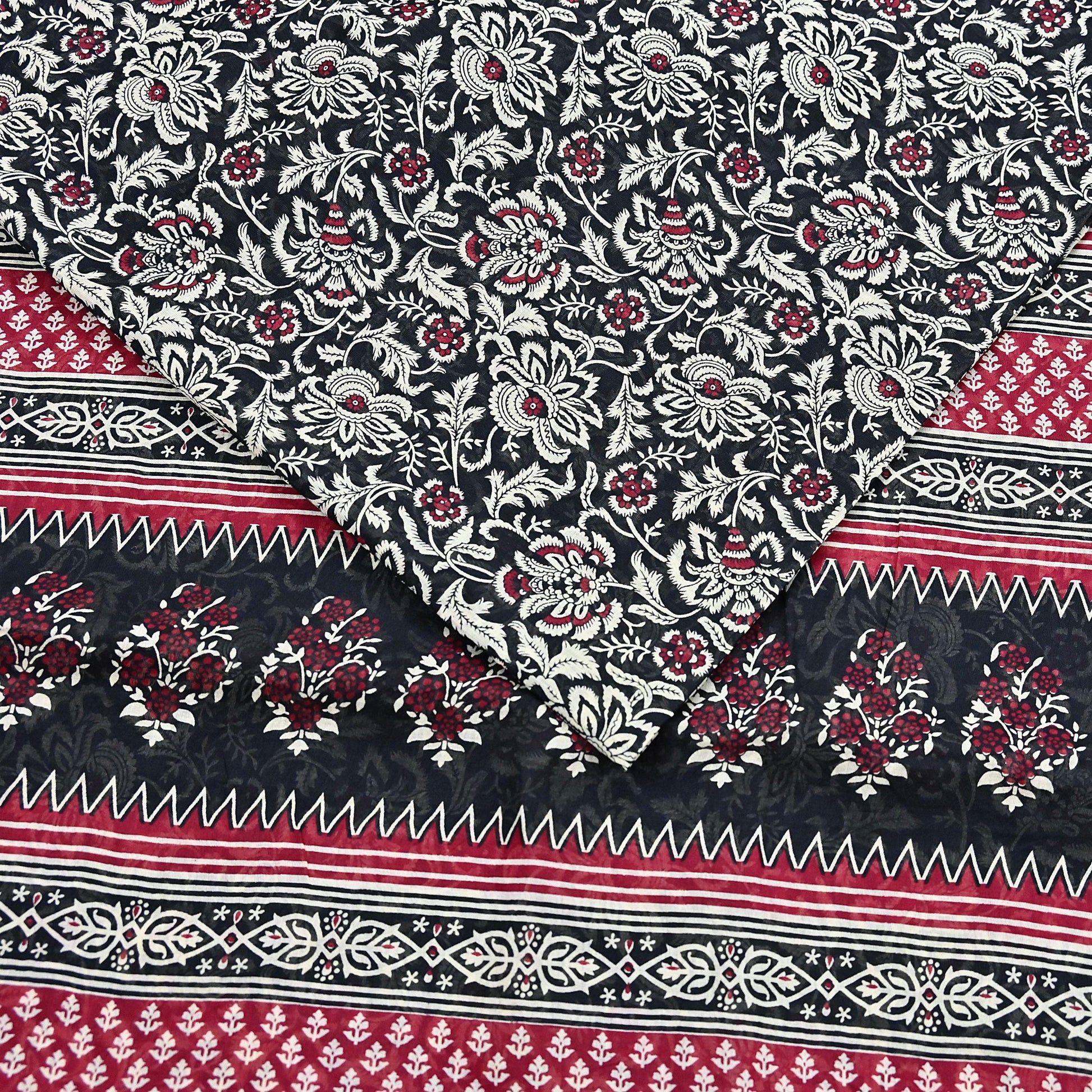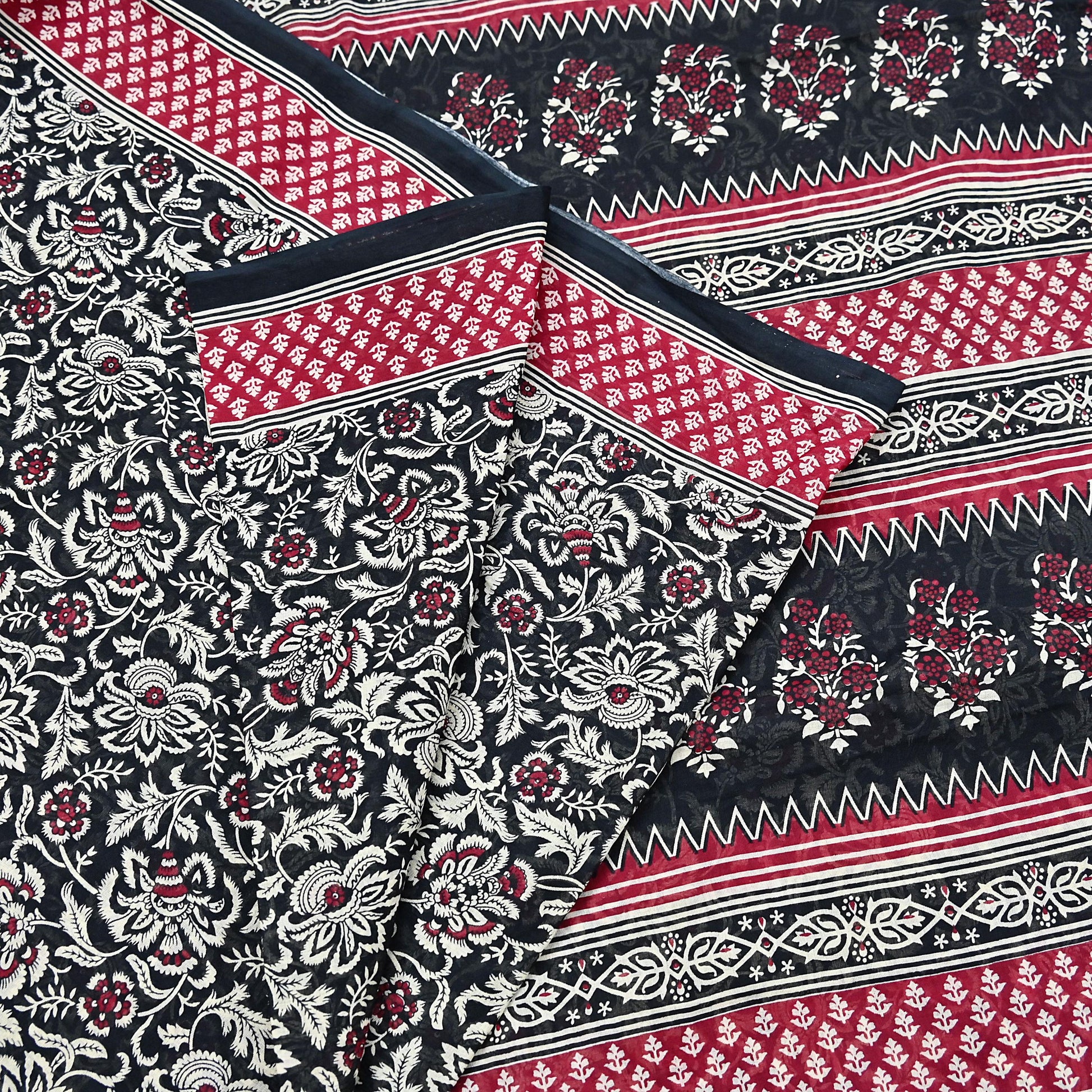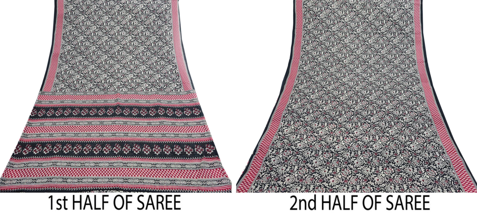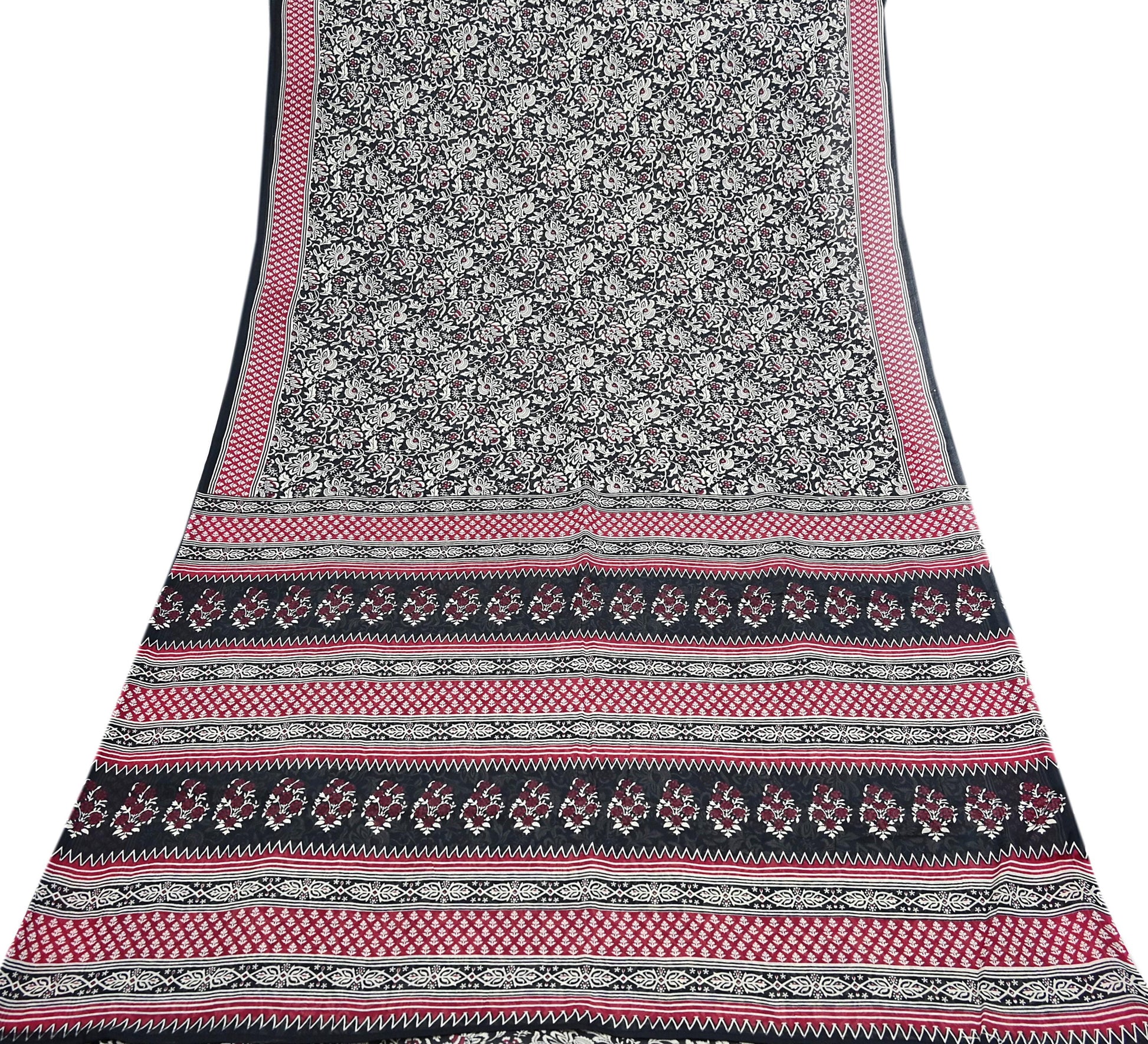 Indian Vintage Sari Red & Black Printed 100% Pure Cotton Sarees Craft Fabric 5Yard Sewing Sarong Wrap Boho Floral Dress making Quilting Soft