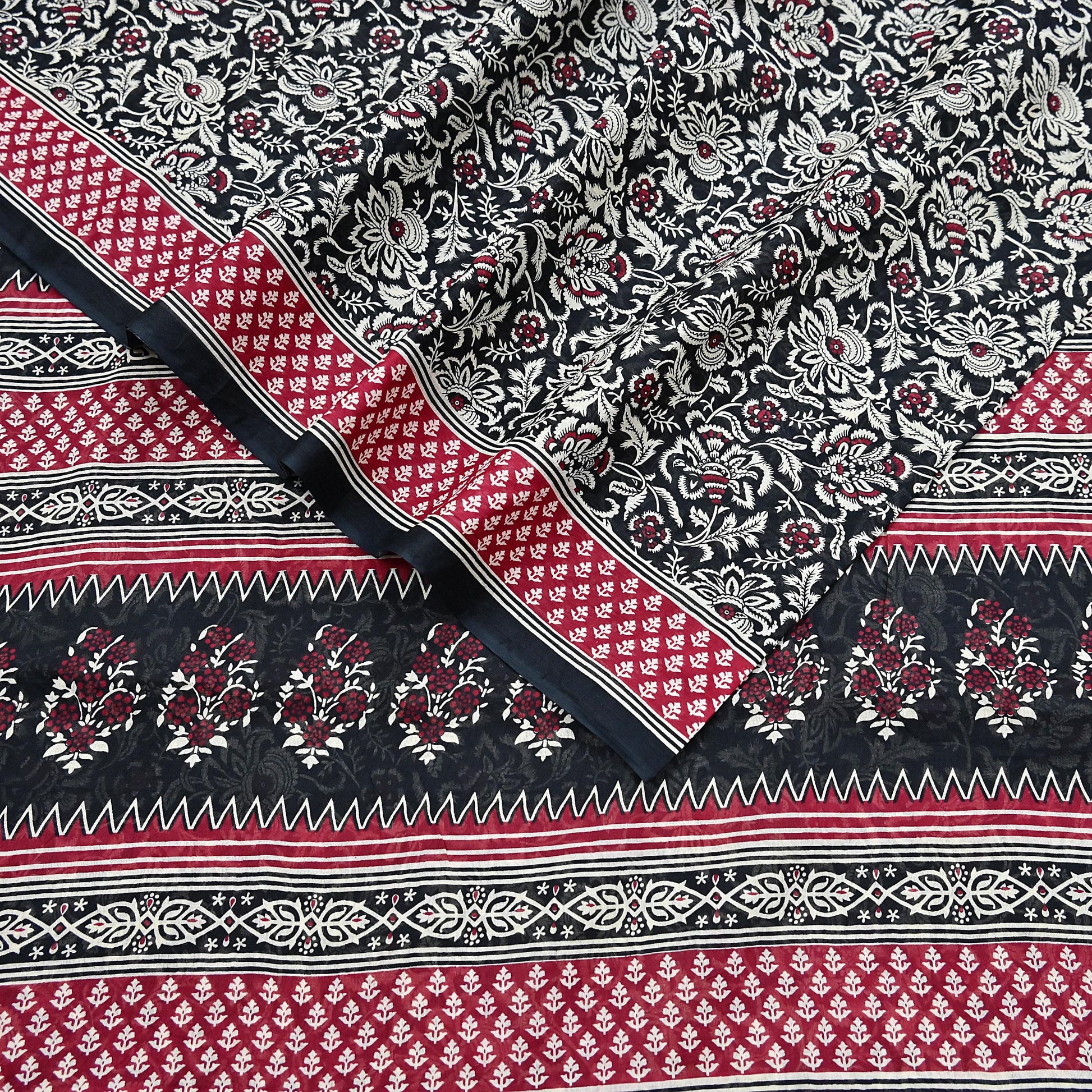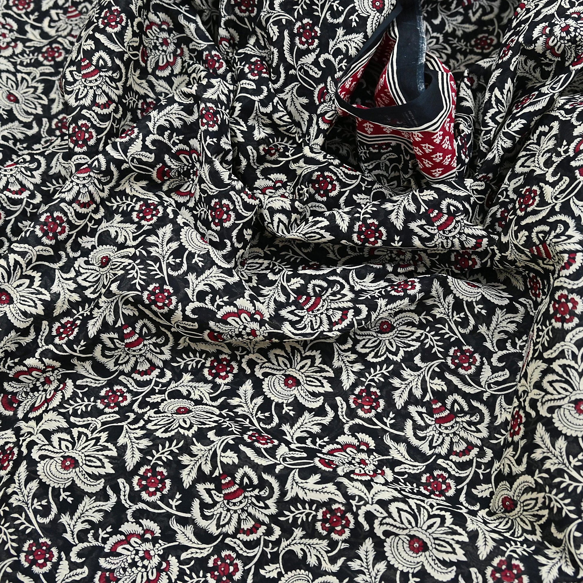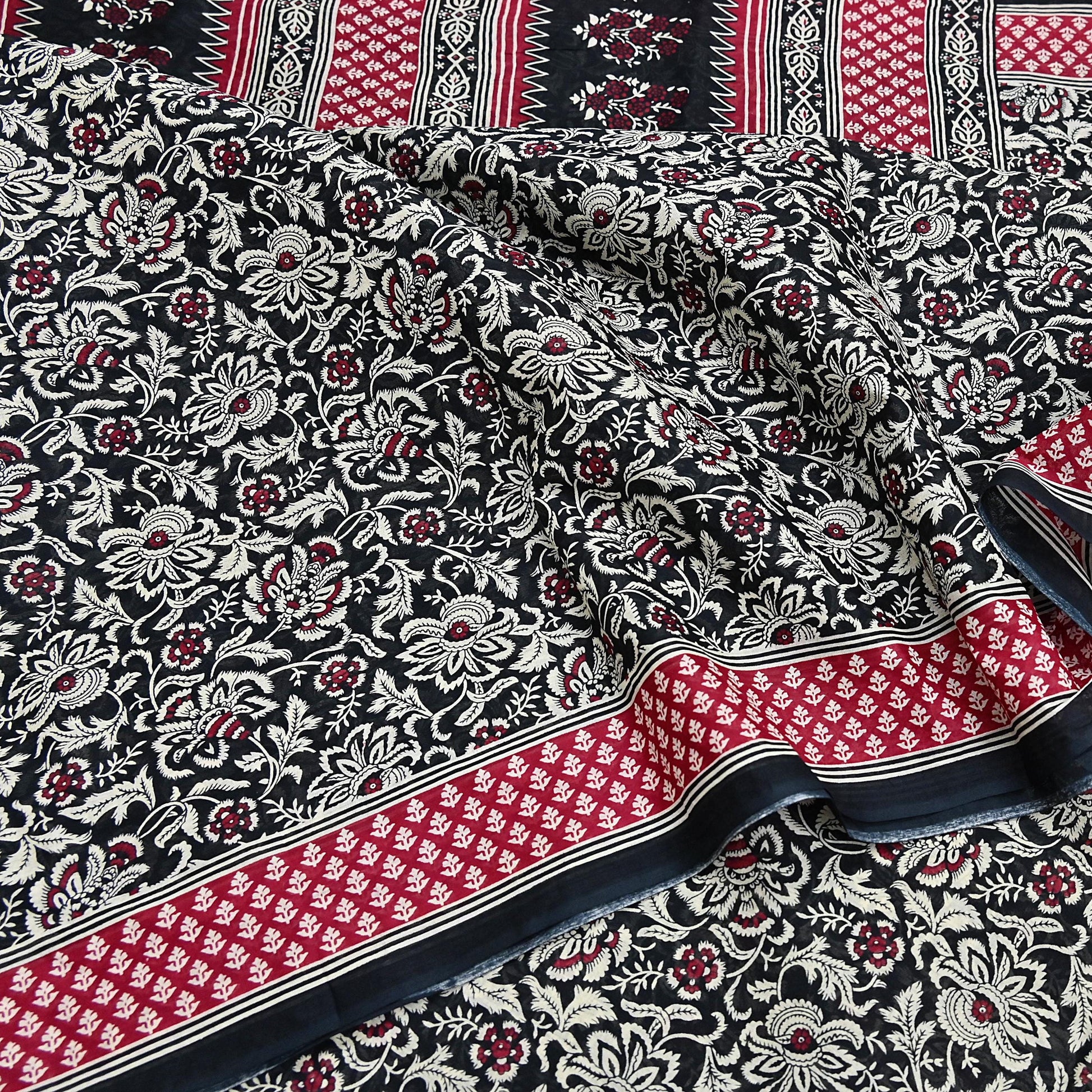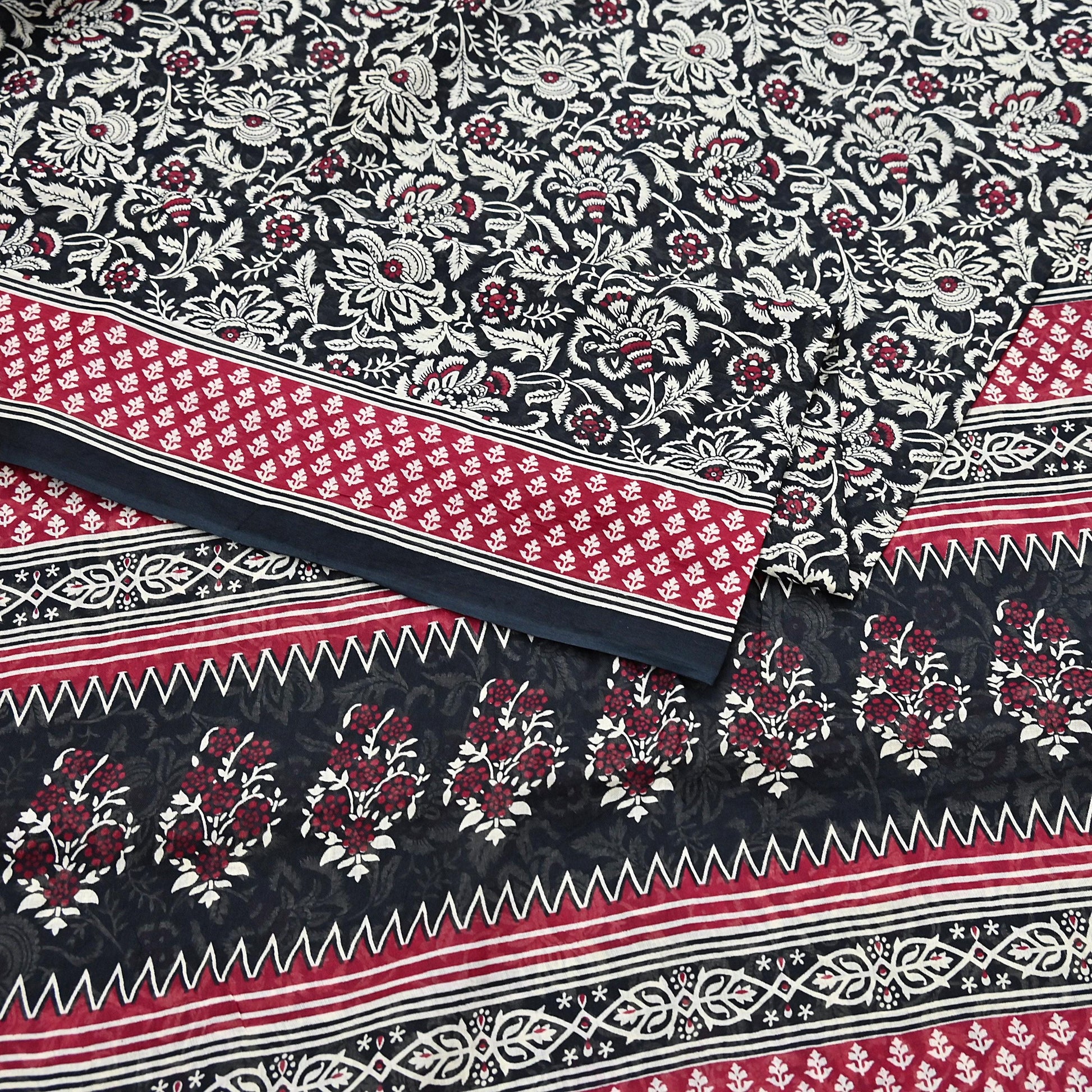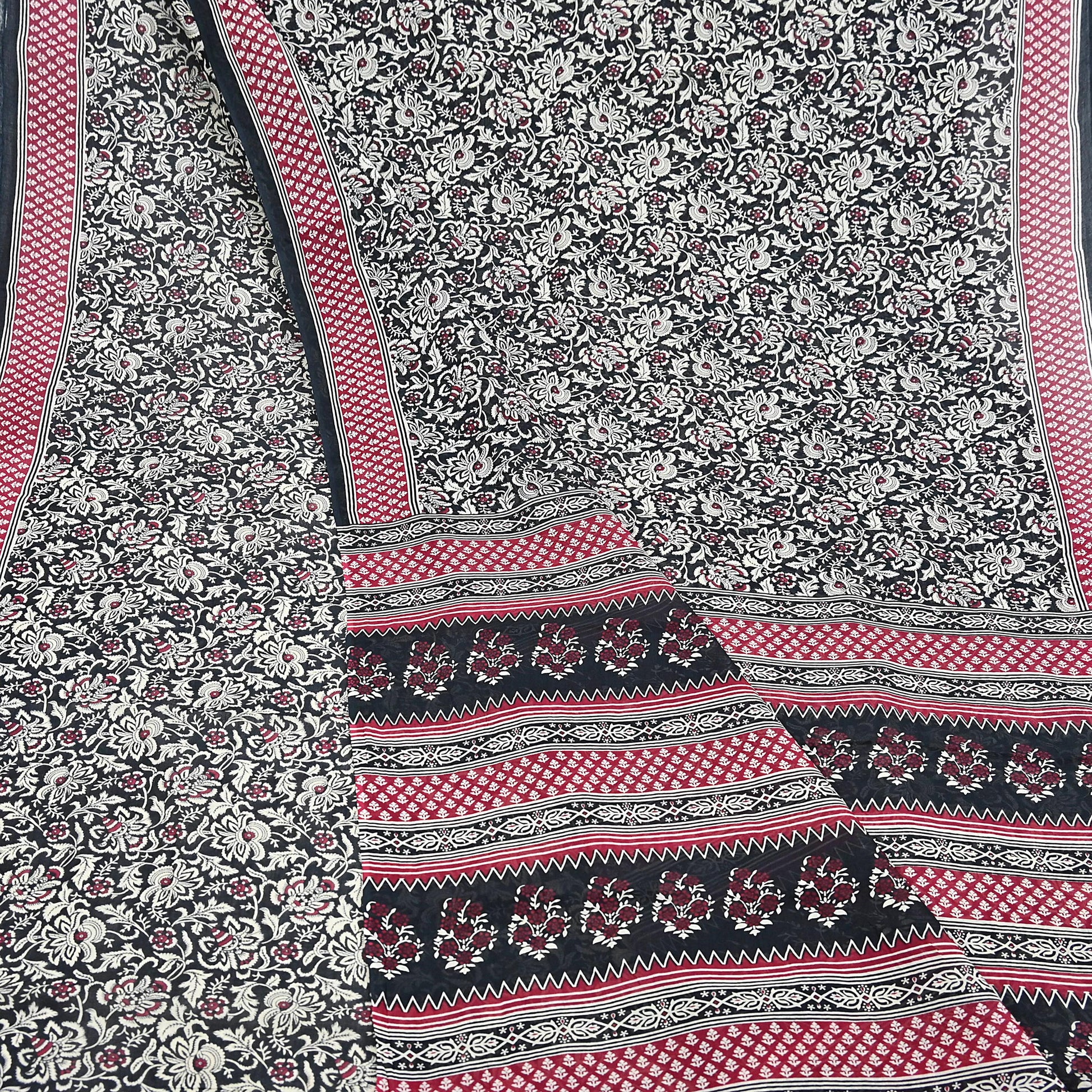Indian Vintage Sari Red & Black Printed 100% Pure Cotton Sarees Craft Fabric 5Yard Sewing Sarong Wrap Boho Floral Dress making Quilting Soft