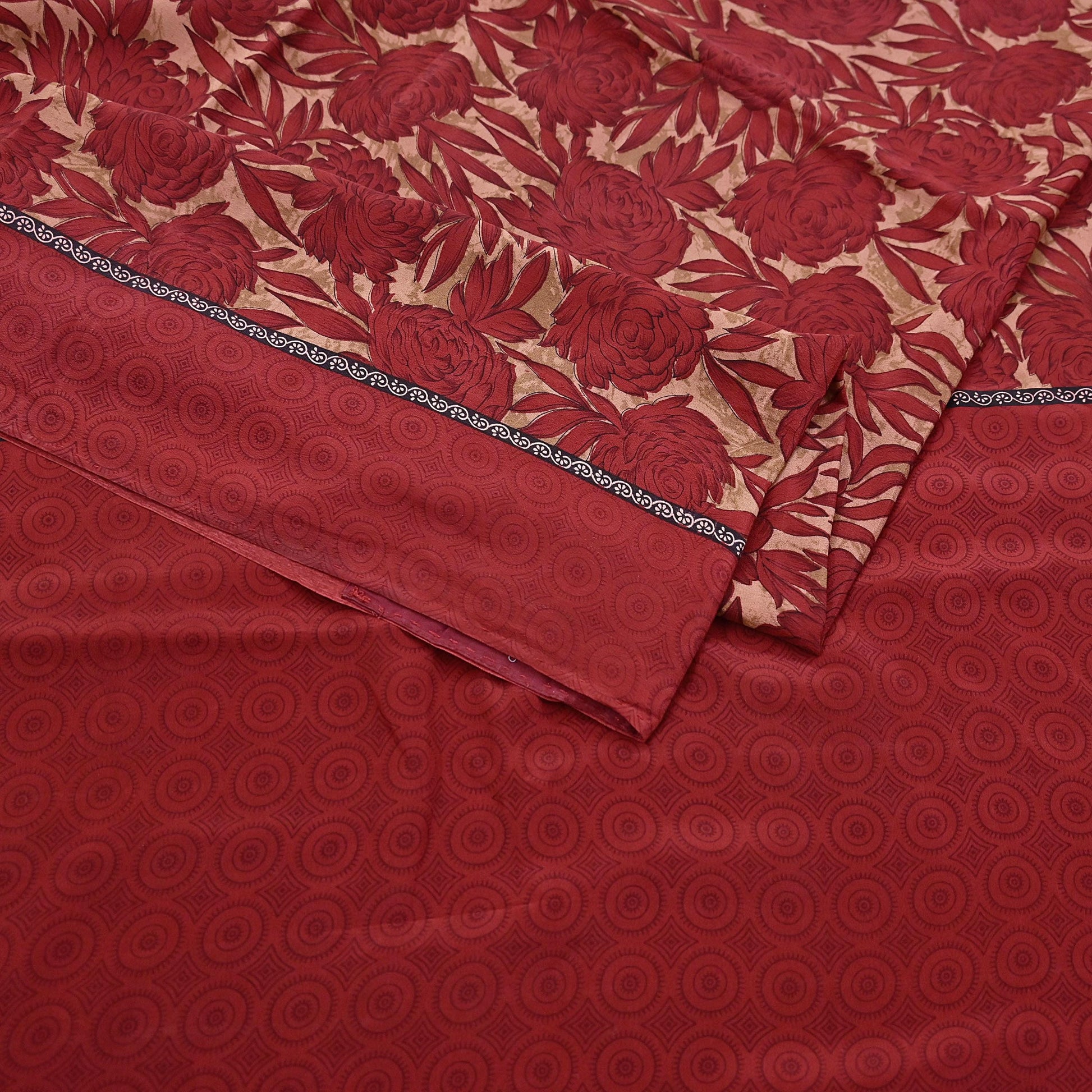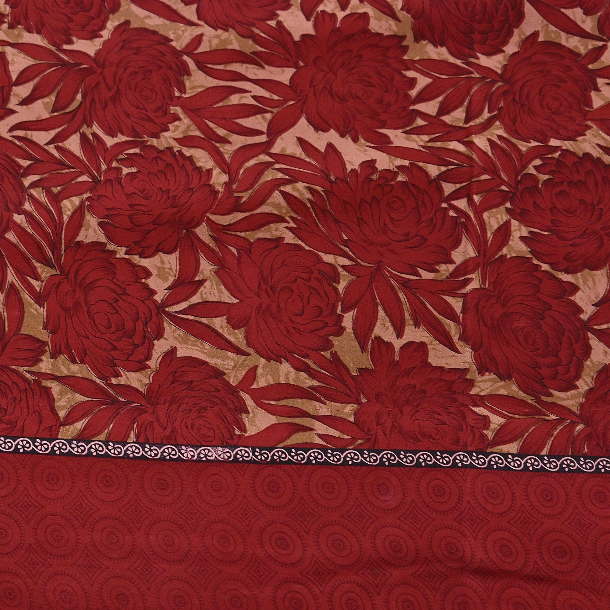 🔹This unique vintage Red & Brown Colored Printed Pure Crepe Silk Saree Fabric.