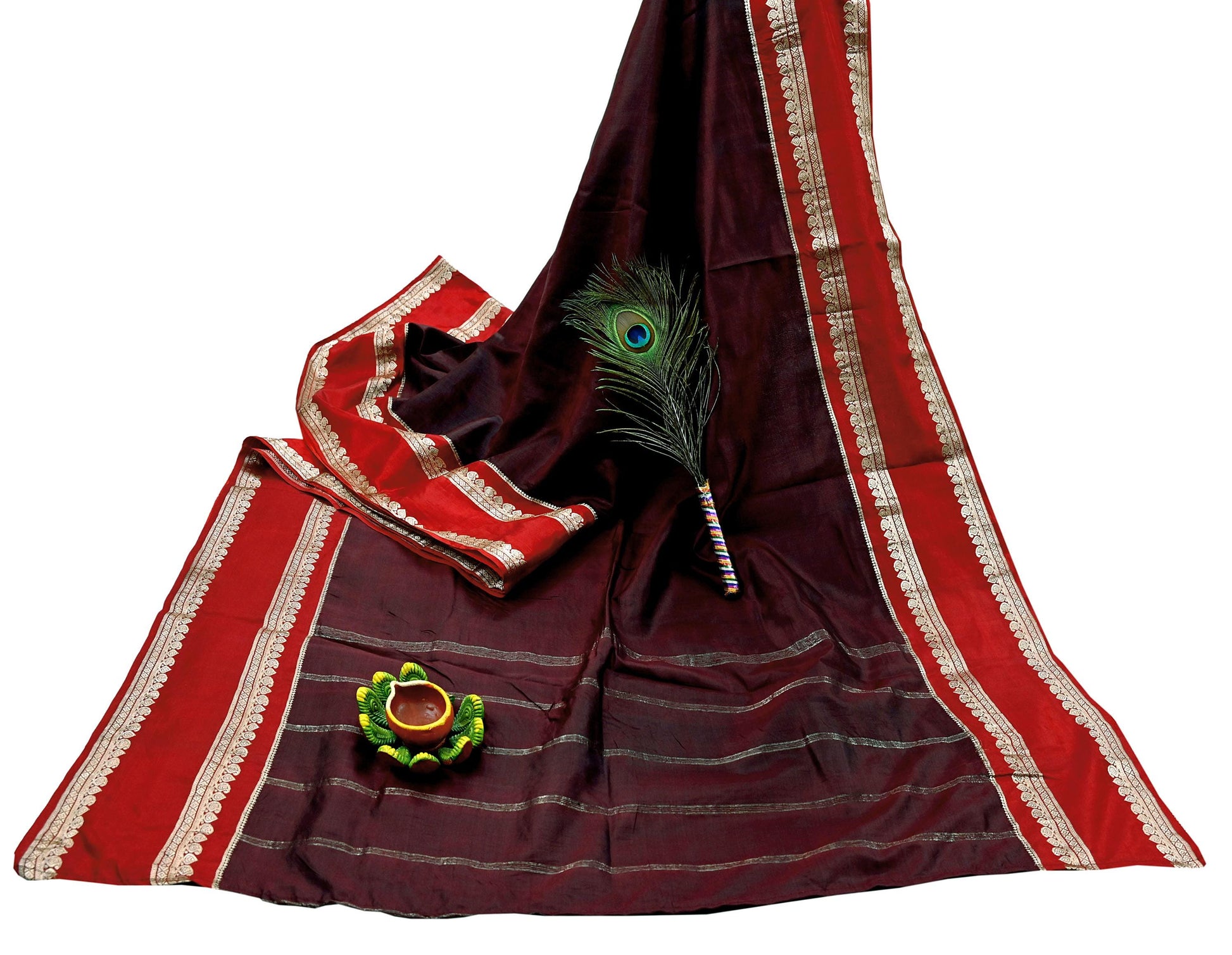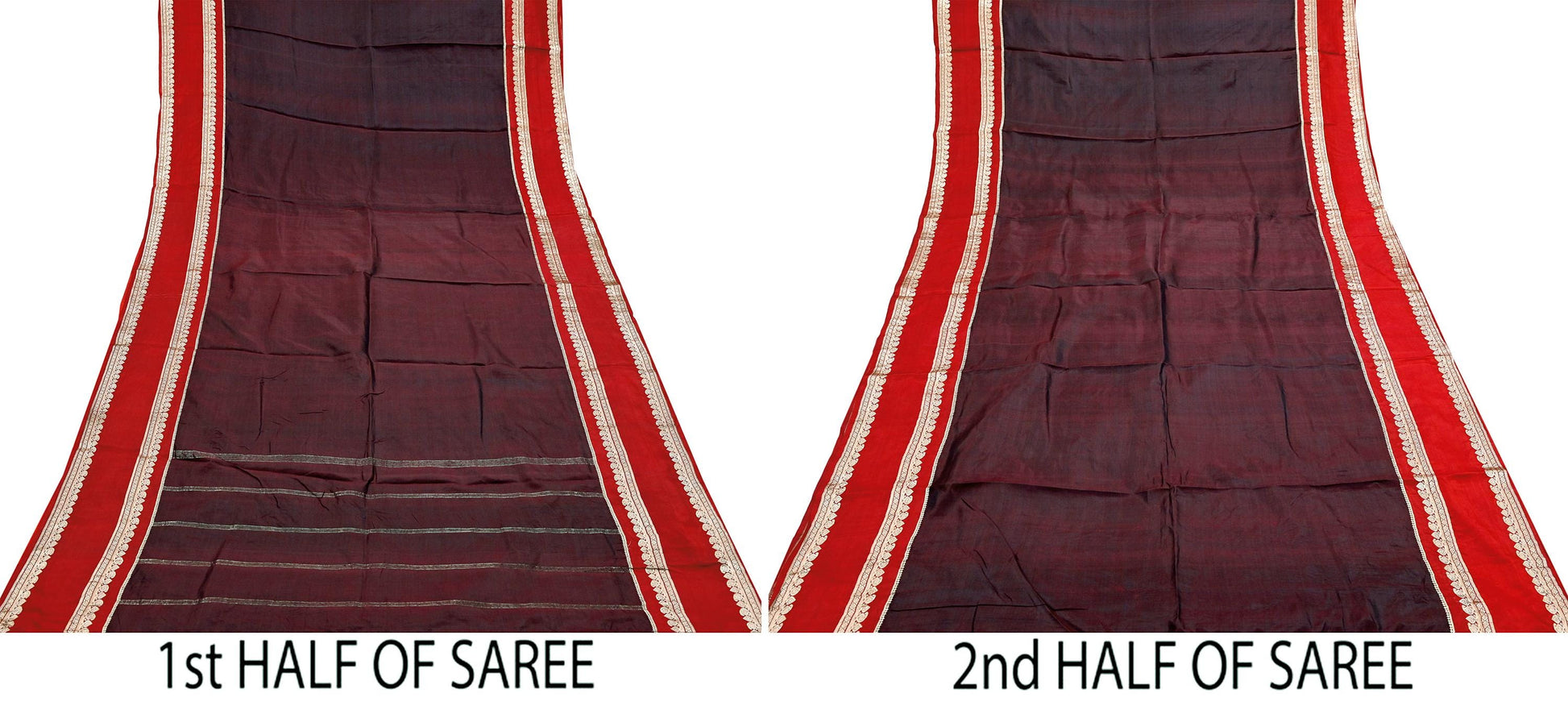 Indian Vintage Sari Red & Maroon Mysore Silk Woven Saree with Zari Border 5 Yards Soft Craft Fabric Upcycle, Quilting, Dressmaking