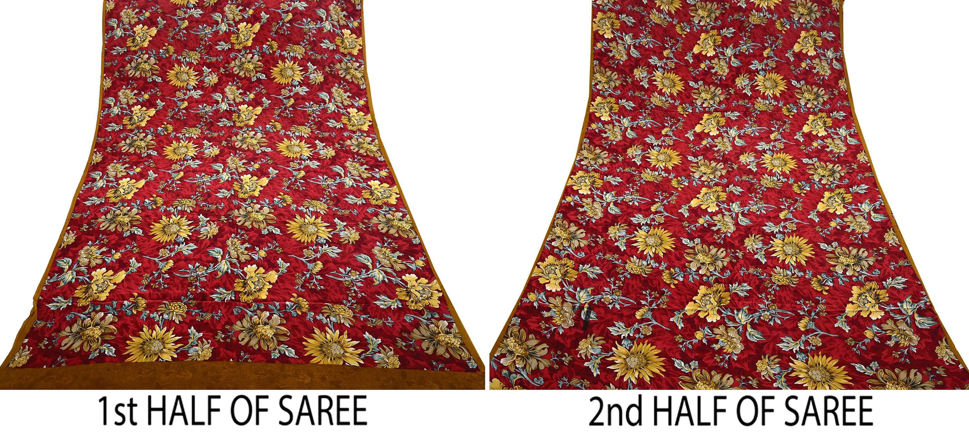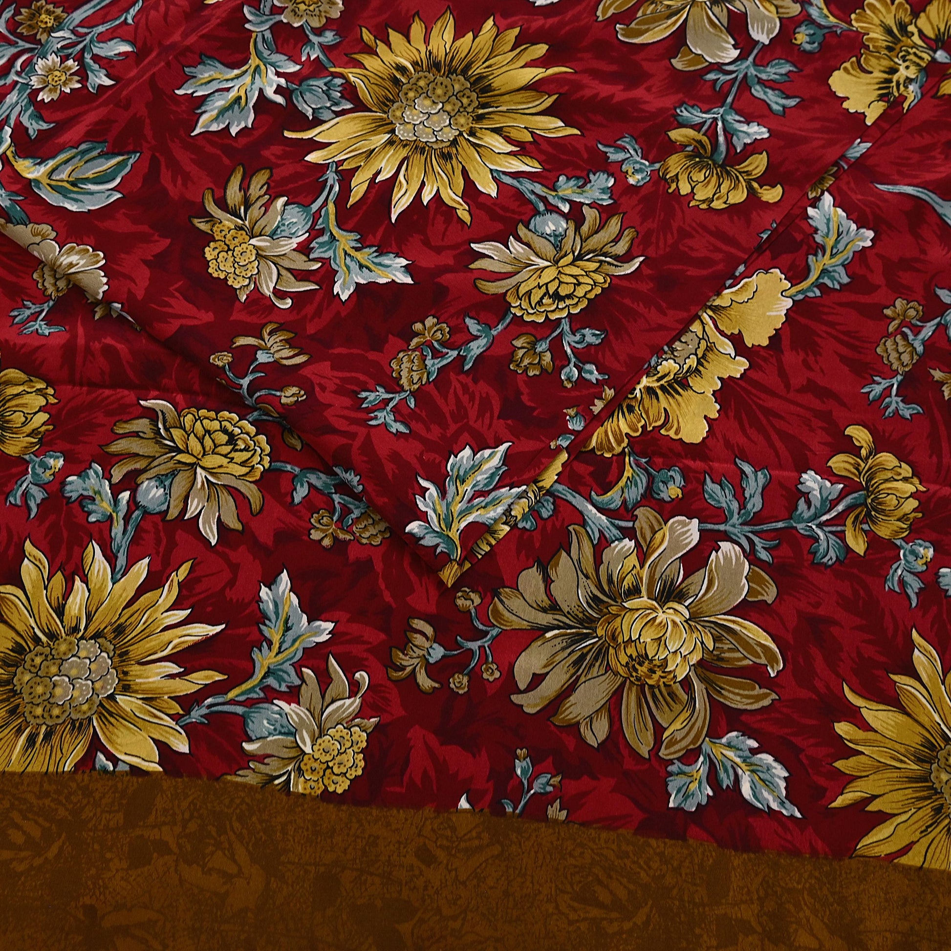 🔹This unique vintage Maroon, Mustard & Red Colored Printed Pure Crepe Silk Saree Fabric.