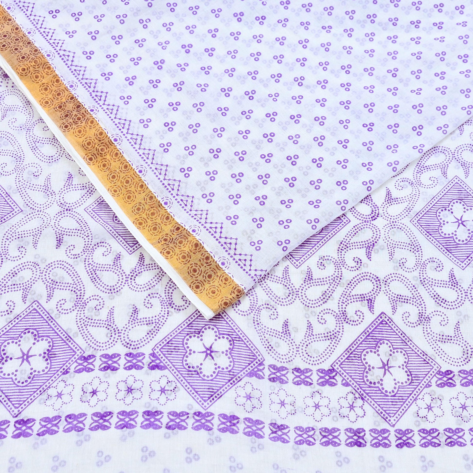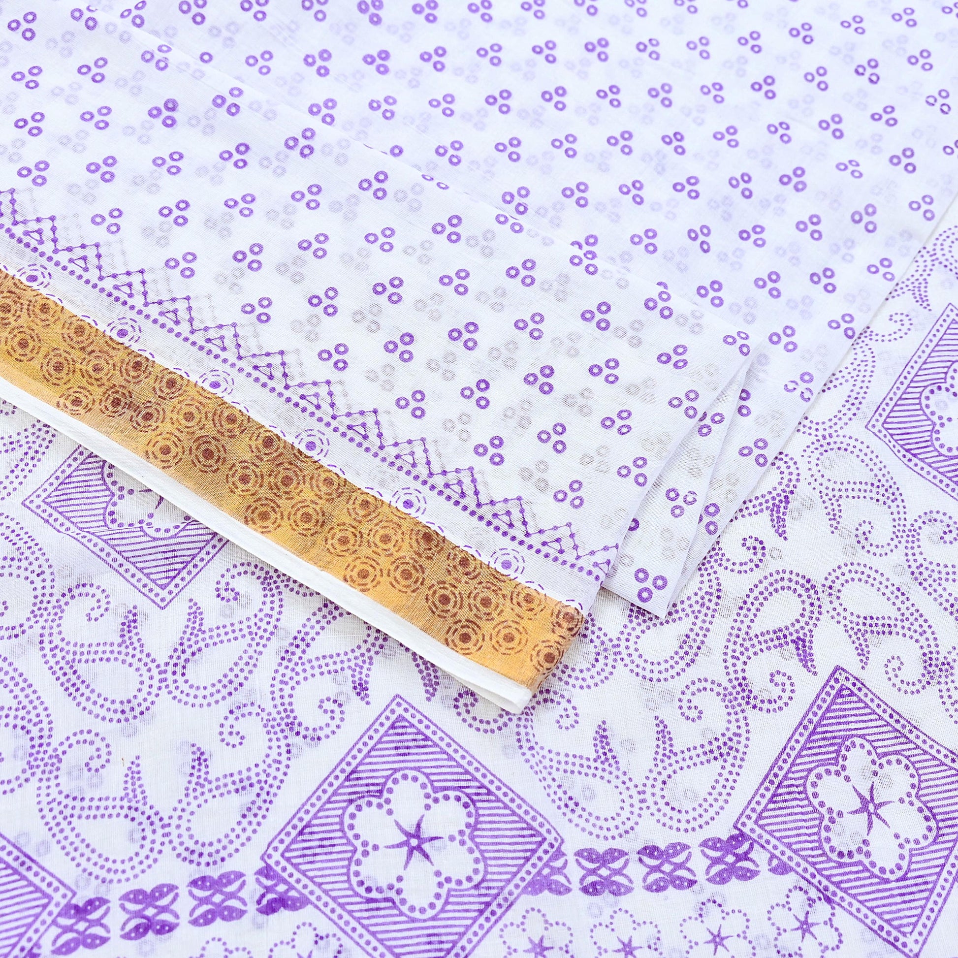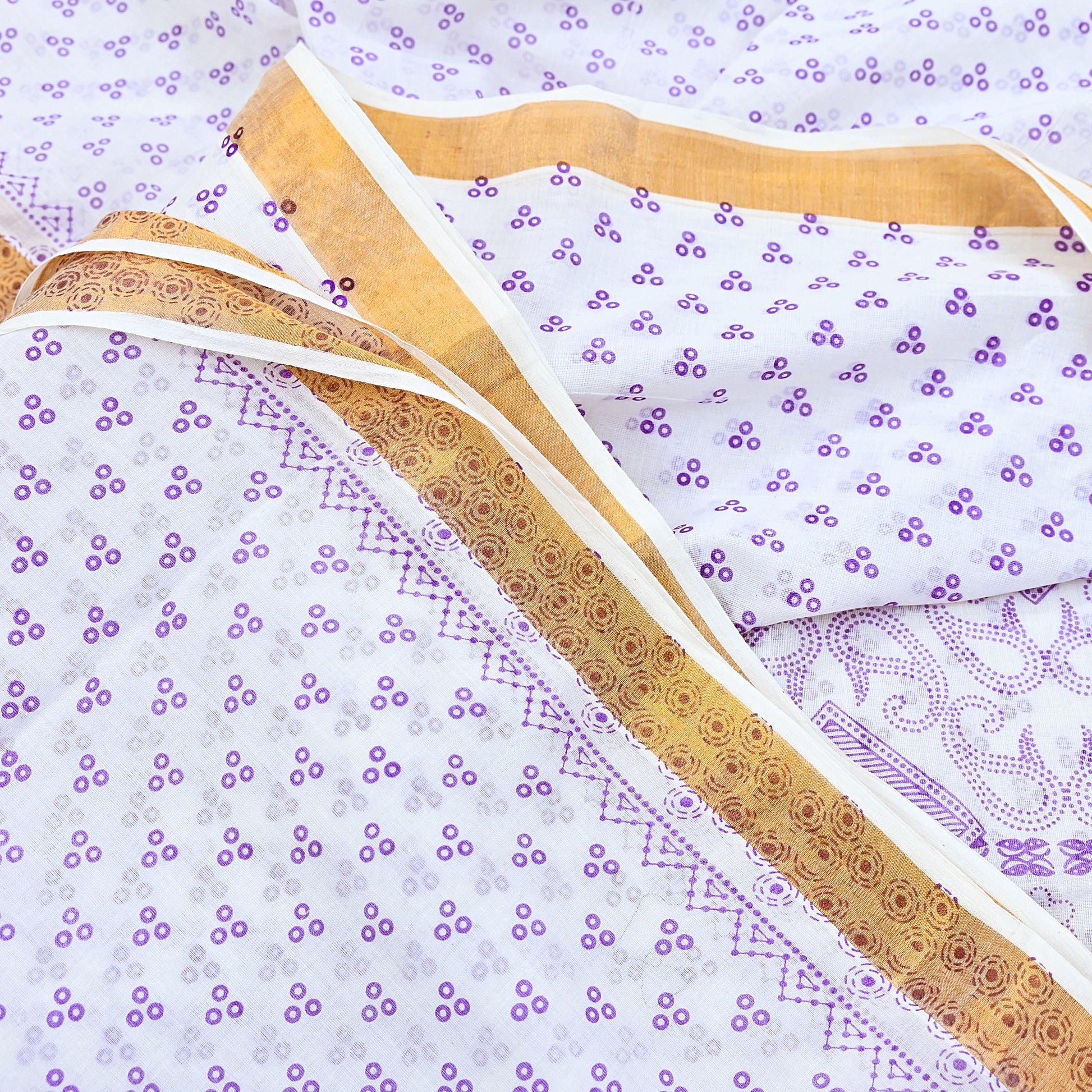 *Vintage White & Purple Colored bangali Printed Pure Cotton Sarees.