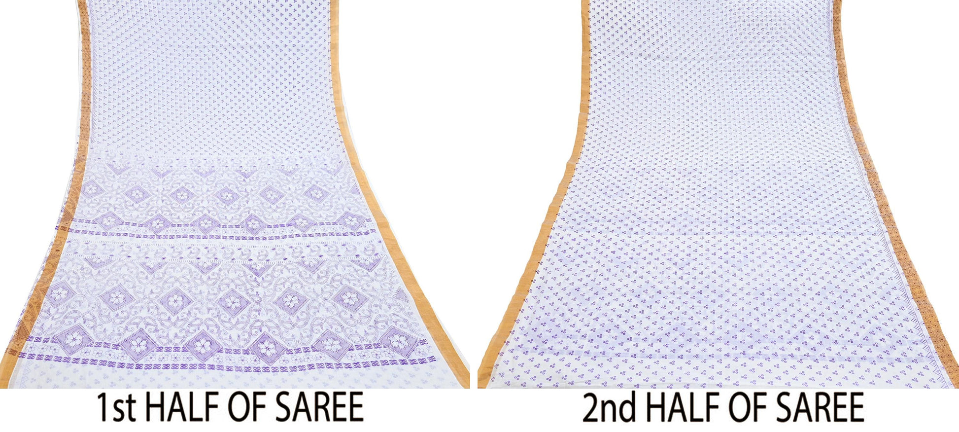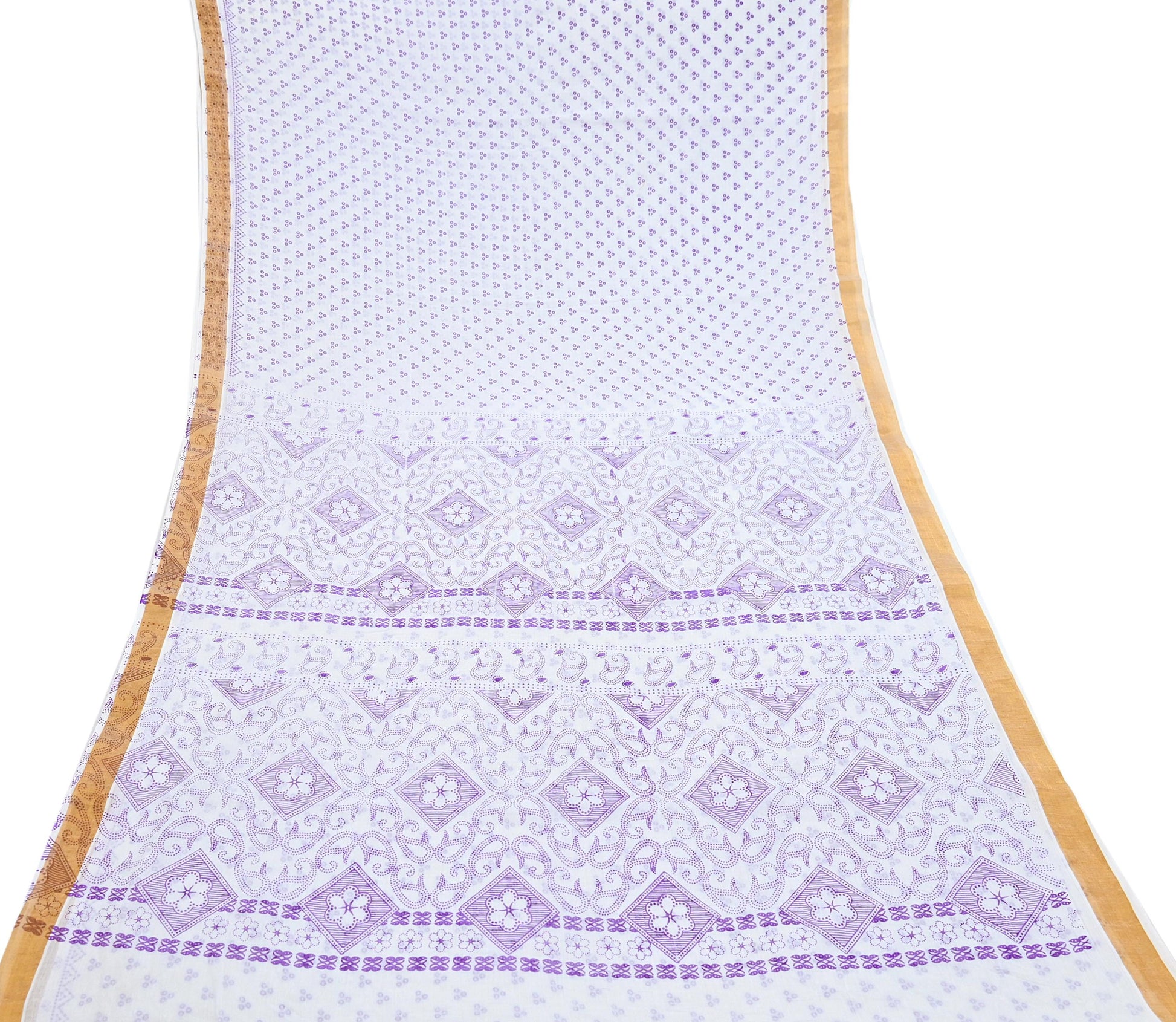 Indian Vintage Sari White bangali printed Pure Cotton Saree Craft Fabric 5Yd Sewing Sarong Wrap Boho Floral Crafting Upcycle Quilting Zari