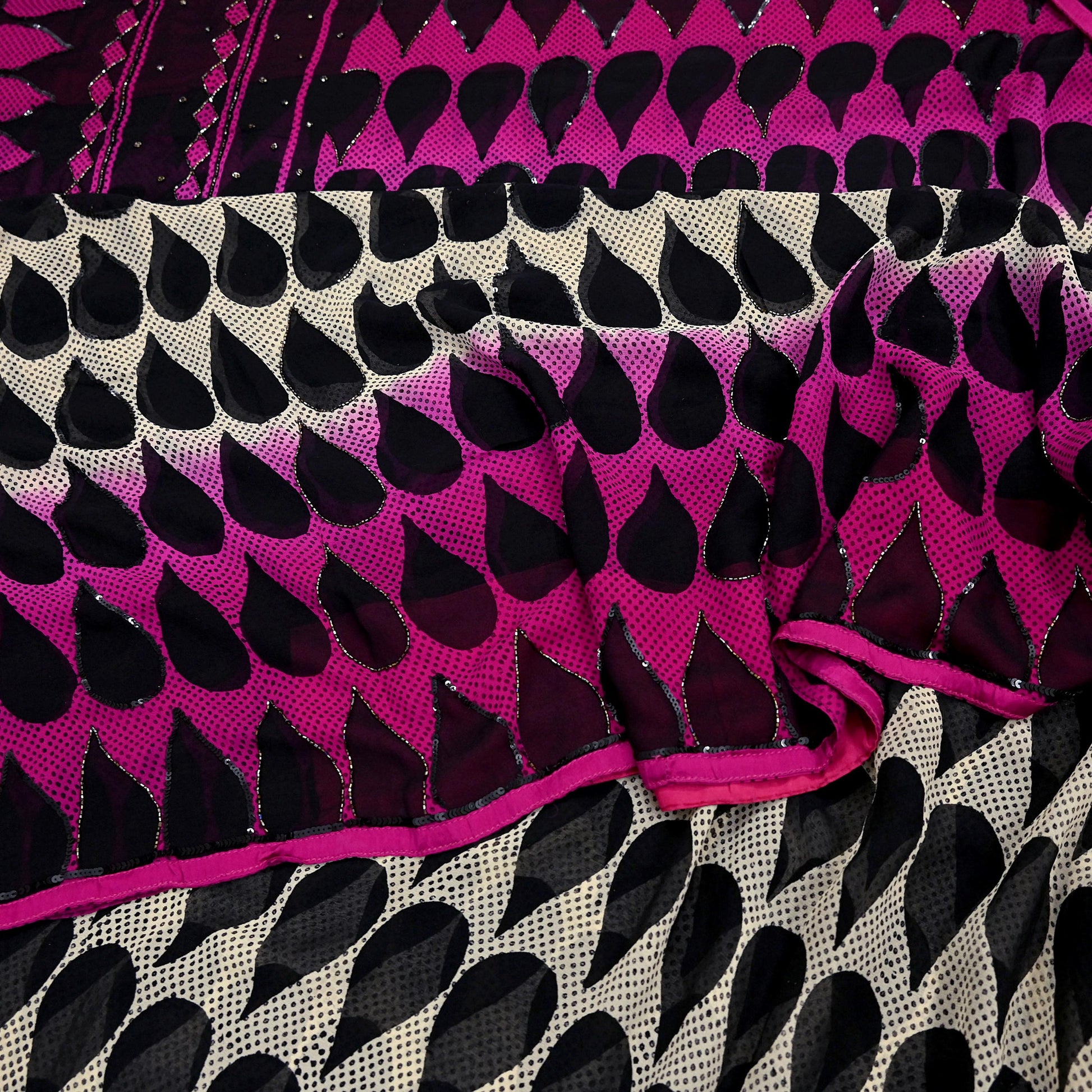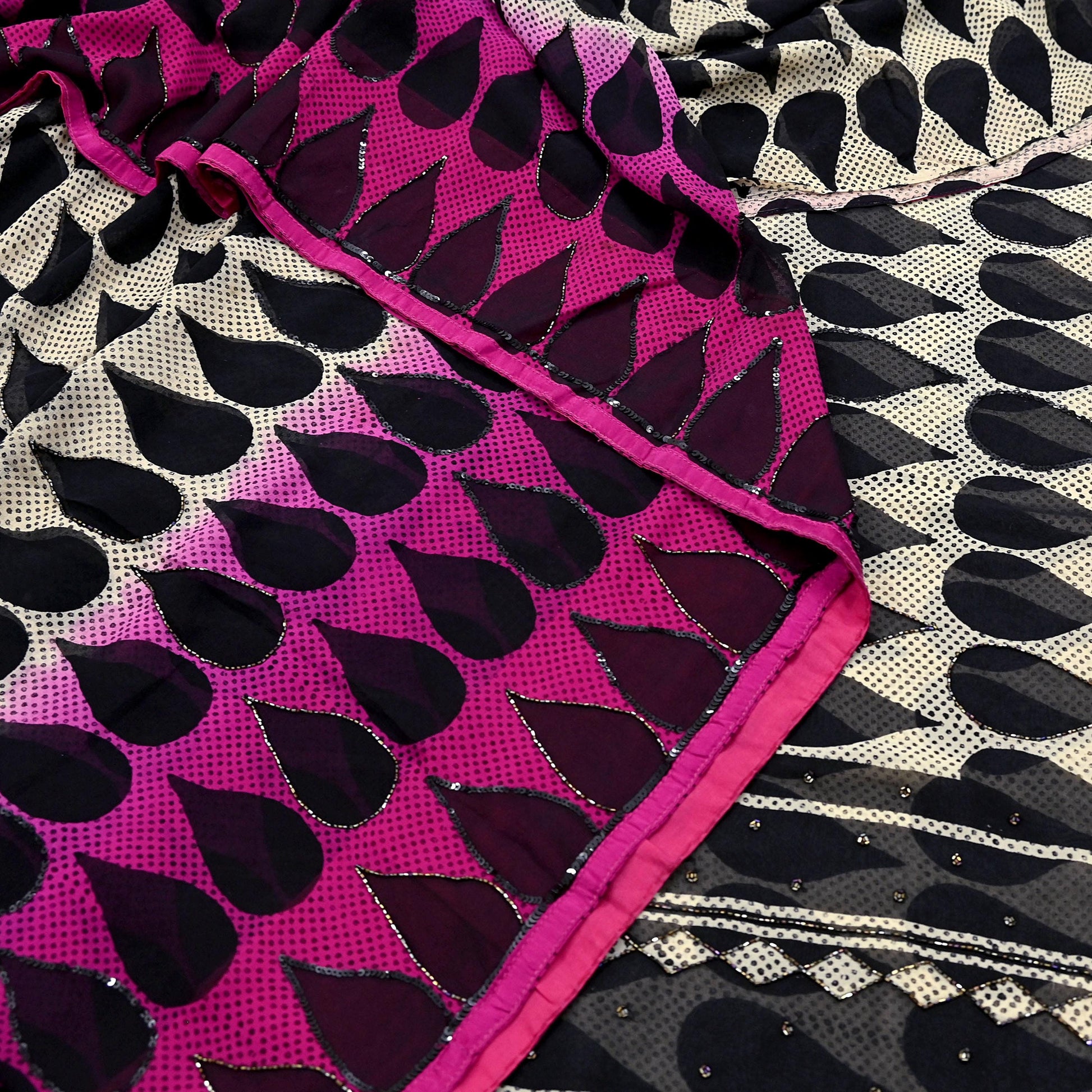 *We offers this vintage White,Pink&Blackcolor saree which is crafted with Pure Georgette Silk Fabric.