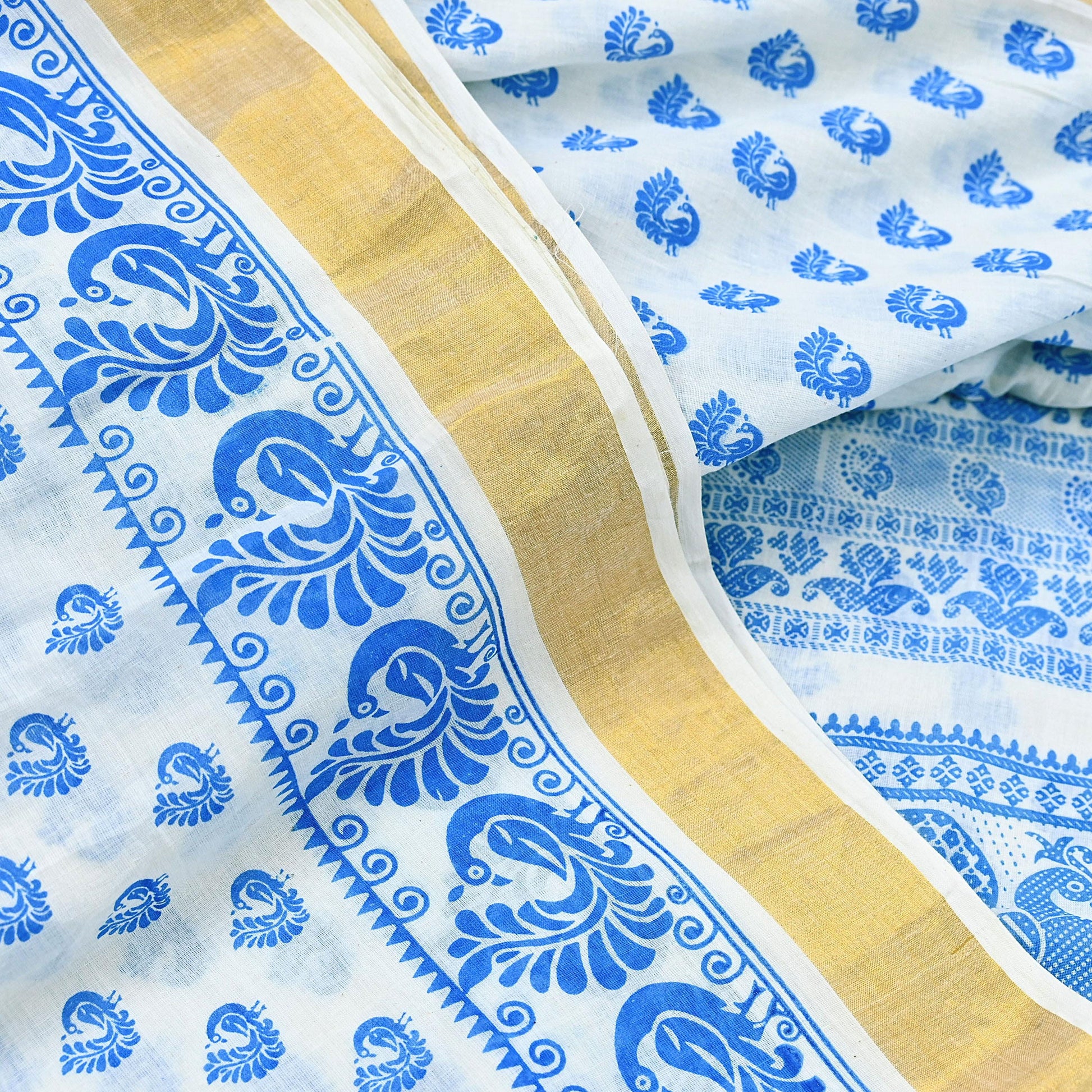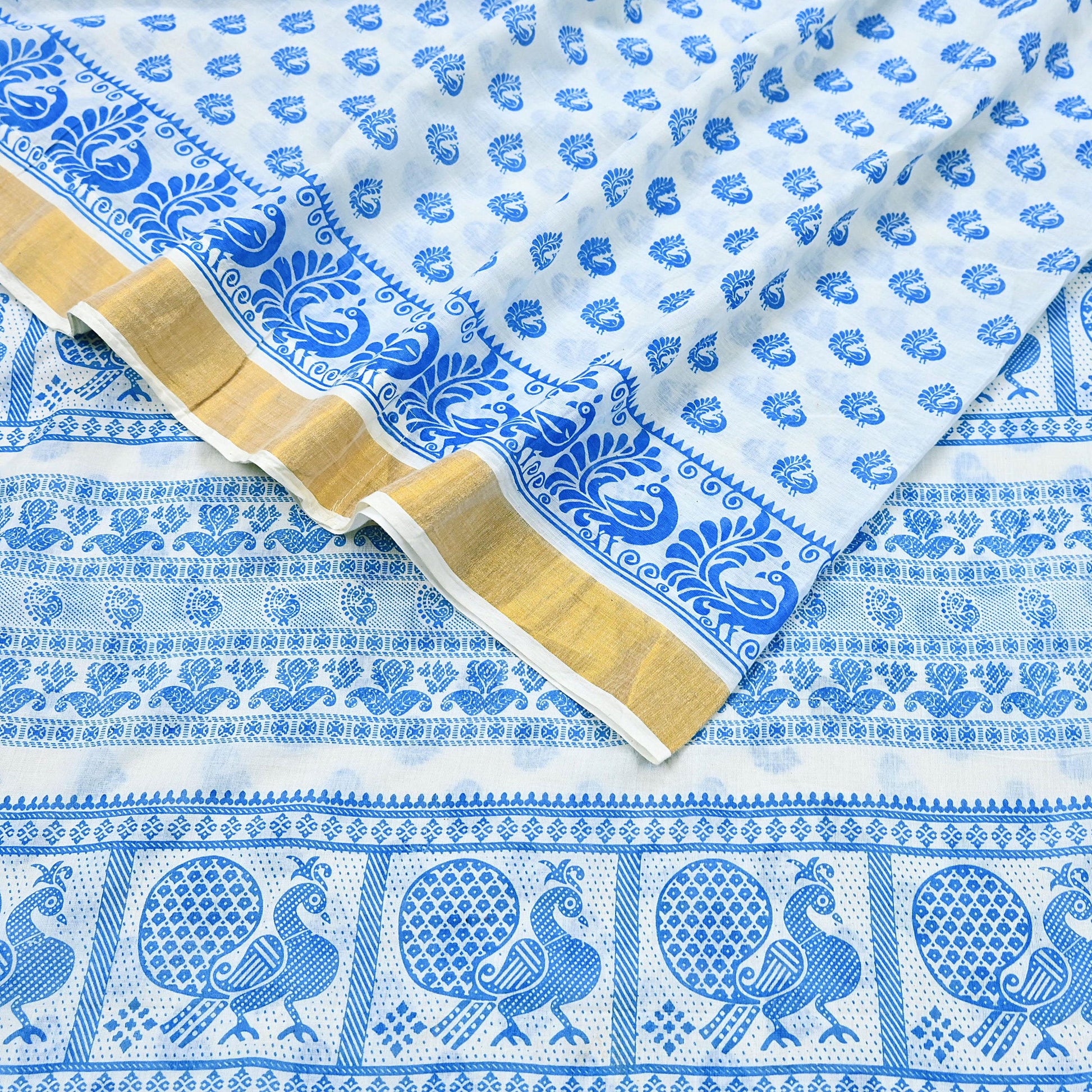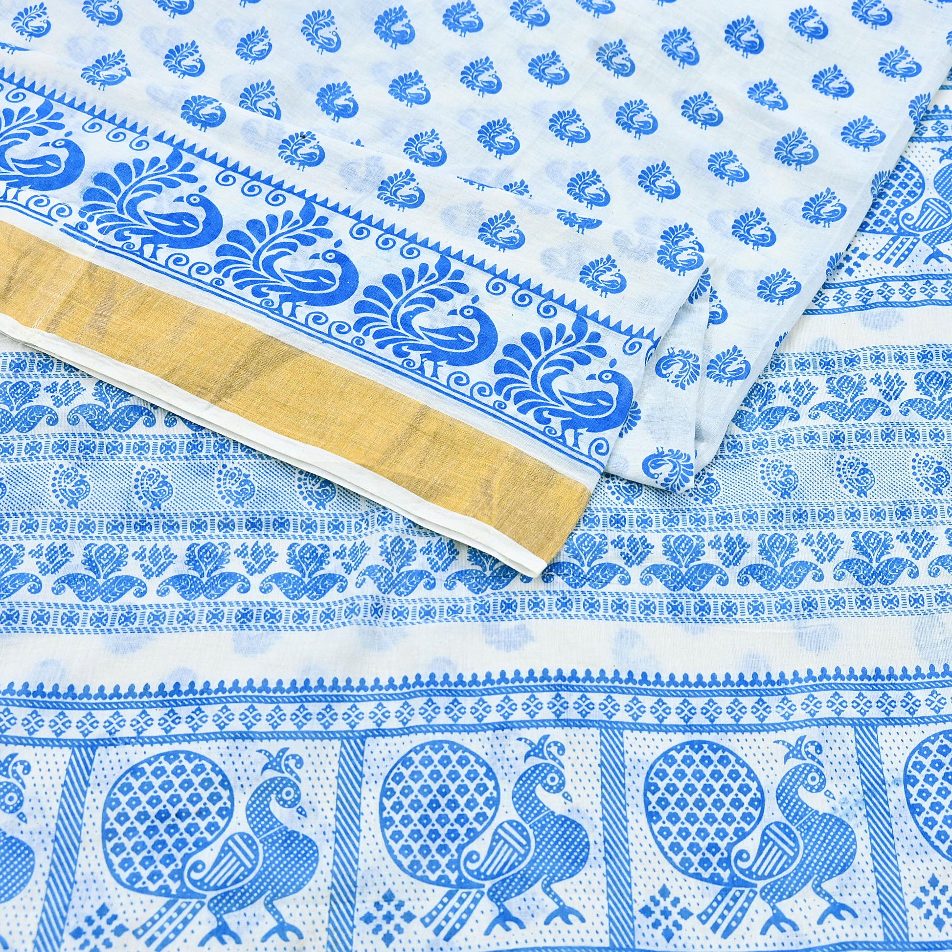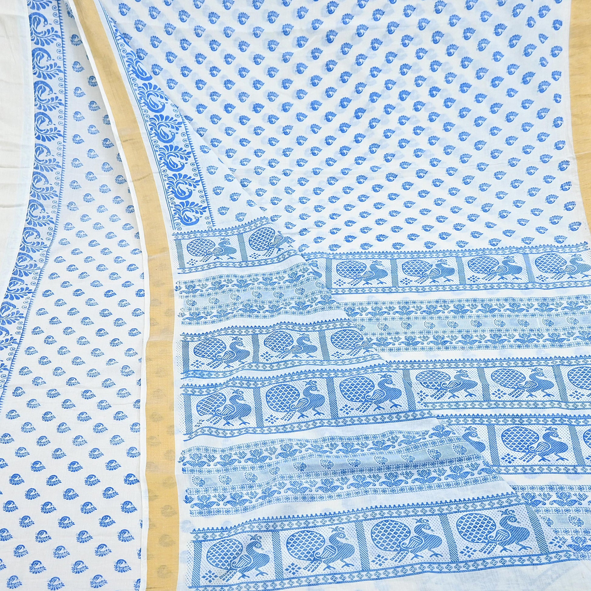 *Saree Has Beautiful Pallu & Border Has Printed Peacock Design. With Golden Woven Zari Border Work.