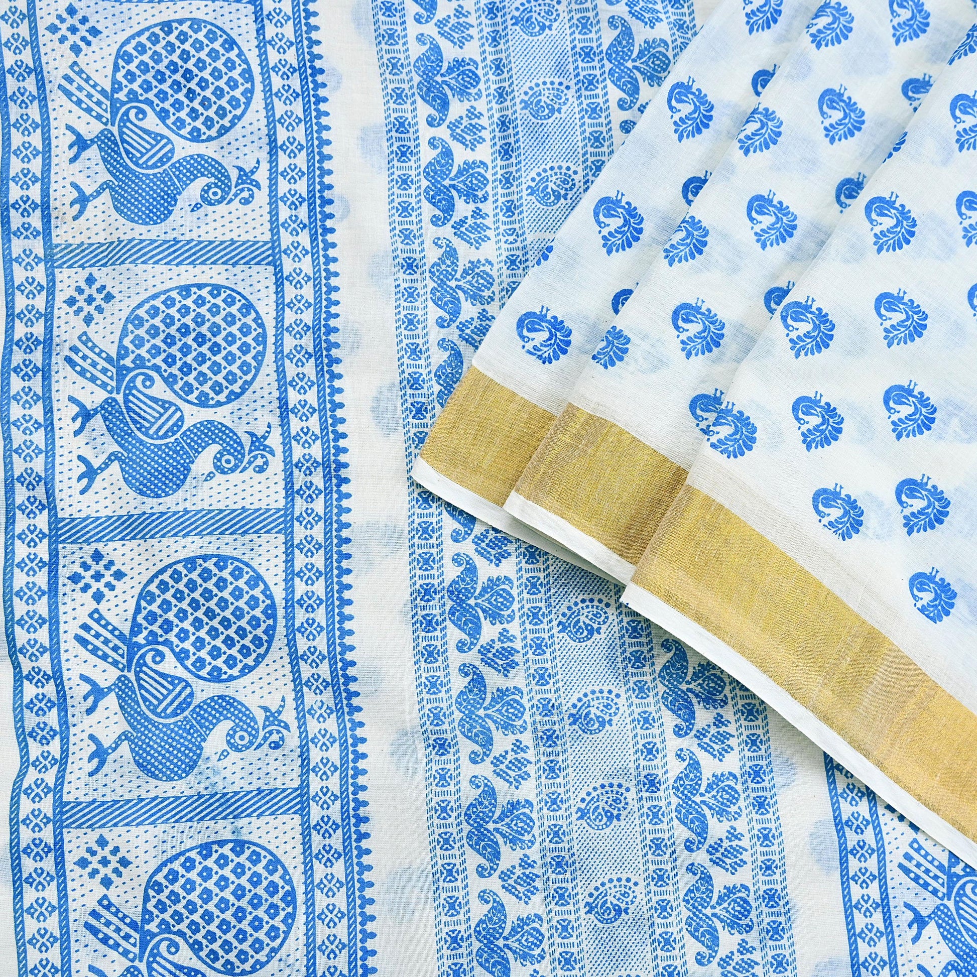 *Vintage White Colored Block Printed Pure Cotton Saree .