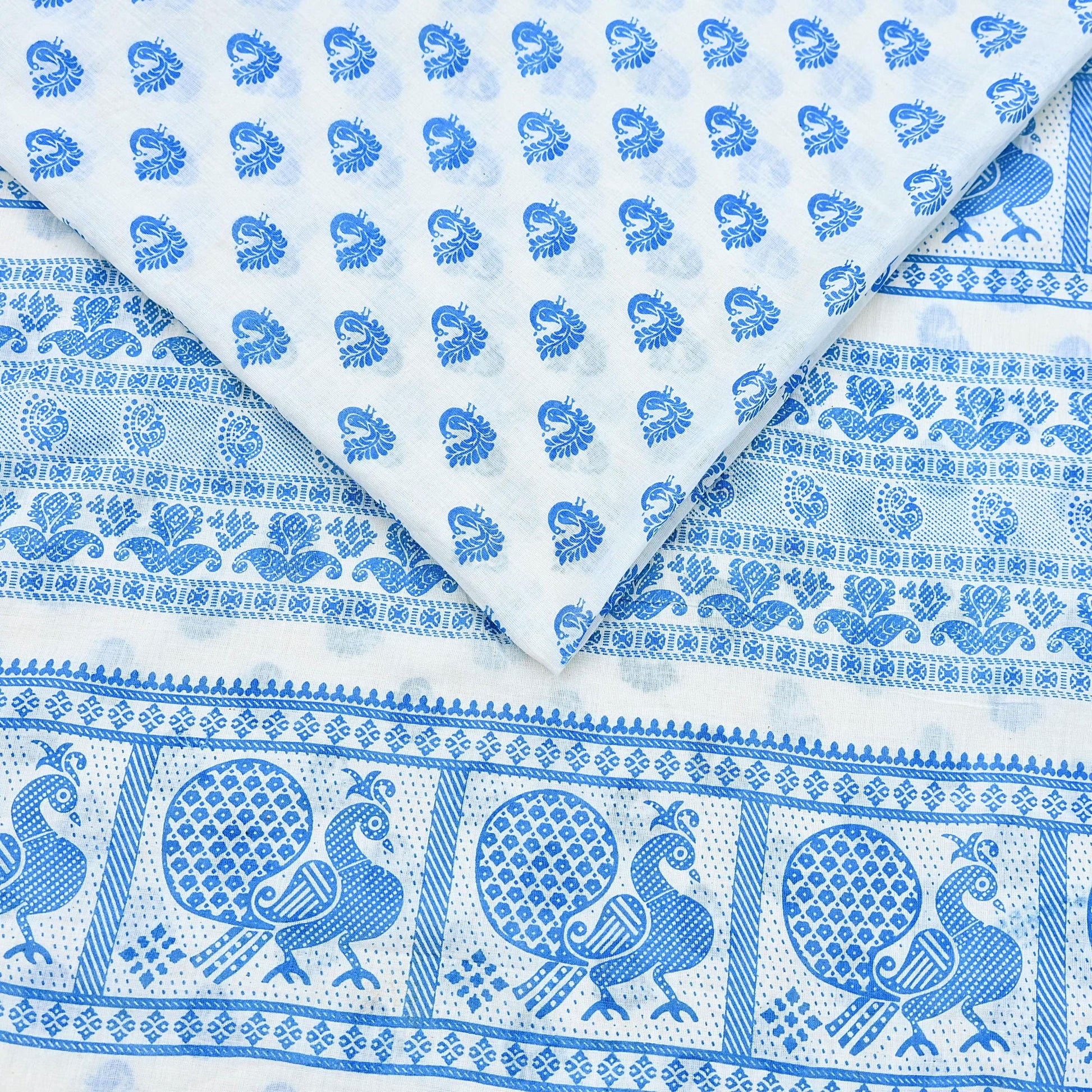 Indian Vintage Sari White Block Printed Pure Cotton Sarees Craft Fabric Soft 5Yd Sewing Sarong Wrap Boho Paisley Dress making Quilting