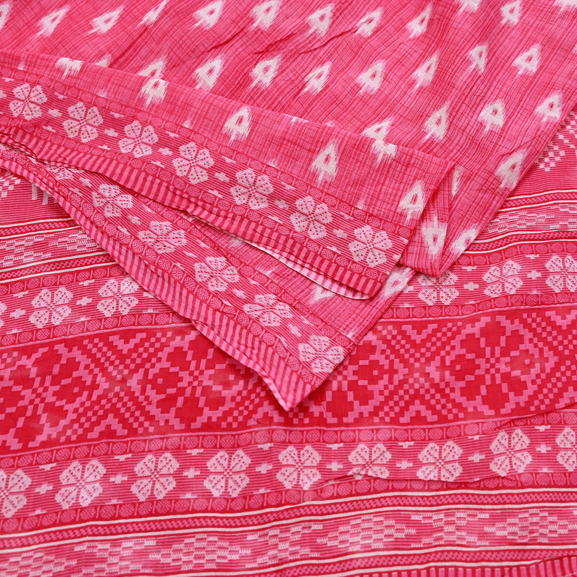Indian Vintage Sari White & Pink Printed Pure Cotton Saree Craft Fabric 5Yd Soft Sewing Sarong Wrap Boho Floral Dress making Crafting