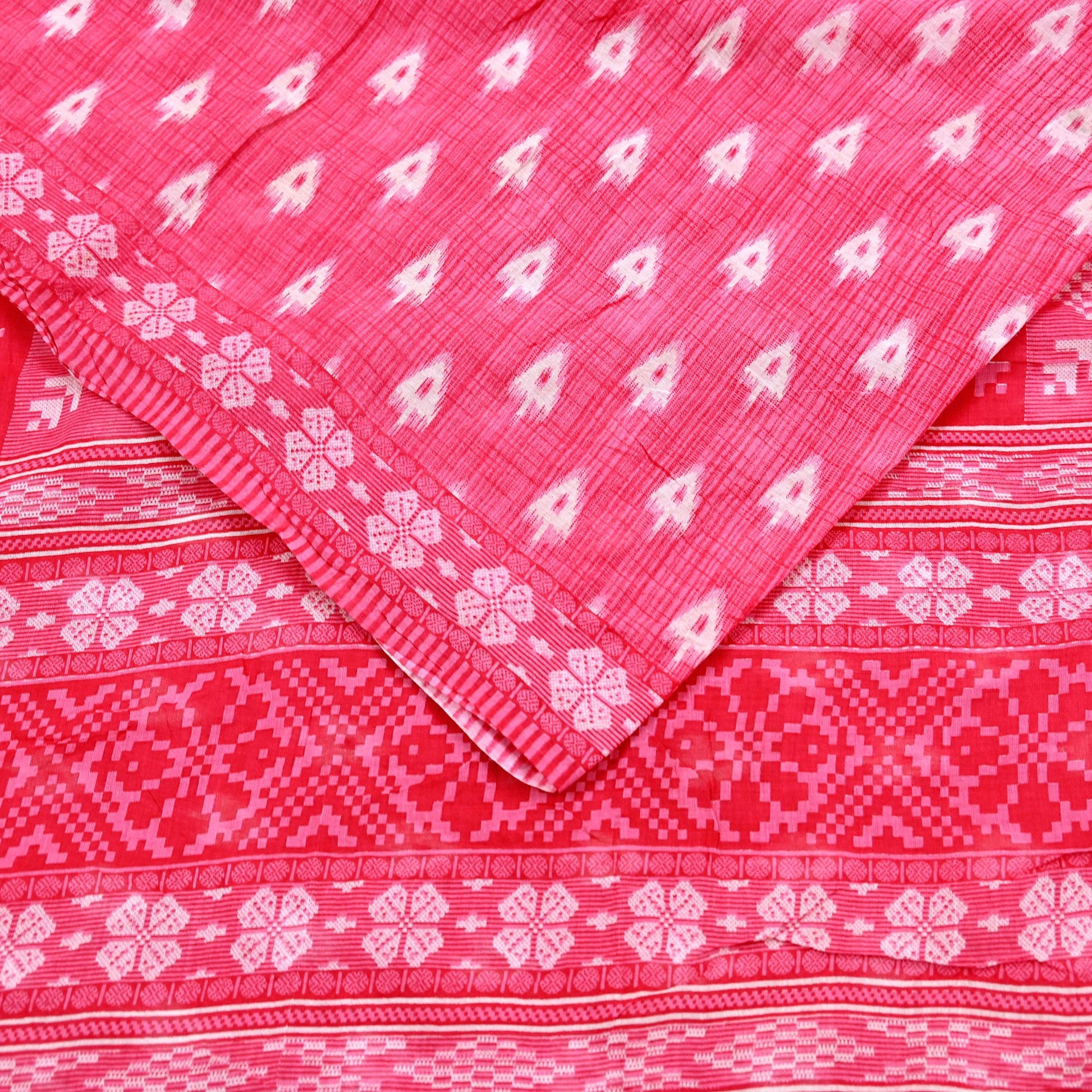 *Vintage White & Pink Colored Printed Pure Cotton Saree.