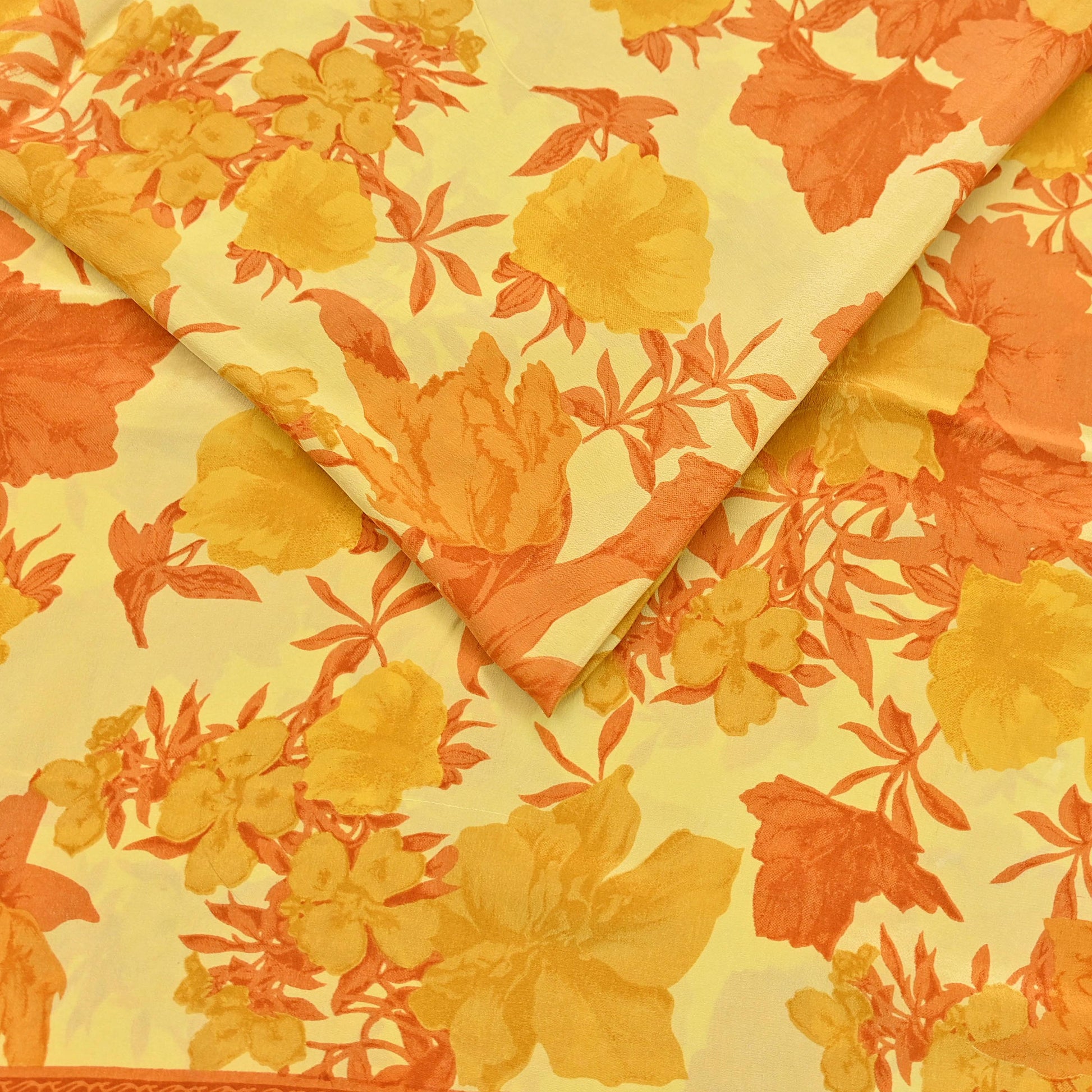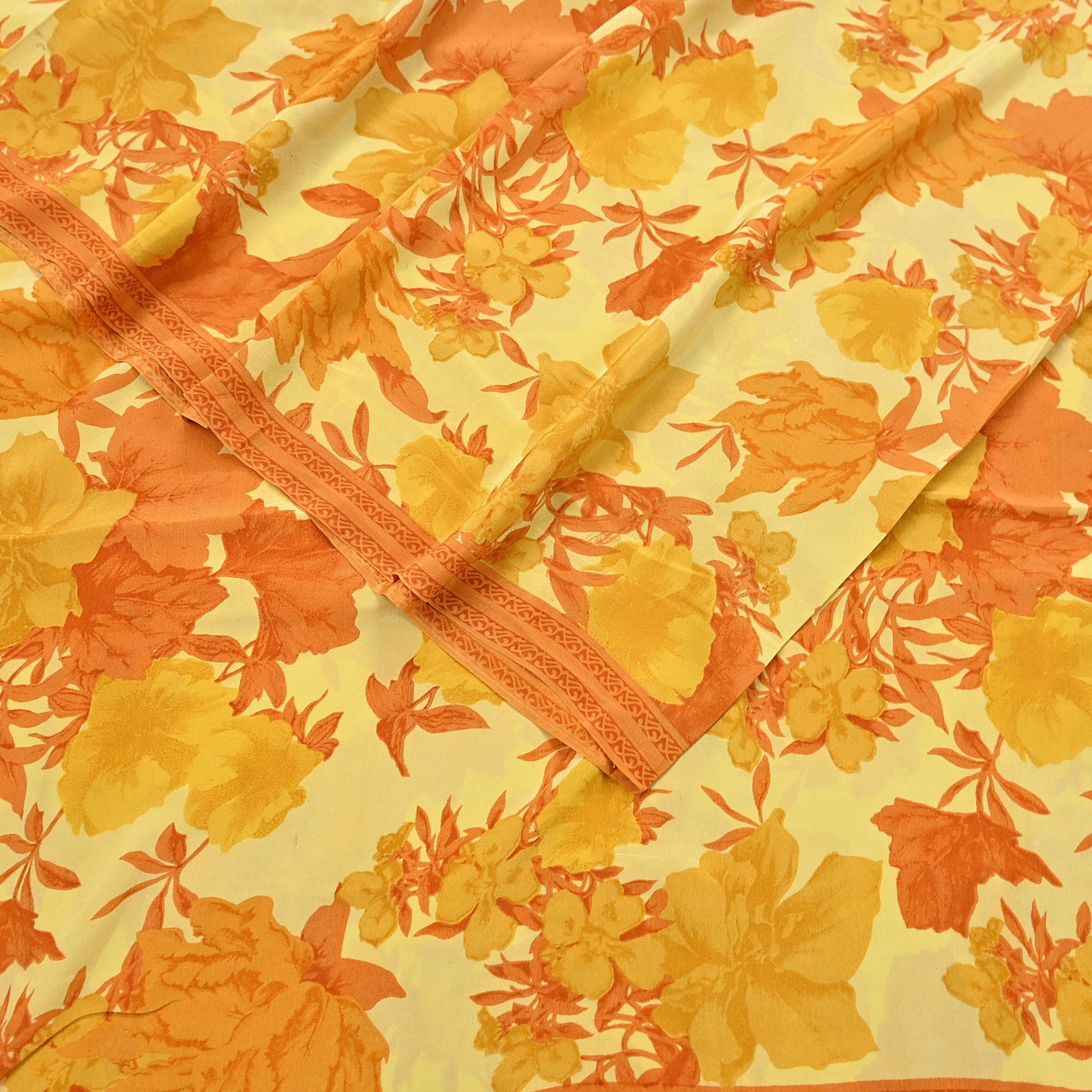 🔹This unique vintage Yellow Colored Printed Pure Crepe Silk Saree Fabric.